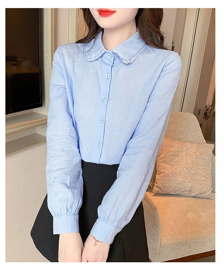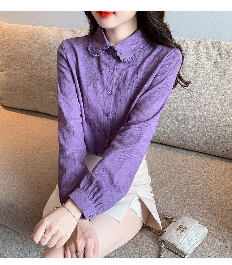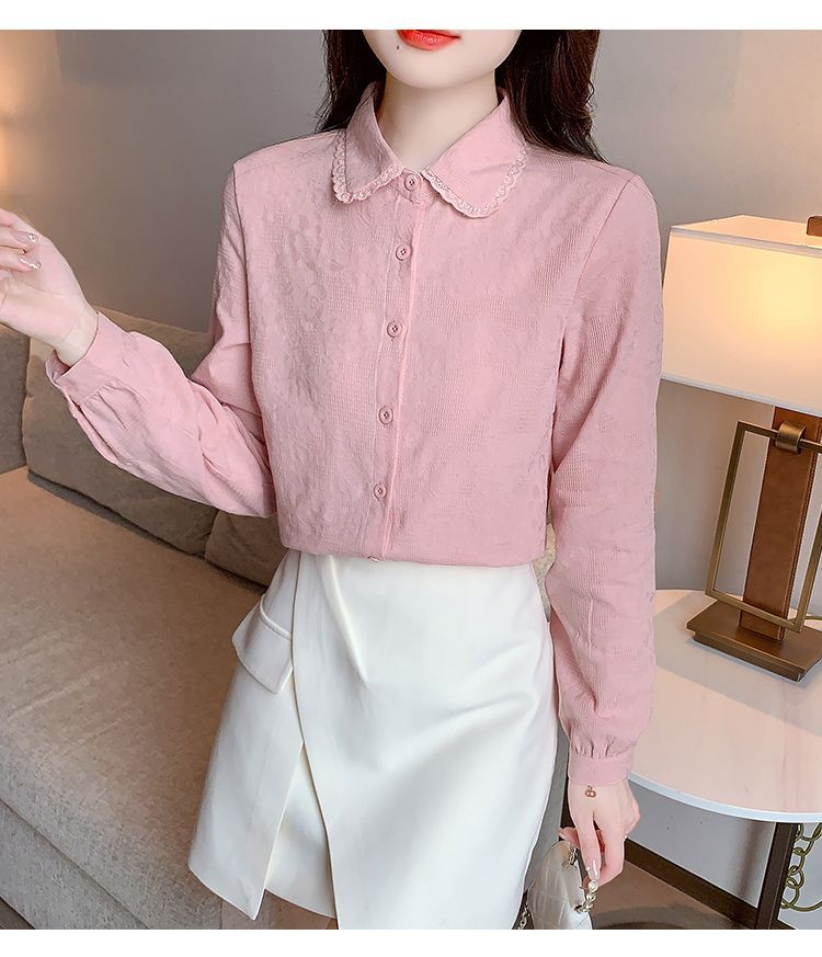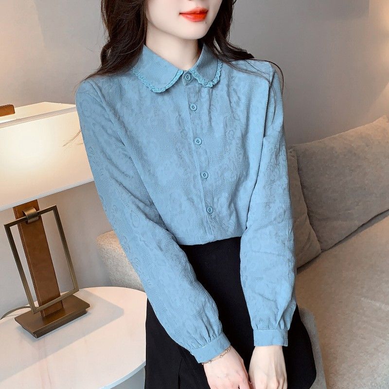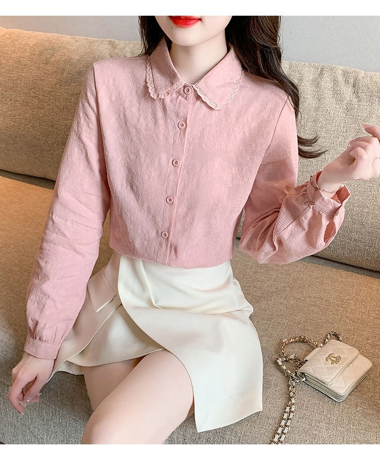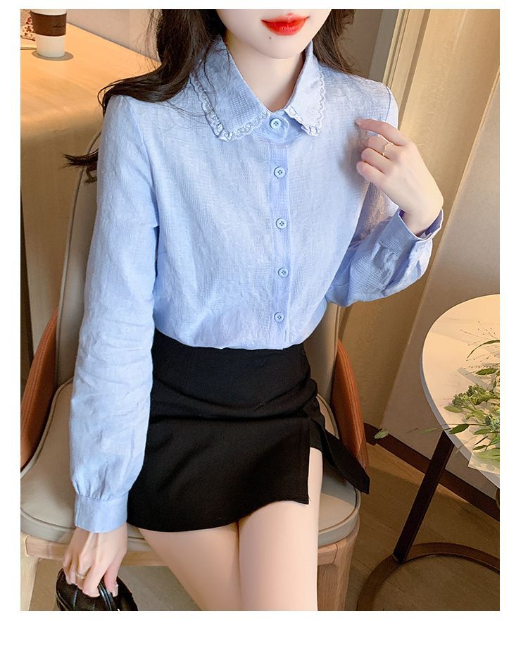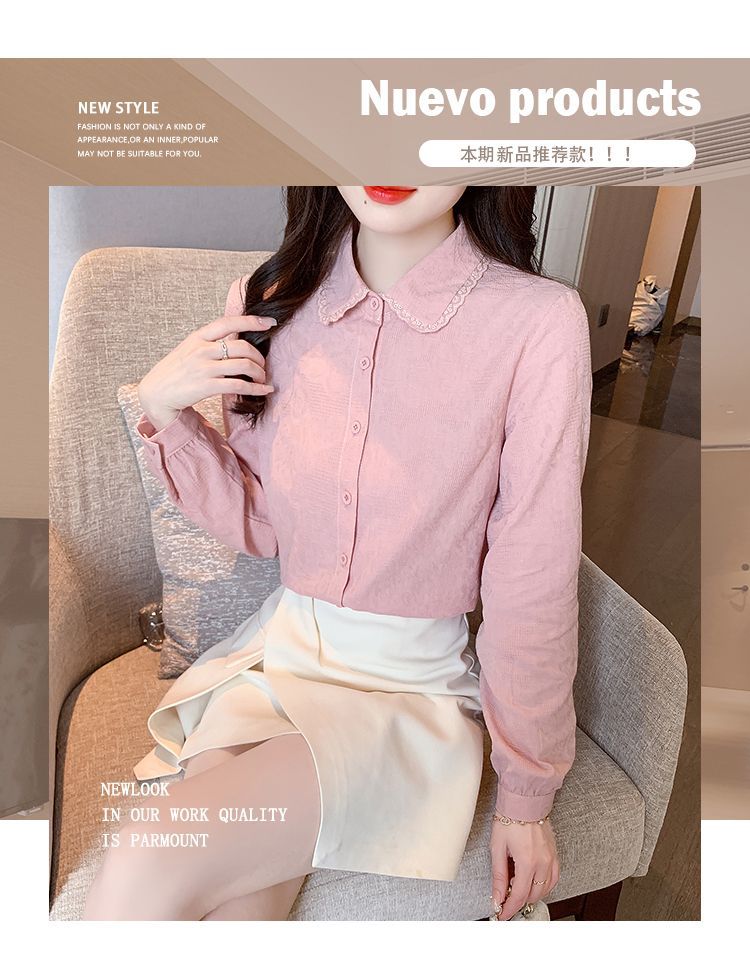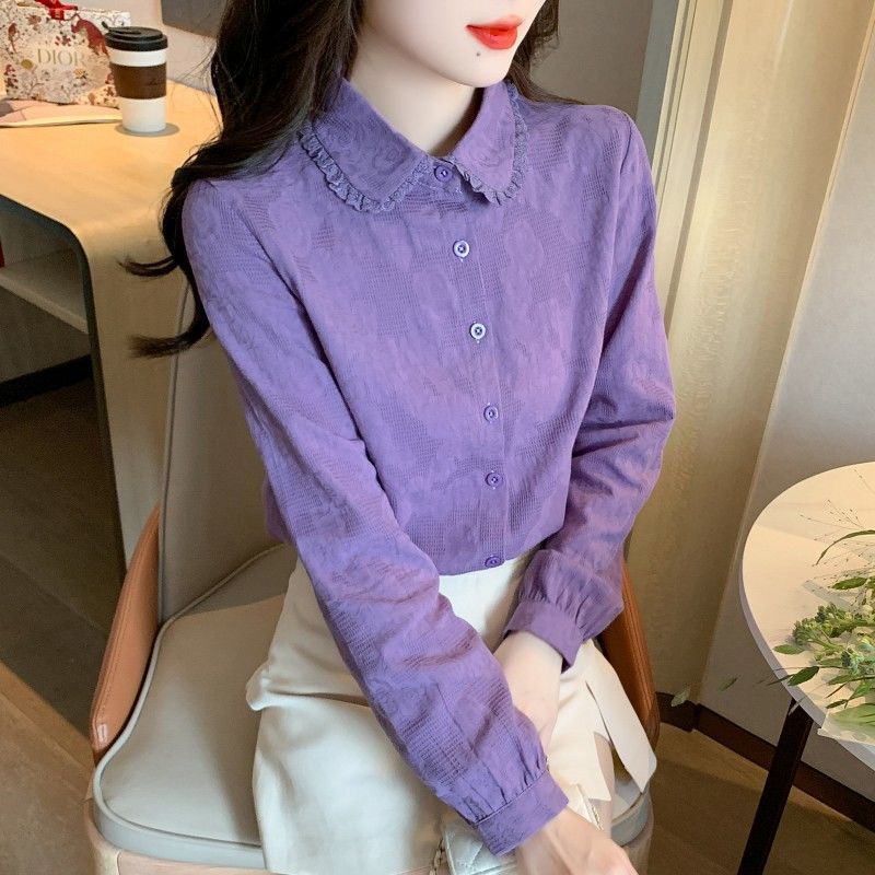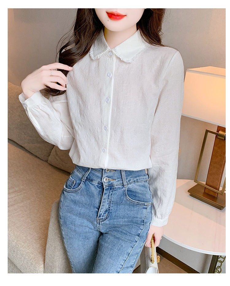 여성용 코튼 셔츠 2024 봄 새로운 다재다능한 패션 시대 감소 옷깃 긴 소매 셔츠 우아한 탑 웨스턴 스타일