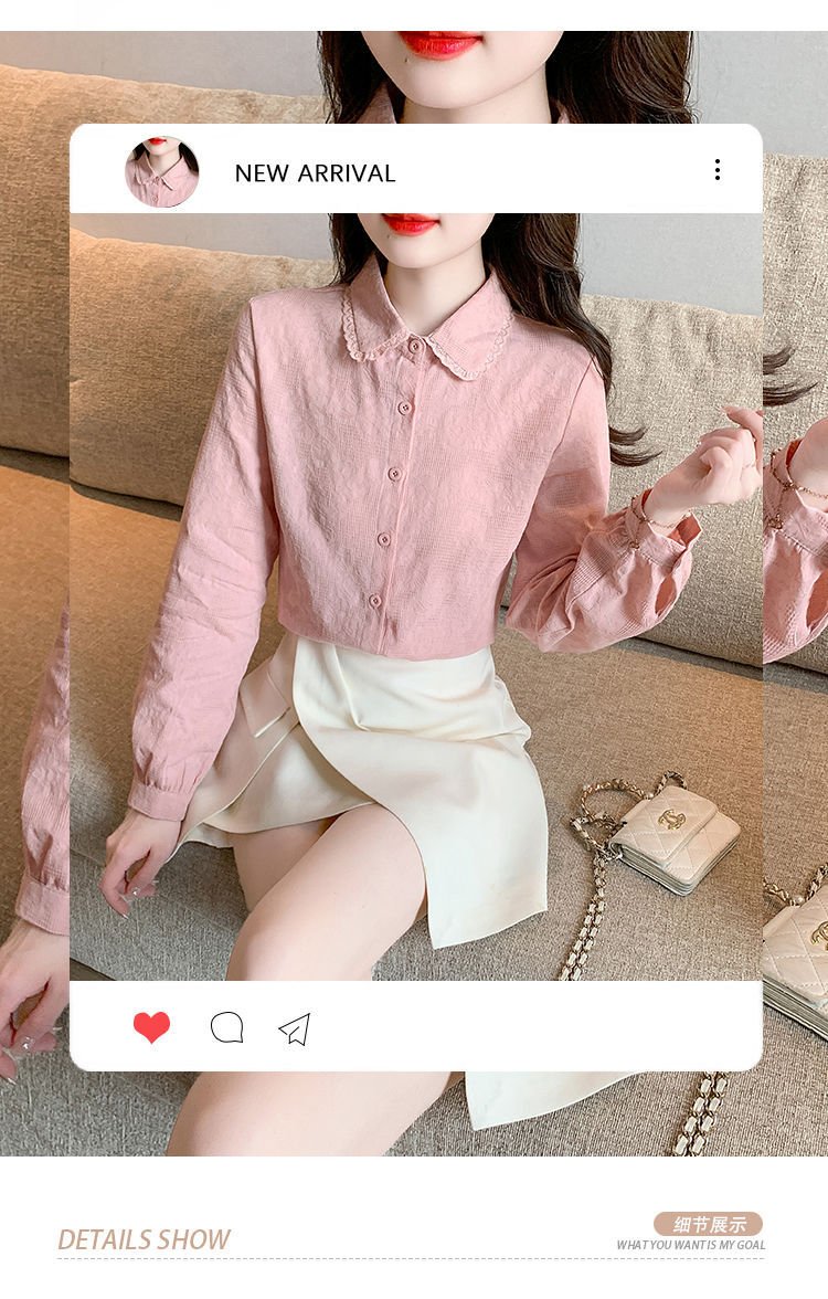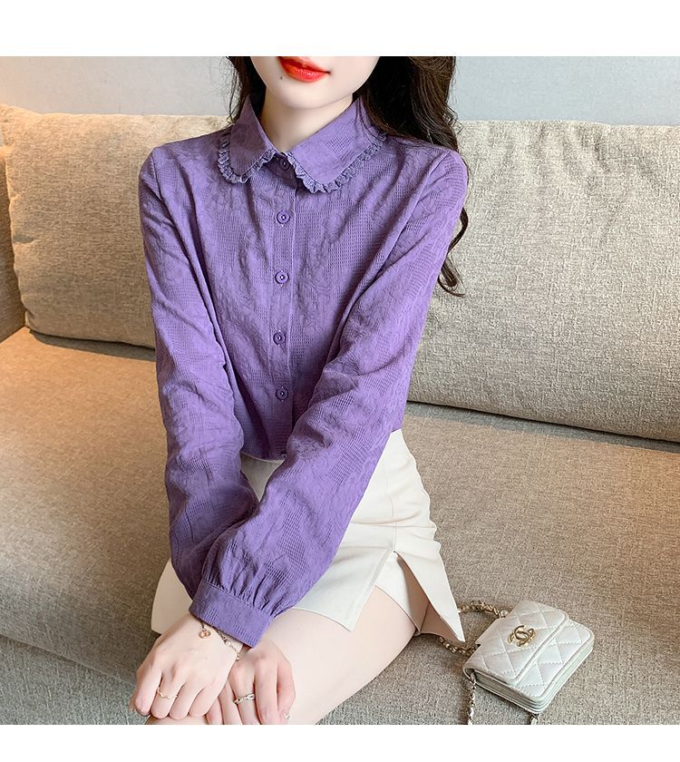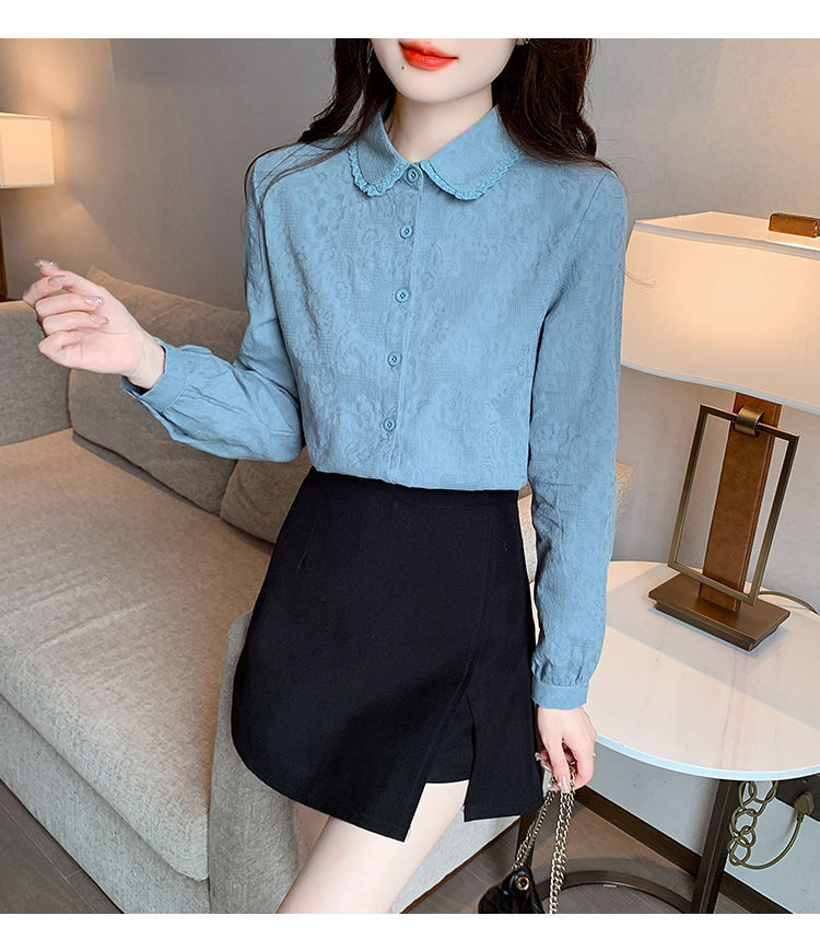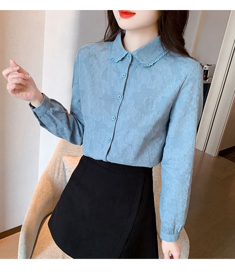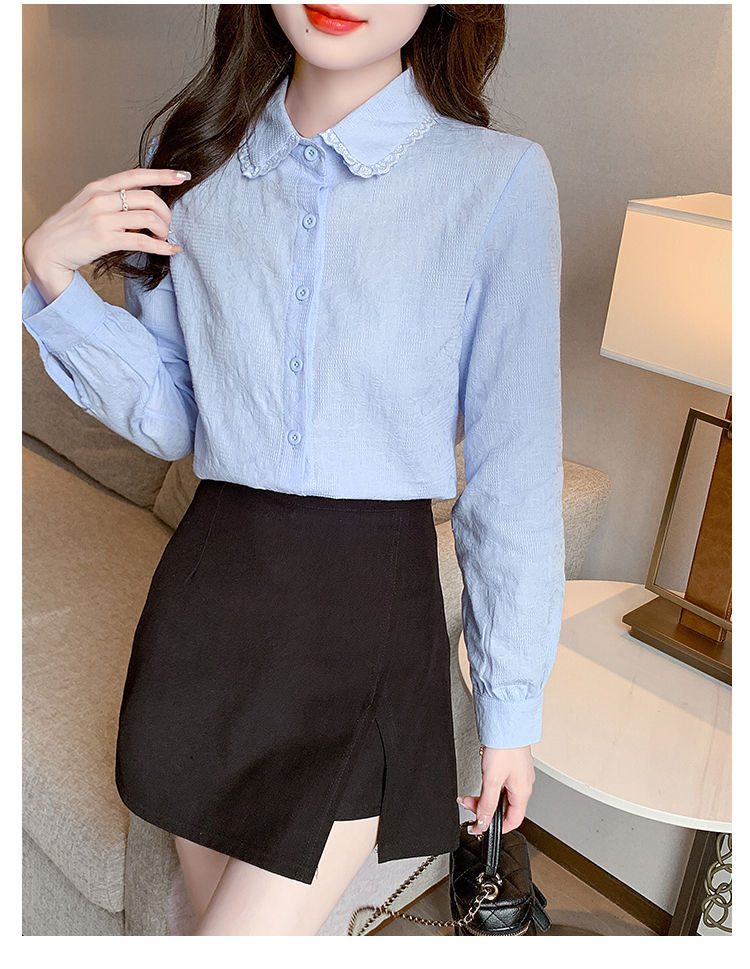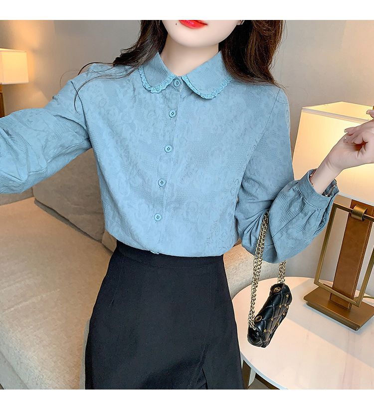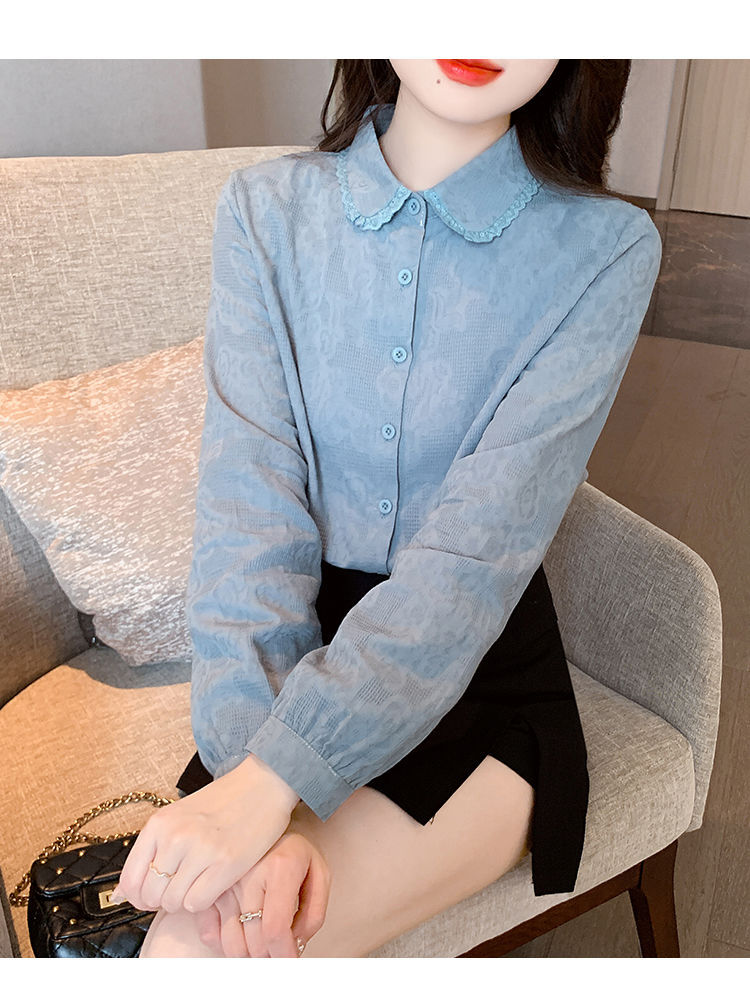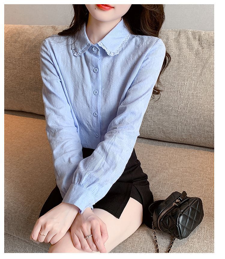 여성용 코튼 셔츠 2024 봄 새로운 다재다능한 패션 시대 감소 옷깃 긴 소매 셔츠 우아한 탑 웨스턴 스타일