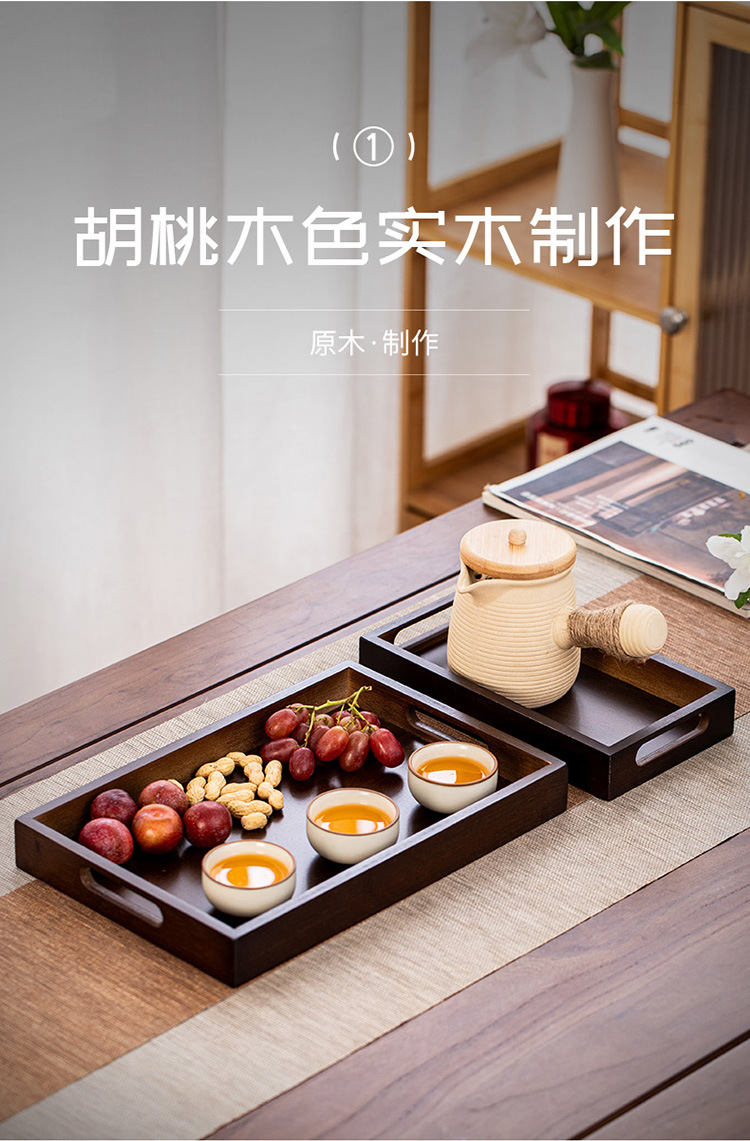 나무 쟁반 가정용 차 쟁반 거실 일본식 나무 고급 단단한 나무 저녁 식사 쟁반 차 세트 티 컵 보관 트레이