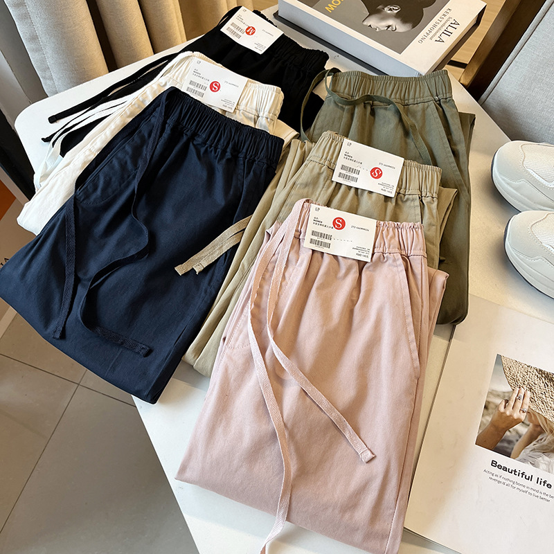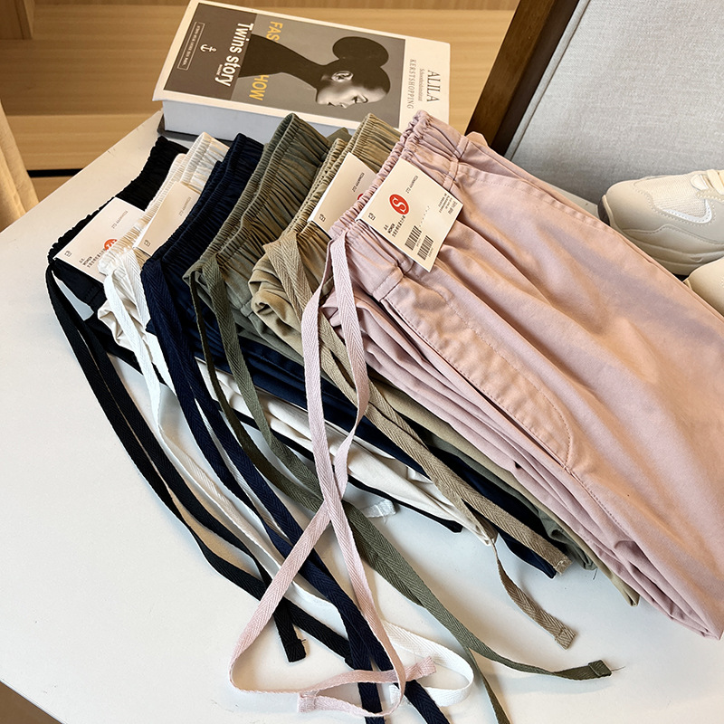 U! 엉터리! 피팅룸 봄 신상 일본식 캐주얼 심플 신축성 하이웨이스트 통근 다용도 여성 캐주얼 팬츠스토어 가기