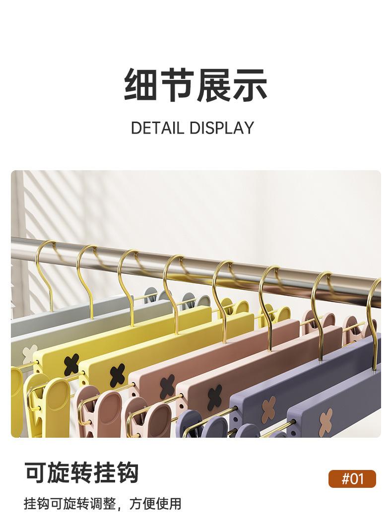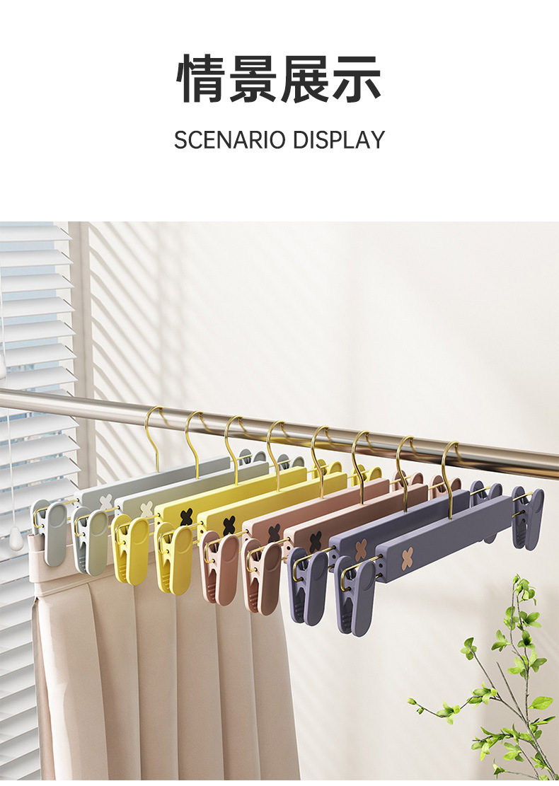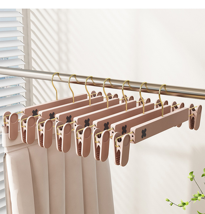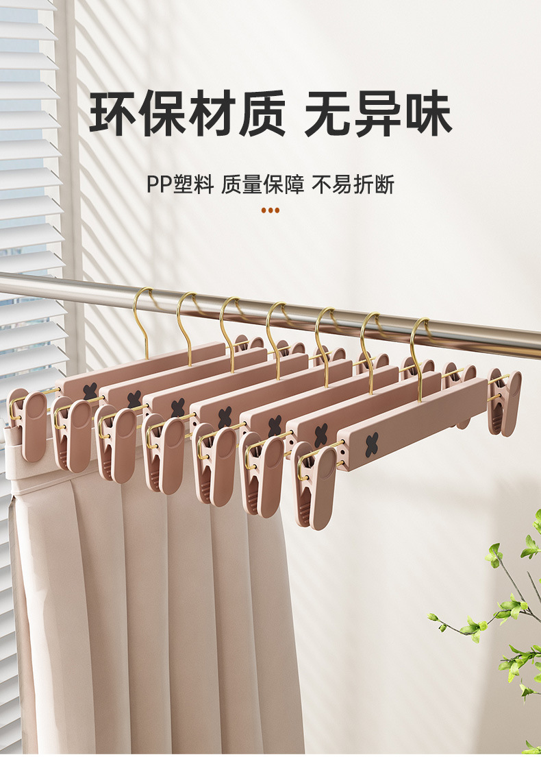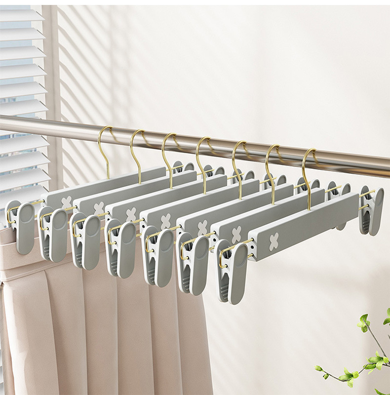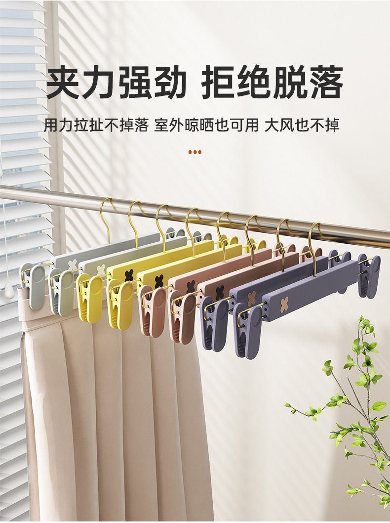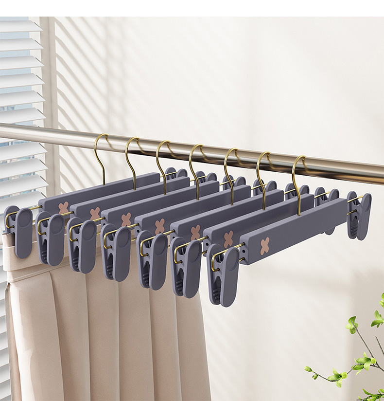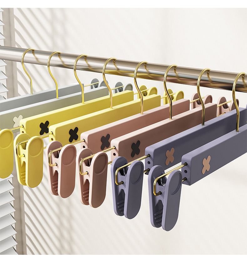 새로운 미끄럼 방지 플라스틱 바지 클립 가정용 습식 및 건식 골드 후크 x 컬러 매칭 개폐식 원활한 옷걸이 컬러 의류 매장 바지 클립