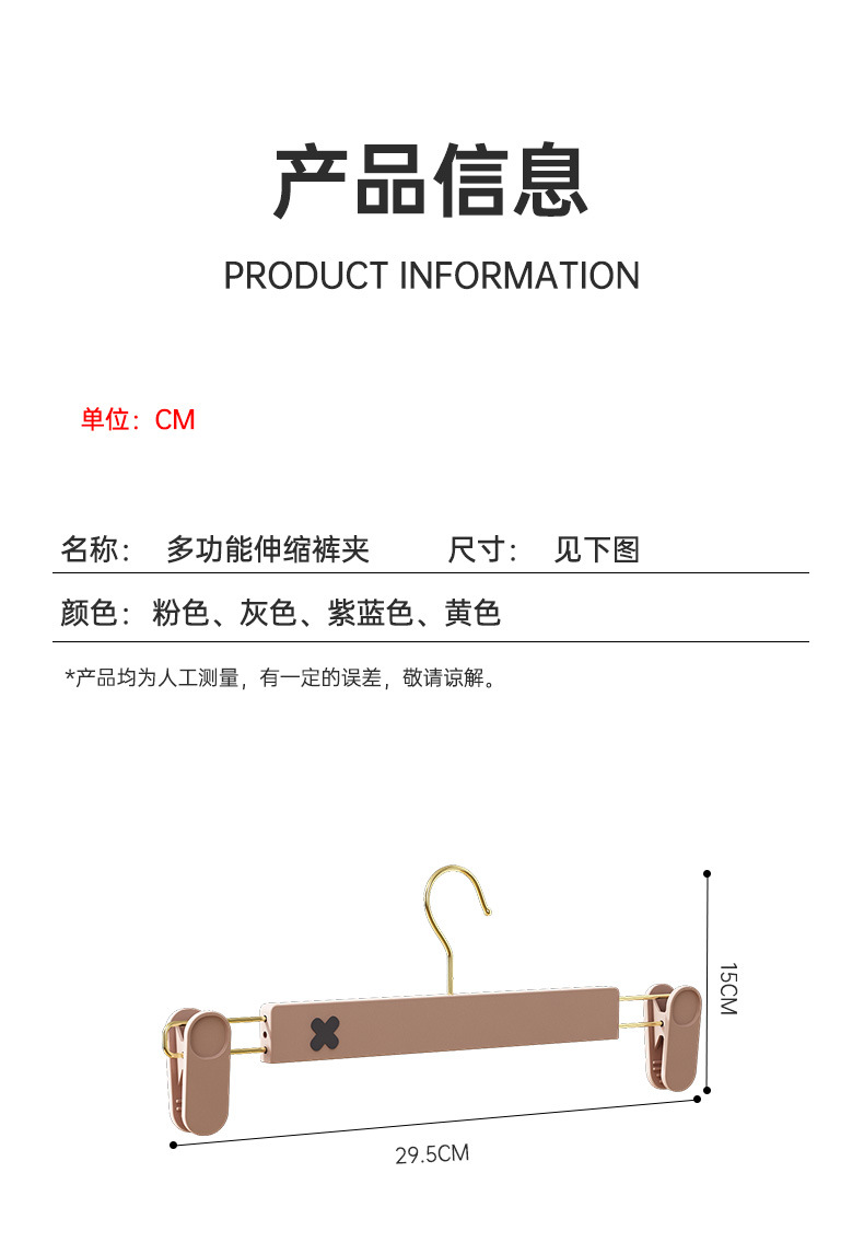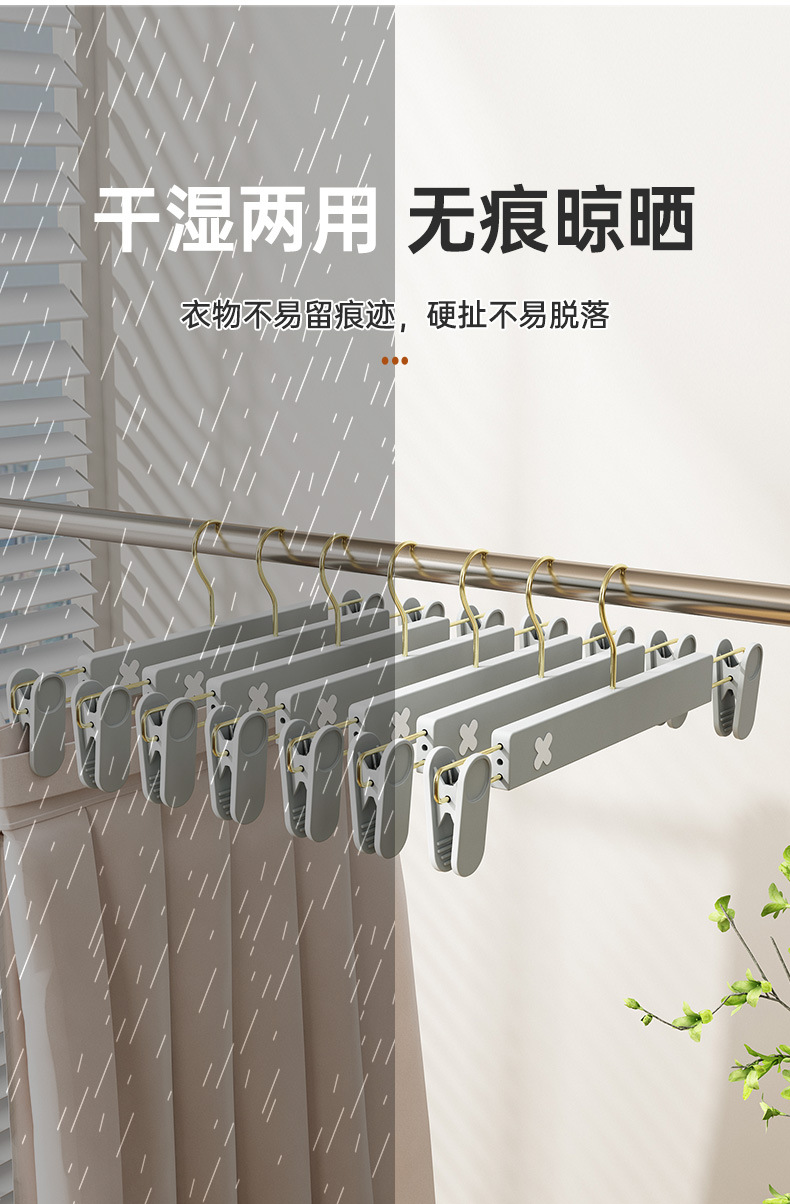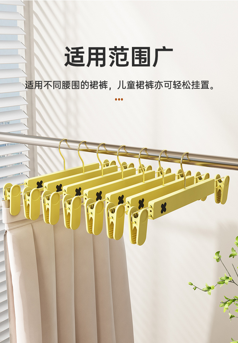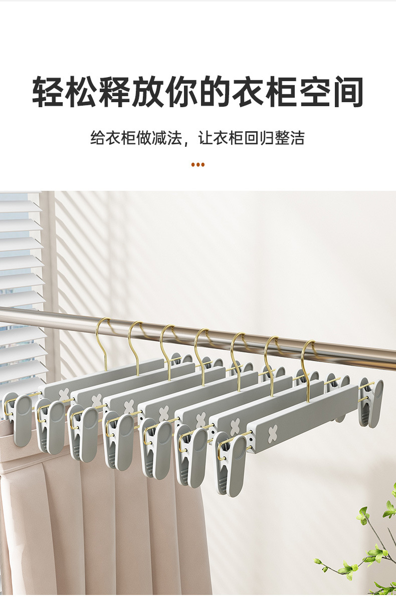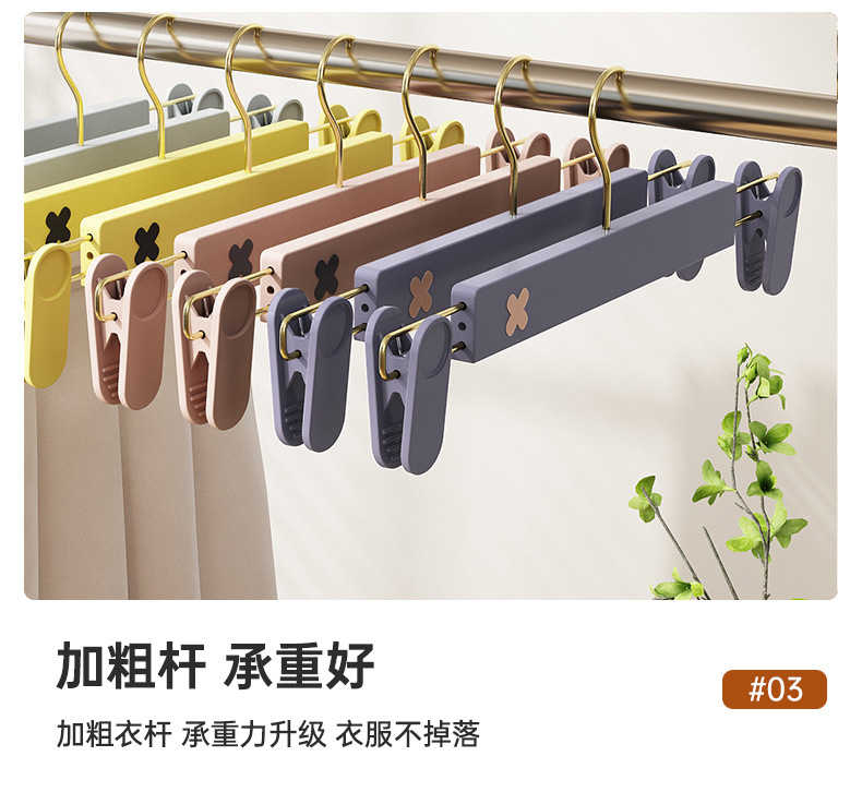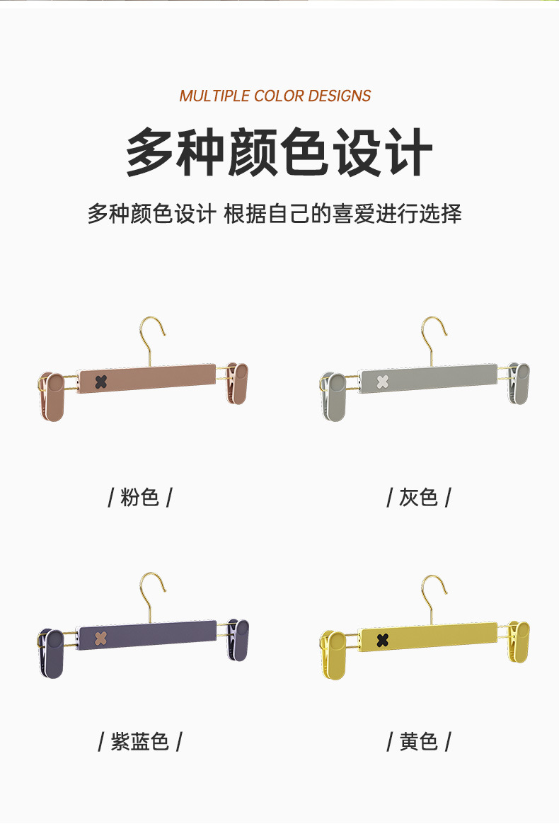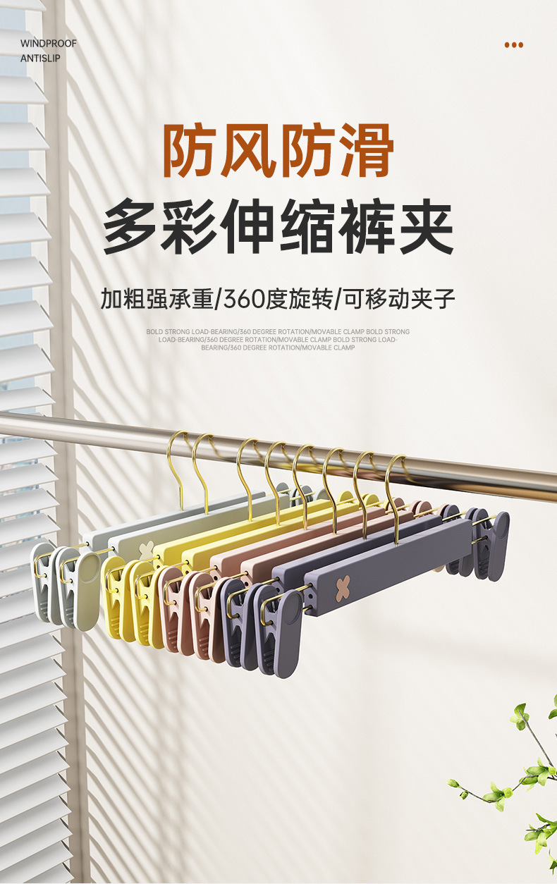 새로운 미끄럼 방지 플라스틱 바지 클립 가정용 습식 및 건식 골드 후크 x 컬러 매칭 개폐식 원활한 옷걸이 컬러 의류 매장 바지 클립