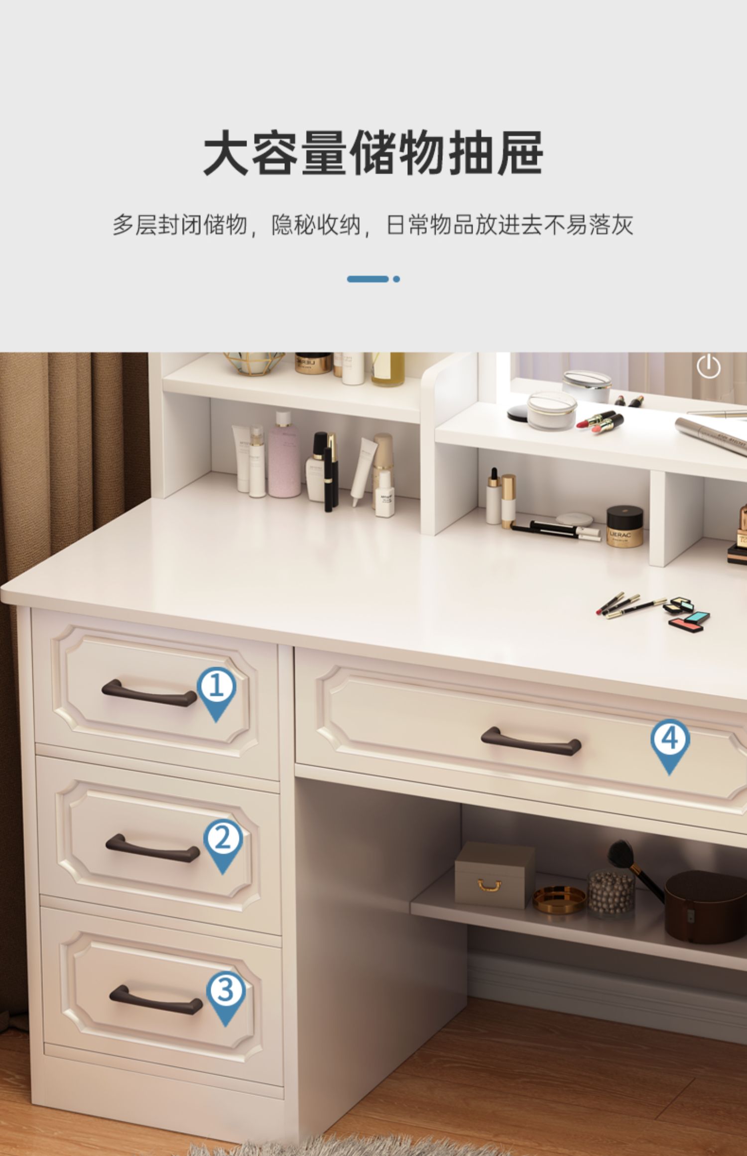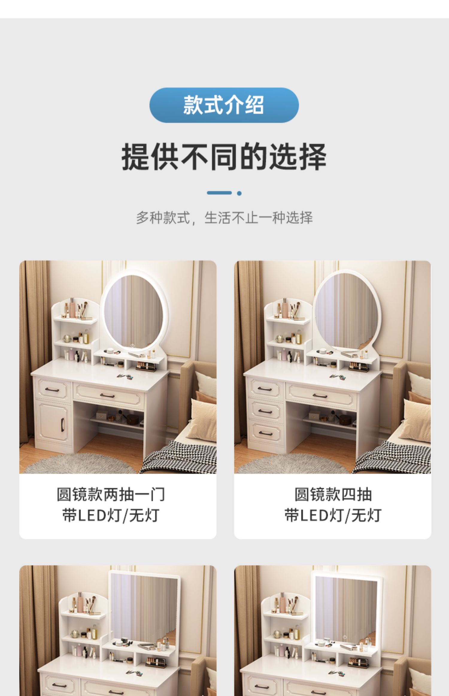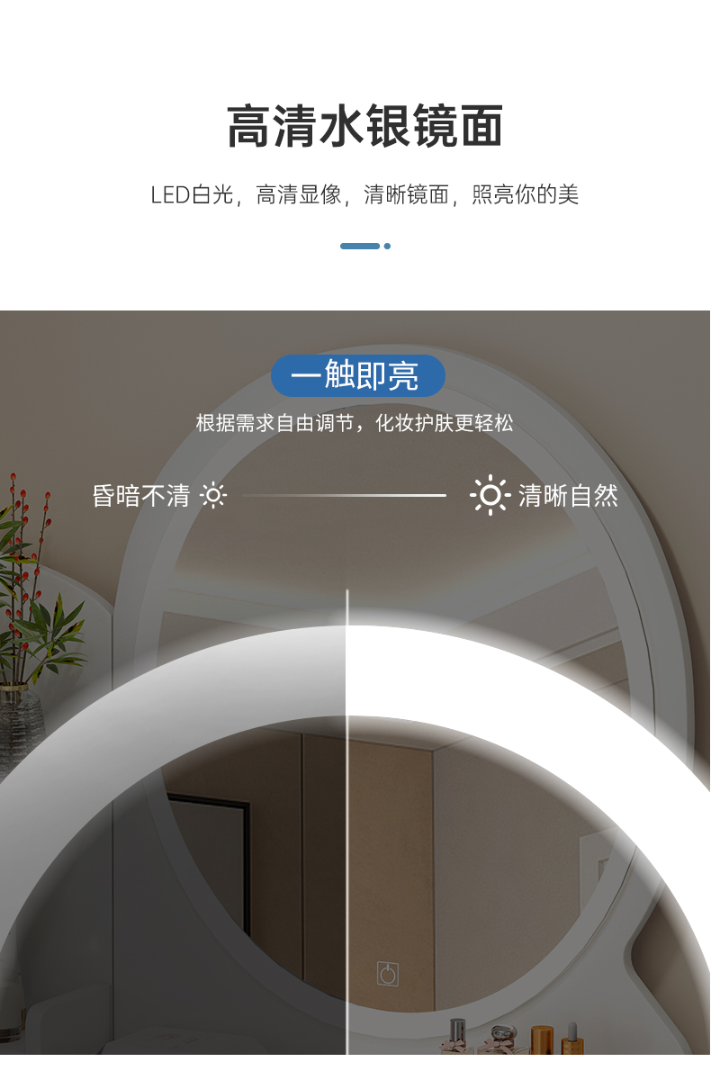 • 80 라운드 미러 + LED + 드레싱 의자 (4 개의 서랍)