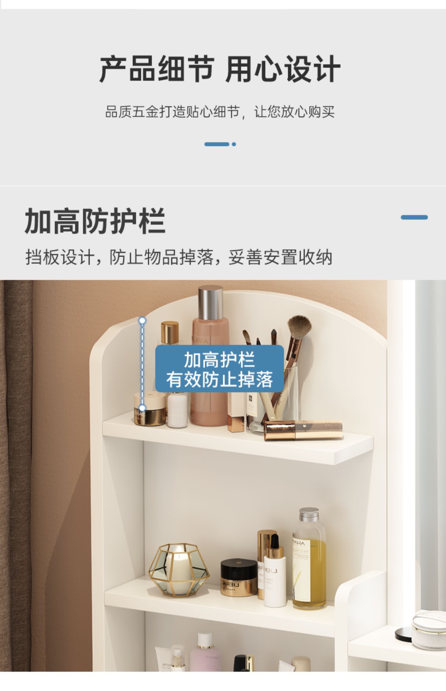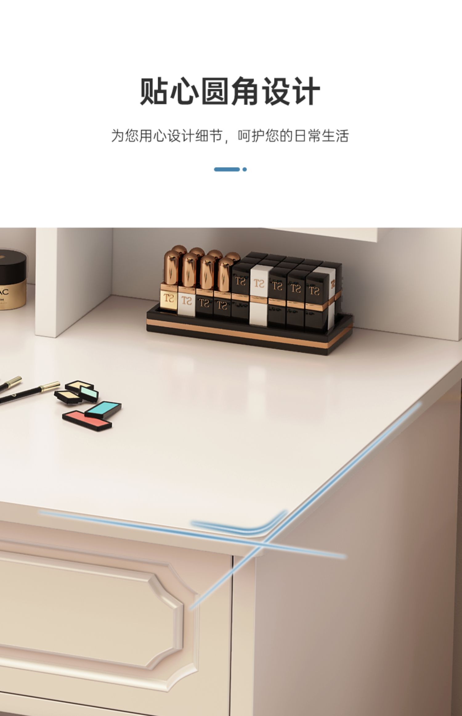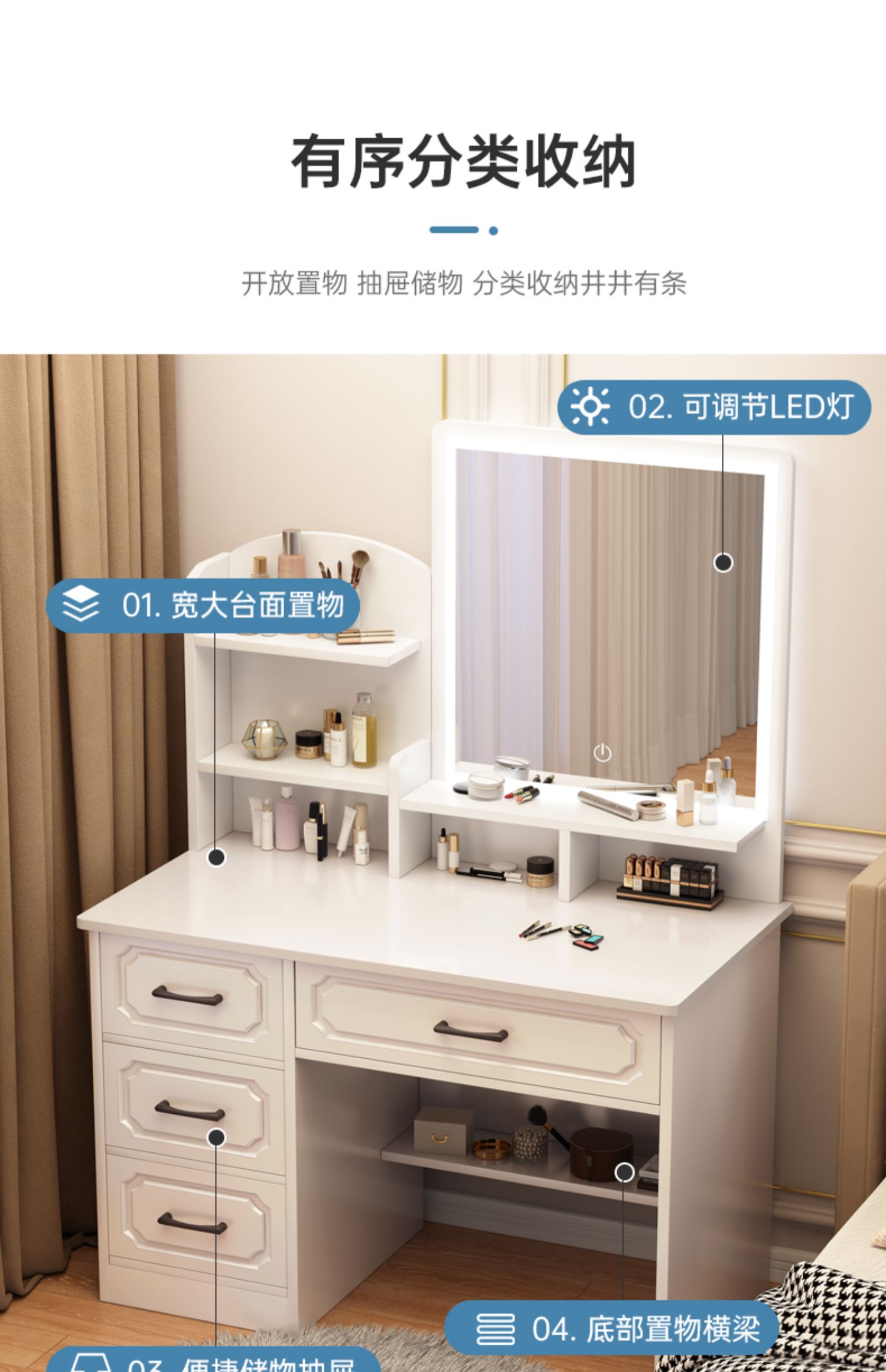 • 80 라운드 미러 + LED + 드레싱 의자 (4 개의 서랍)
