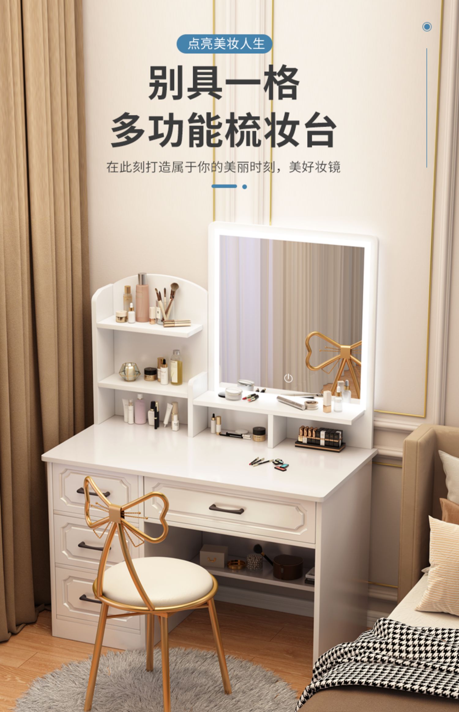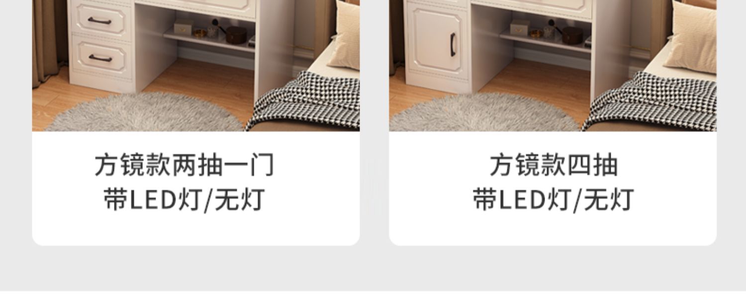 • 80cm 사각 거울 + 나비 의자 + LED (4 개의 서랍)