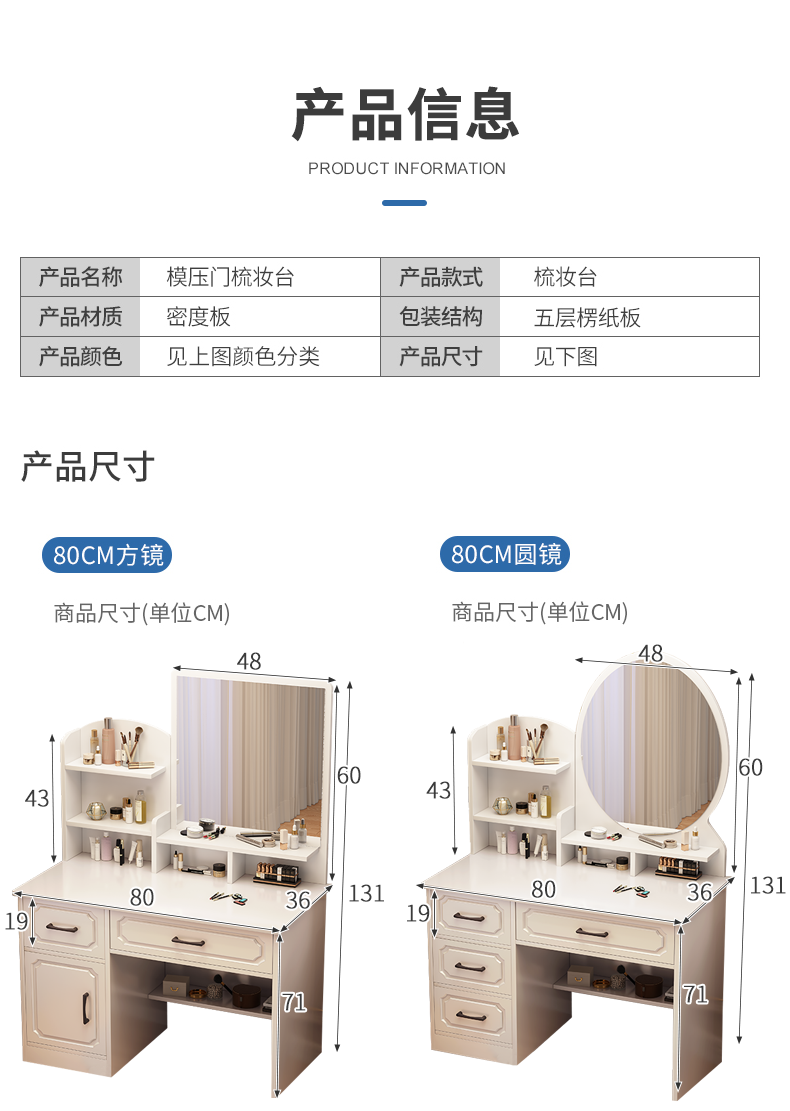 • 80cm 둥근 거울 (4 개의 서랍)