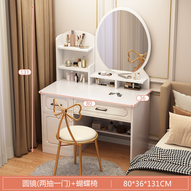 • 80cm 둥근 거울 + 나비 의자 (4 개의 서랍)