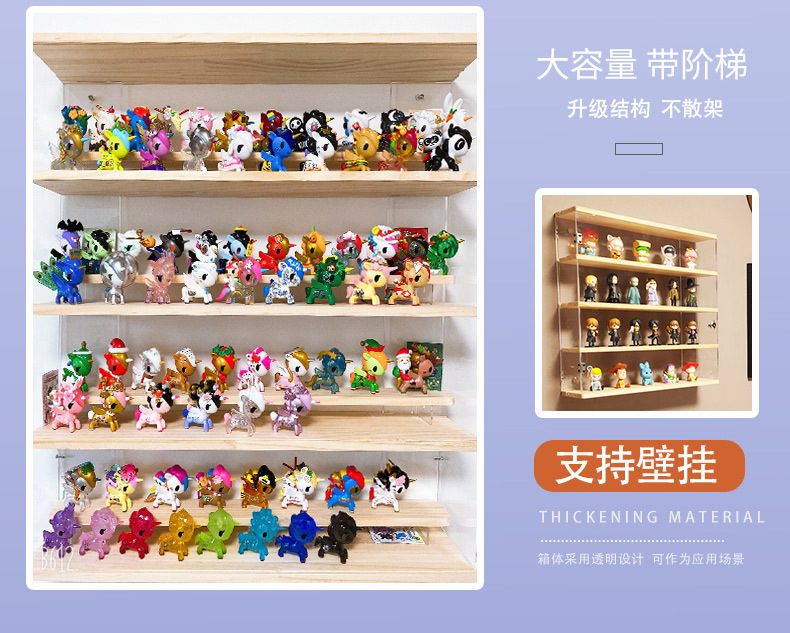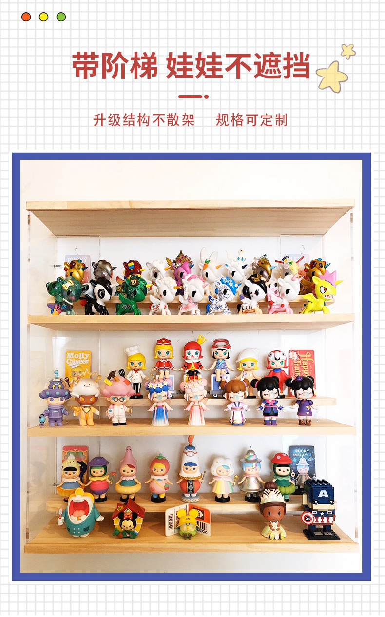 블라인드 박스 스토리지 디스플레이 스탠드 솔리드 우드 스탠드 핸드 헬드 투명 방진 버블 매트 디스플레이 박스 아크릴 스토리지 박스스토어 가기