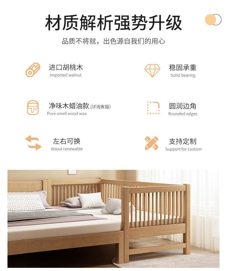 호두 어린이 침대 침대 침대 순수한 단단한 나무 침대 싱글 침대 소년 소녀 공주 침대 어린이 접합 침대