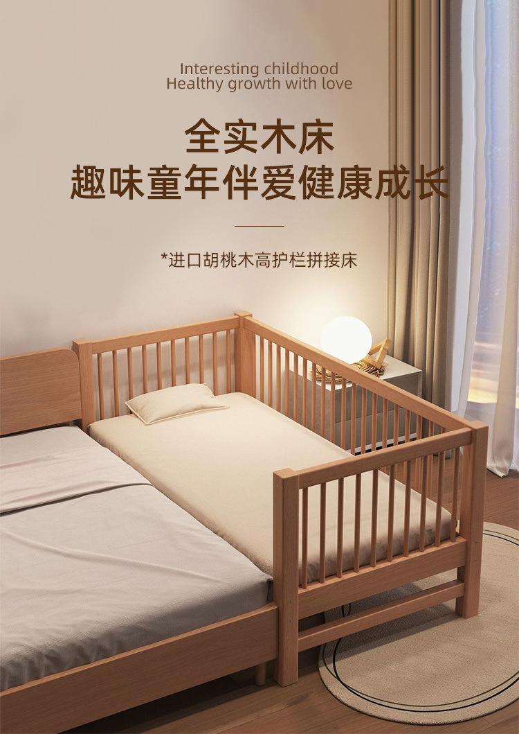 호두 어린이 침대 침대 침대 순수한 단단한 나무 침대 싱글 침대 소년 소녀 공주 침대 어린이 접합 침대스토어 가기