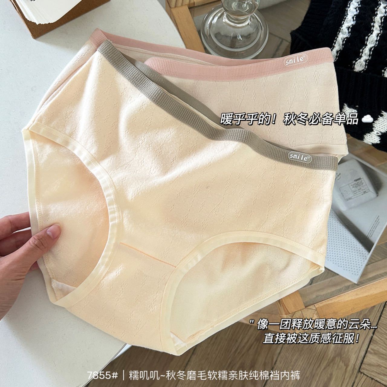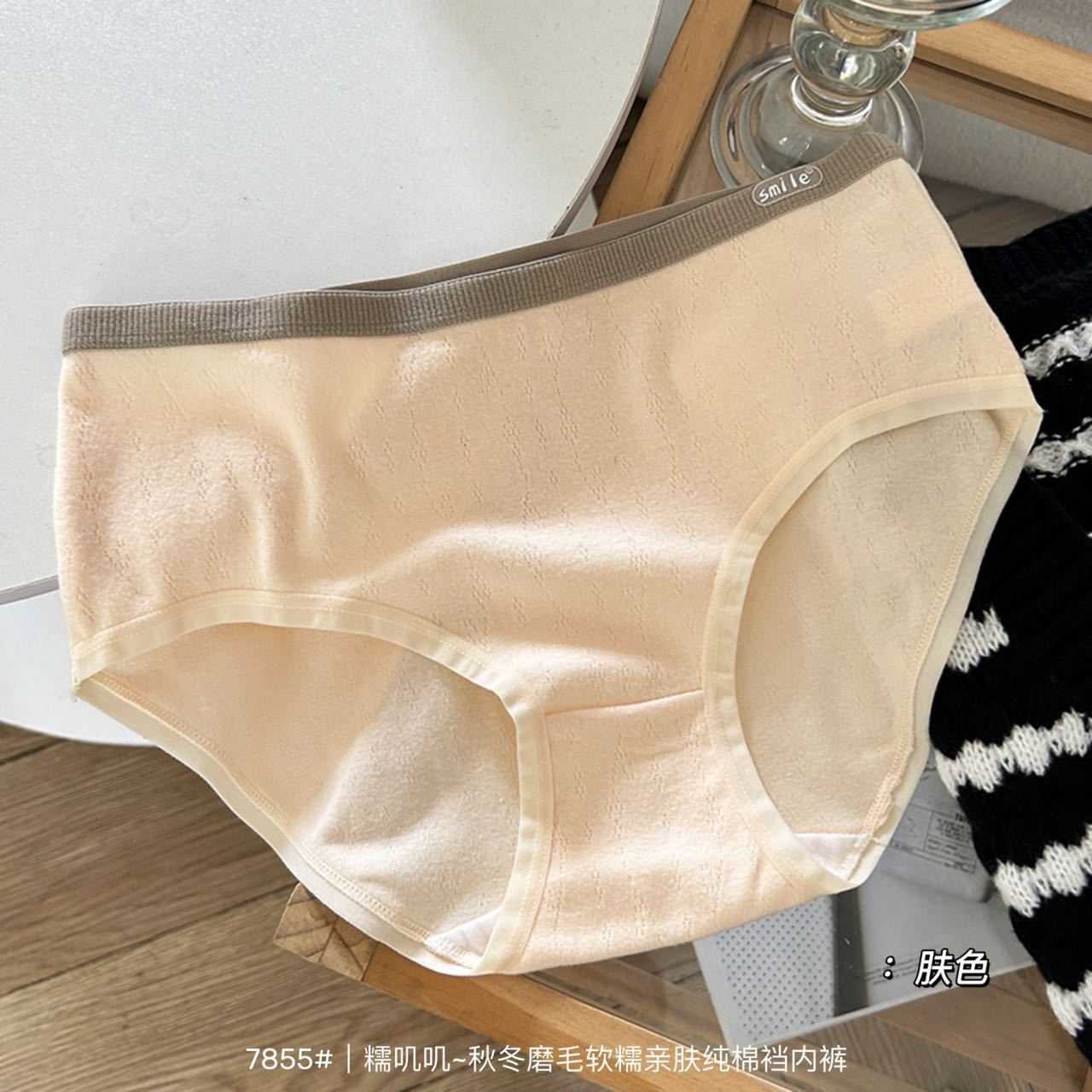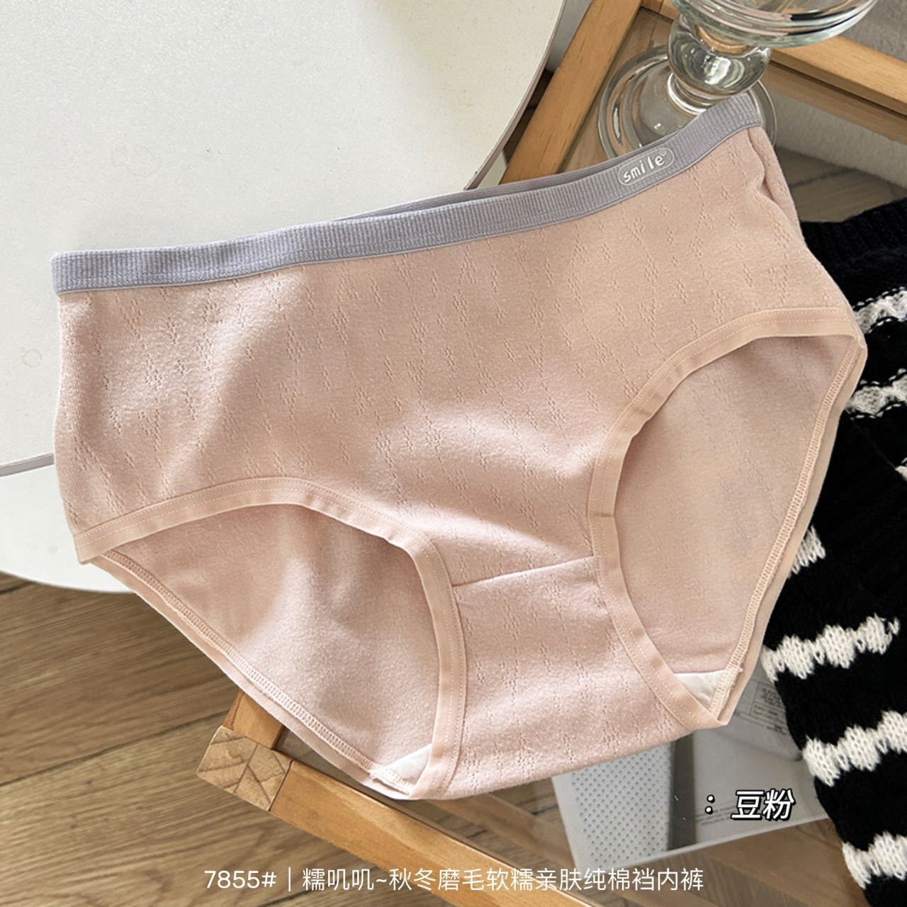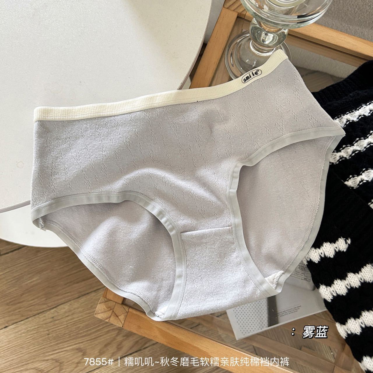 가을과 겨울 닦은 피부 친화적 인 부드러운 찹쌀면 가랑이 소녀의 속옷 허리 머리 글자 대비 색상 원활한 미드 허리 여성 브리프