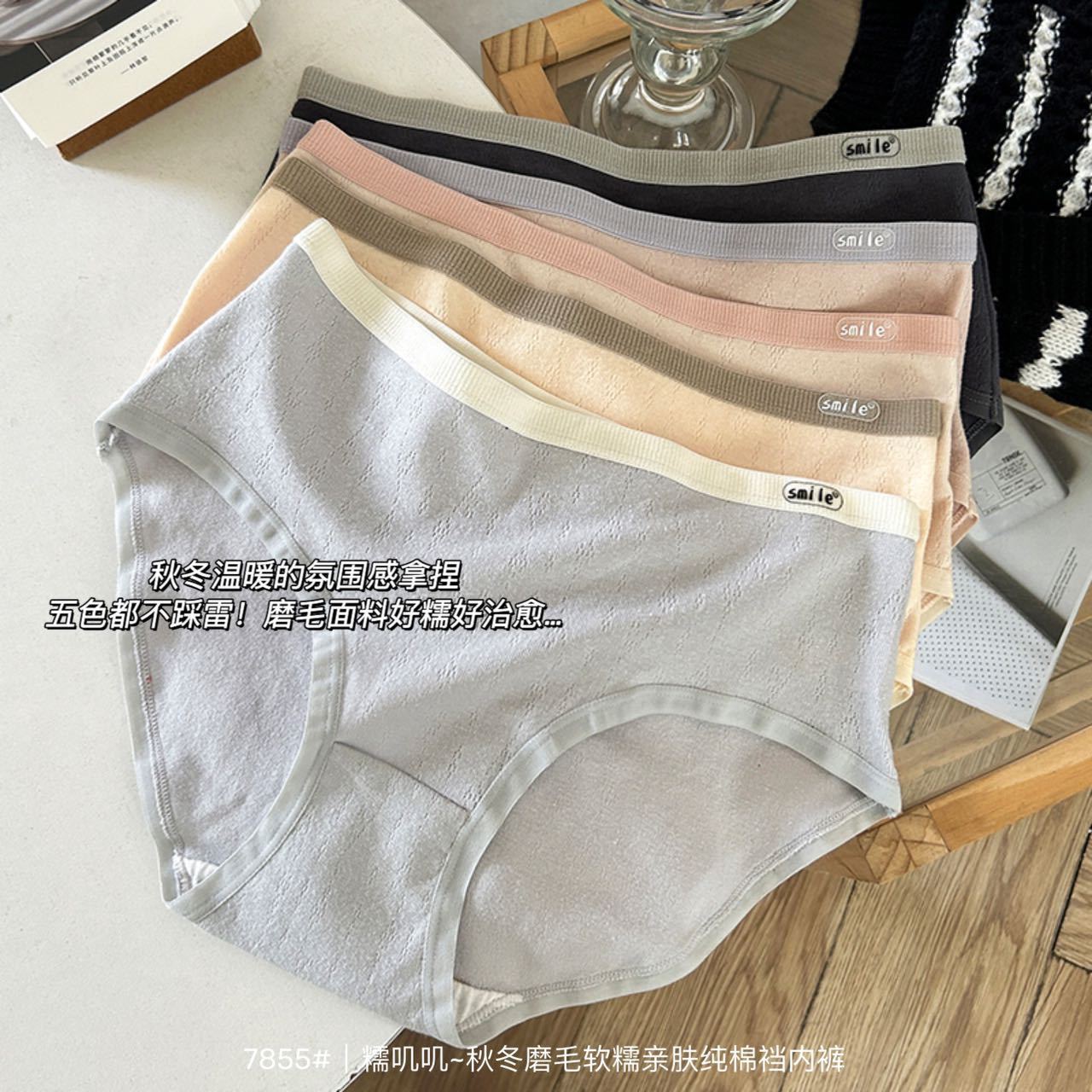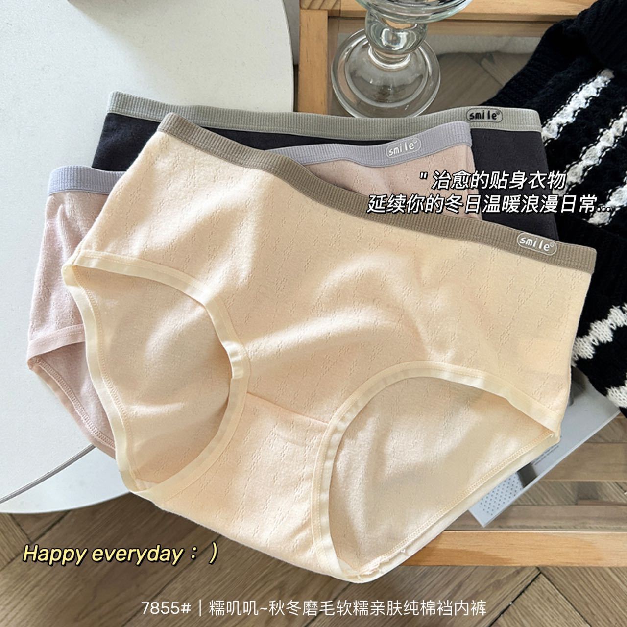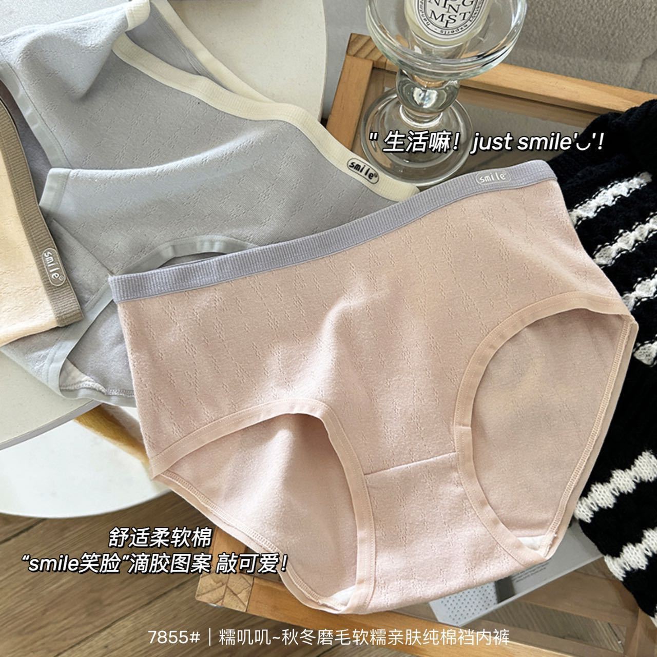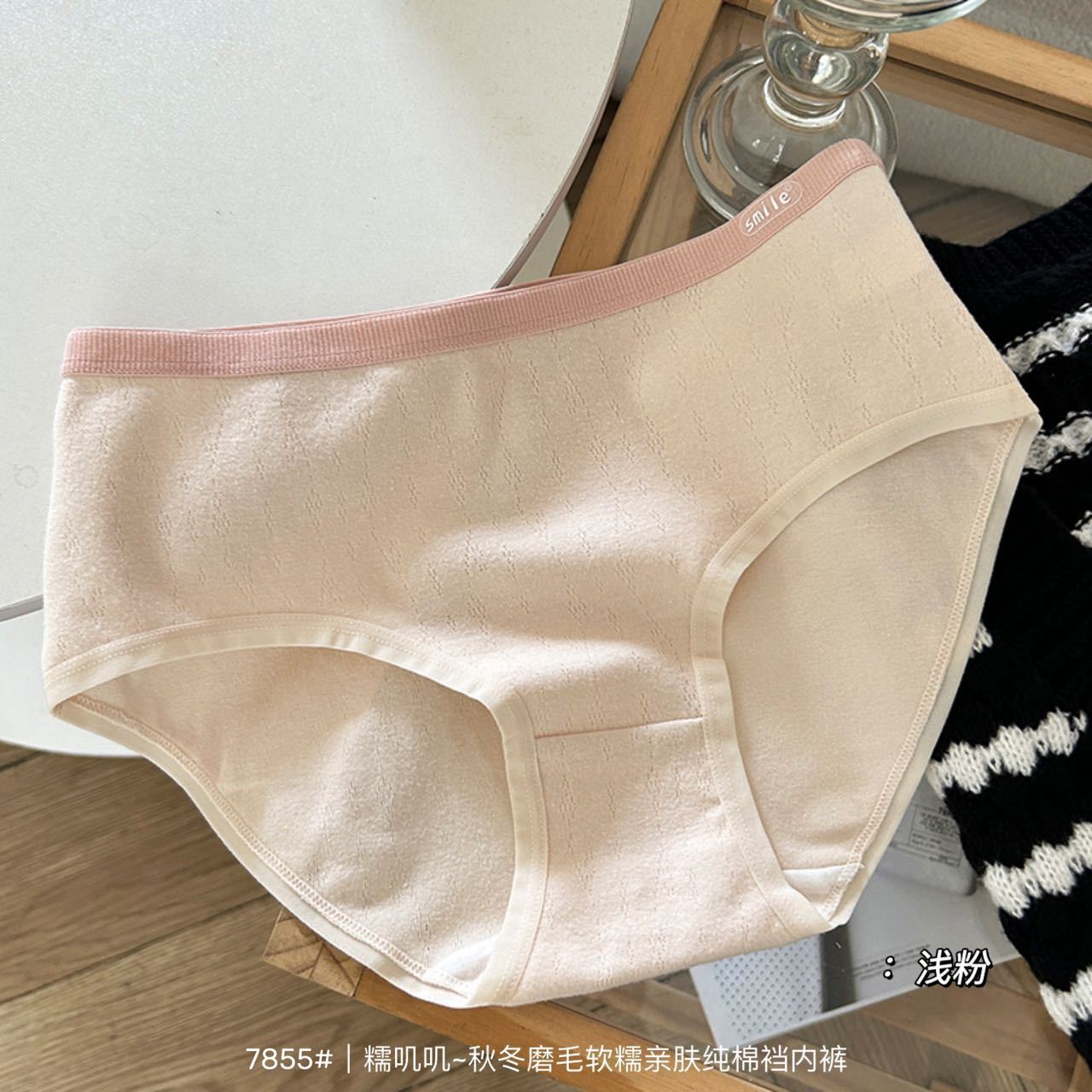 가을과 겨울 닦은 피부 친화적 인 부드러운 찹쌀면 가랑이 소녀의 속옷 허리 머리 글자 대비 색상 원활한 미드 허리 여성 브리프