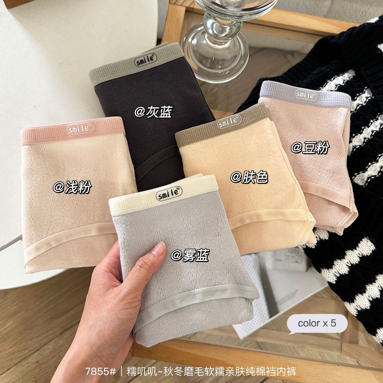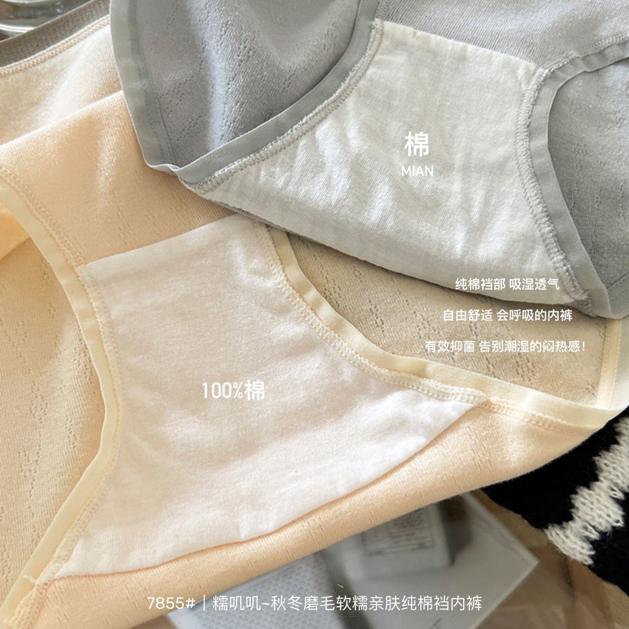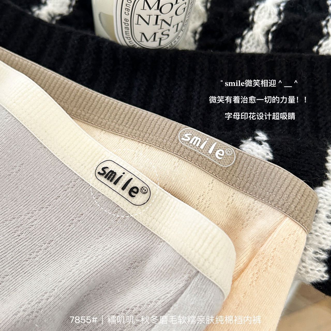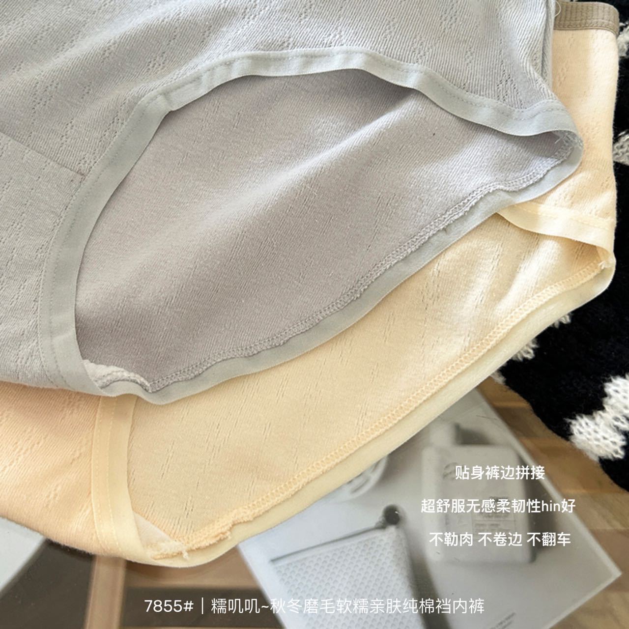 가을과 겨울 닦은 피부 친화적 인 부드러운 찹쌀면 가랑이 소녀의 속옷 허리 머리 글자 대비 색상 원활한 미드 허리 여성 브리프
