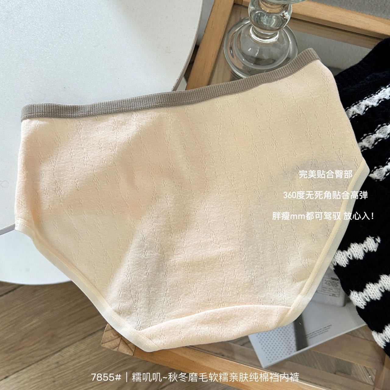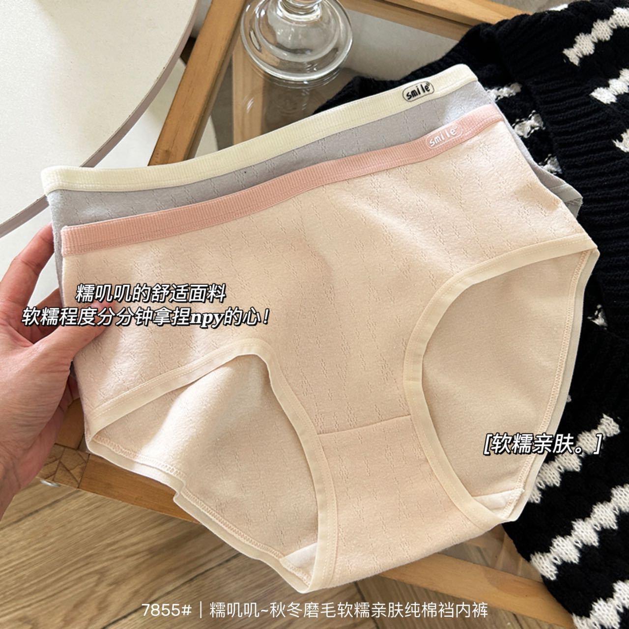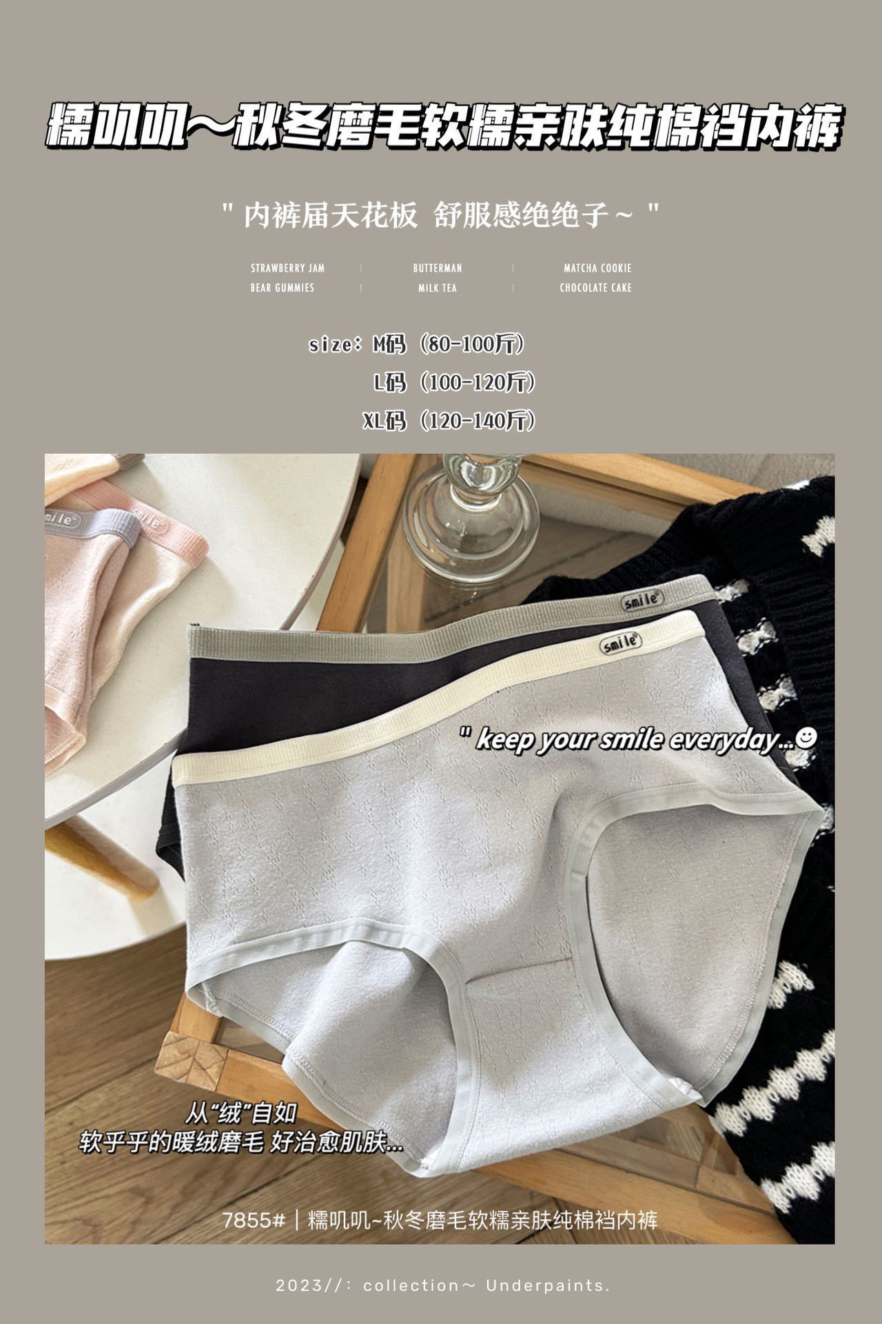 가을과 겨울 닦은 피부 친화적 인 부드러운 찹쌀면 가랑이 소녀의 속옷 허리 머리 글자 대비 색상 원활한 미드 허리 여성 브리프스토어 가기
