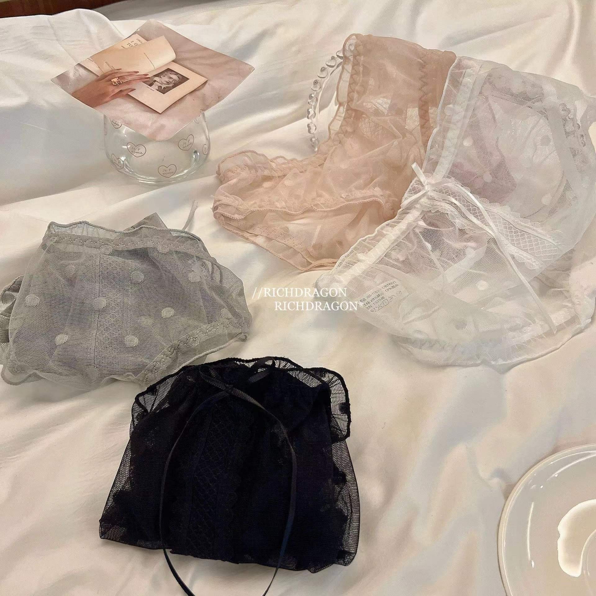 METWO 소녀의 가슴 아픈 섹시한 달콤한 레이스 속옷 여성의 중간 허리 반투명 일본 물방울 무늬 브리프스토어 가기