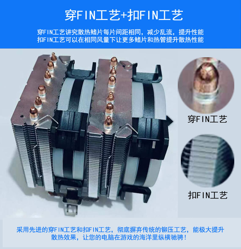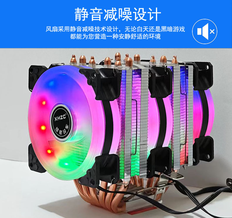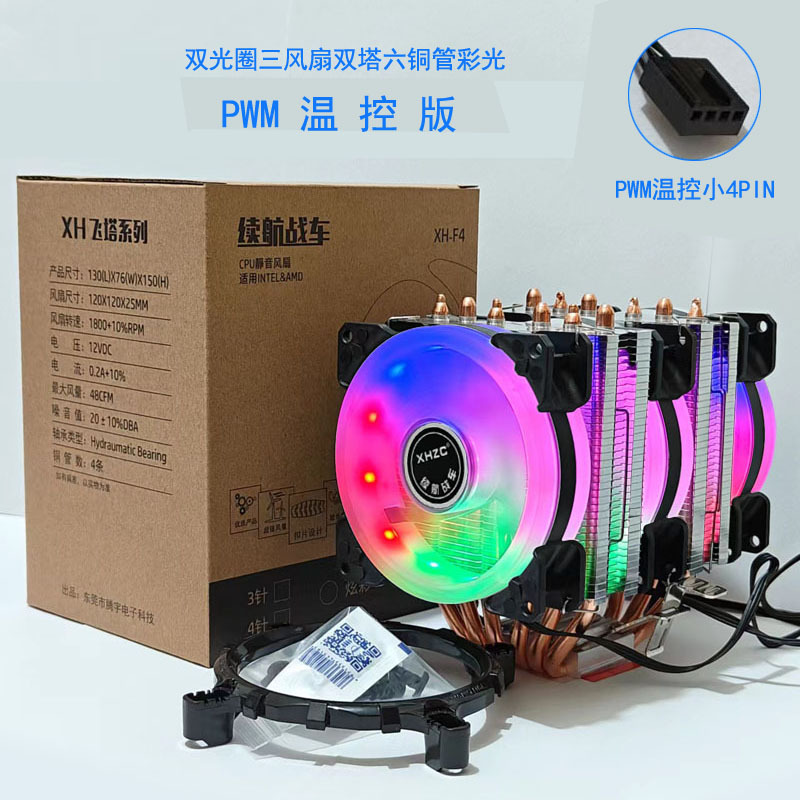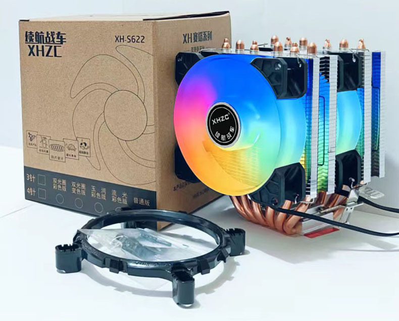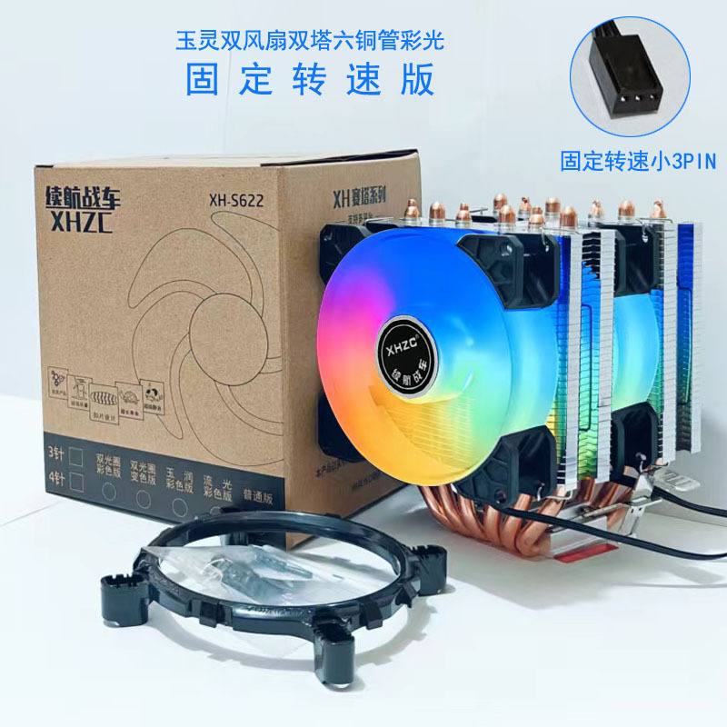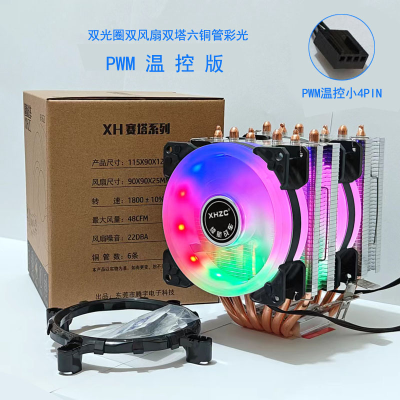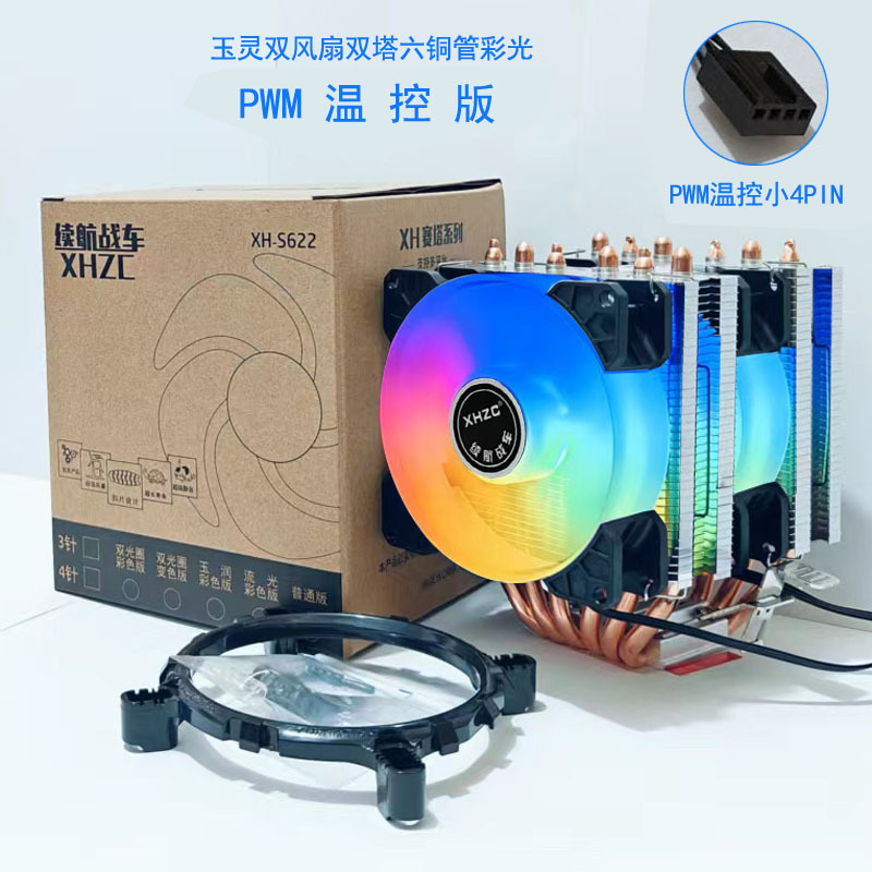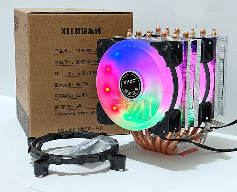 • Yuling 더블 팬 컬러 라이트 6 구리 튜브 PWM 온도 제어 팬
