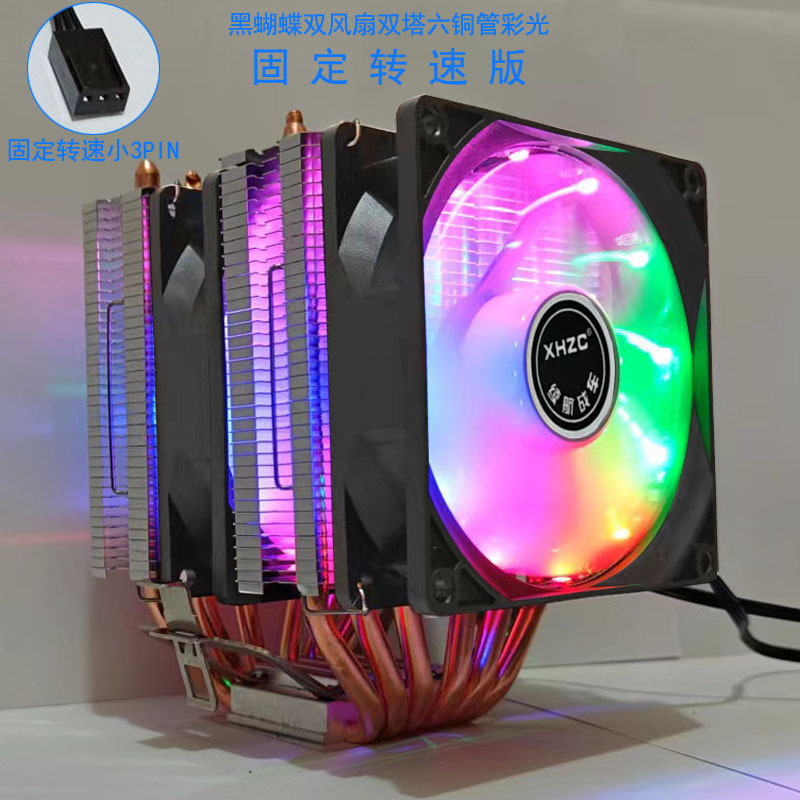 • 블랙 나비 더블 팬 컬러 라이트 6 구리 튜브 고정 속도 팬