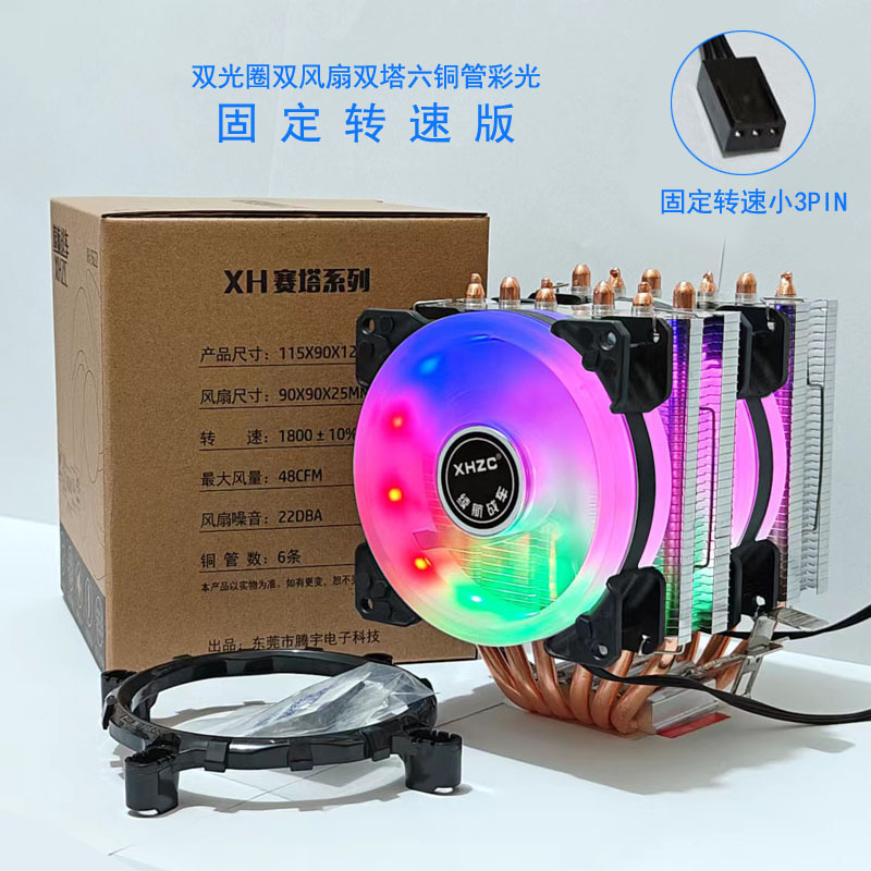 • Yuling 더블 팬 컬러 라이트 6 구리 튜브 고정 속도 팬