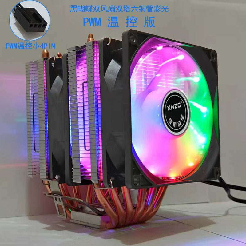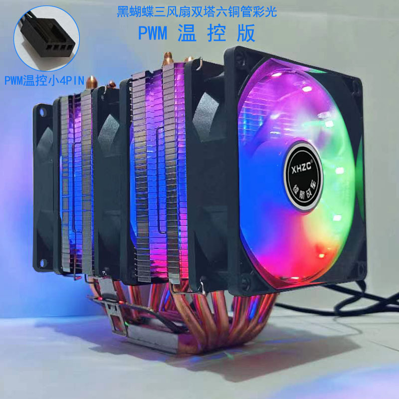 • 블랙 나비 더블 팬 컬러 라이트 6 구리 튜브 PWM 온도 제어 팬