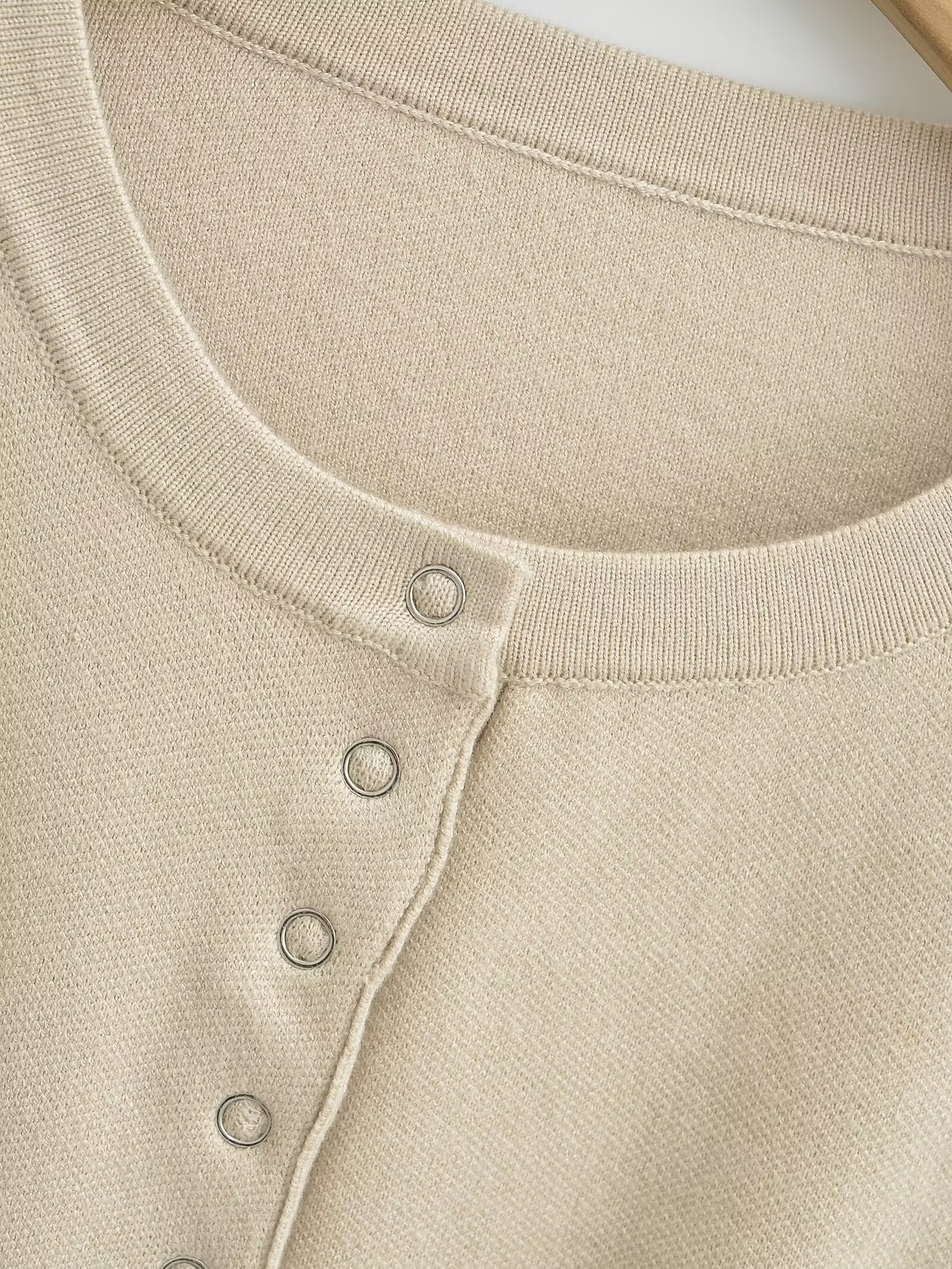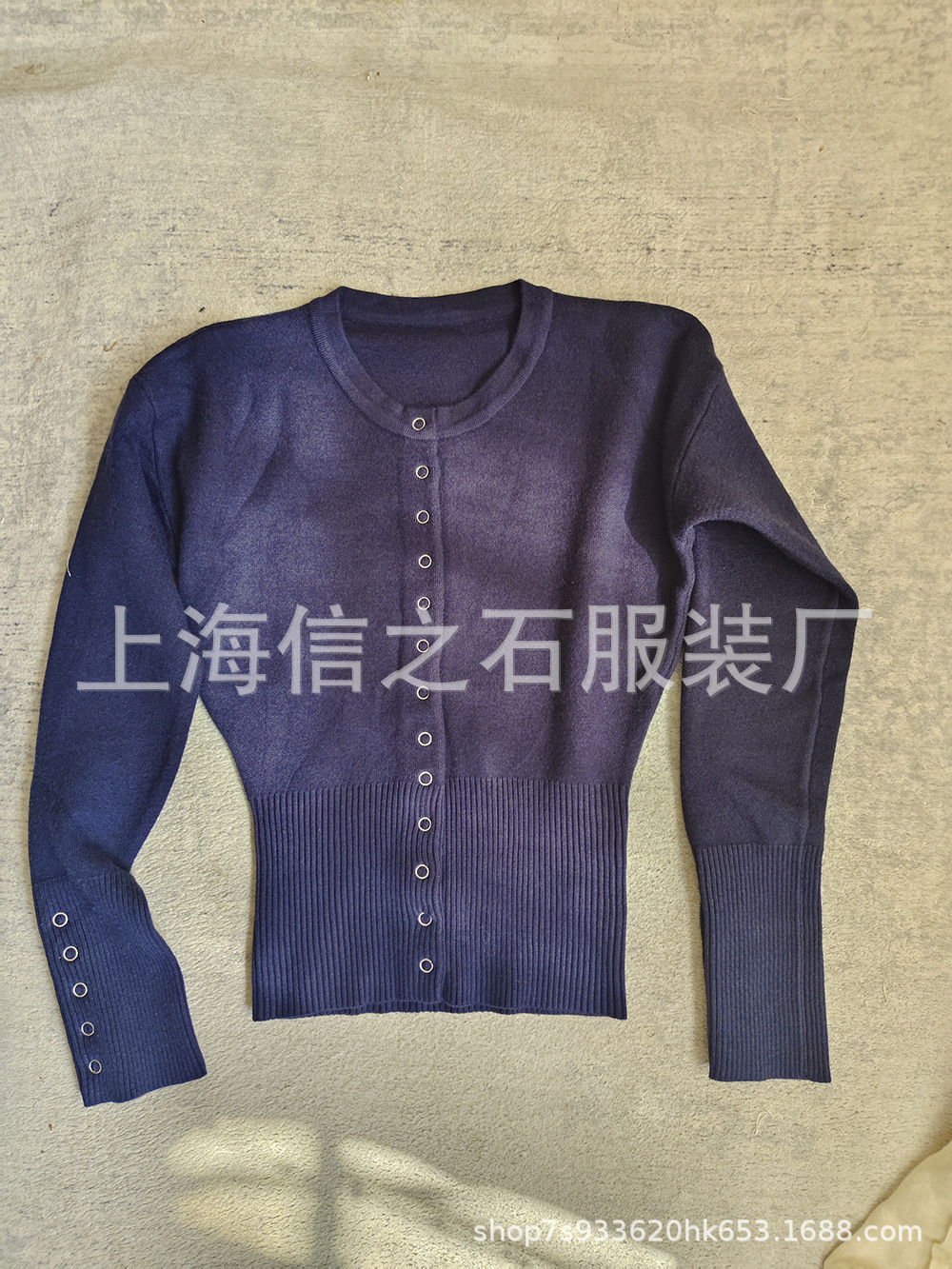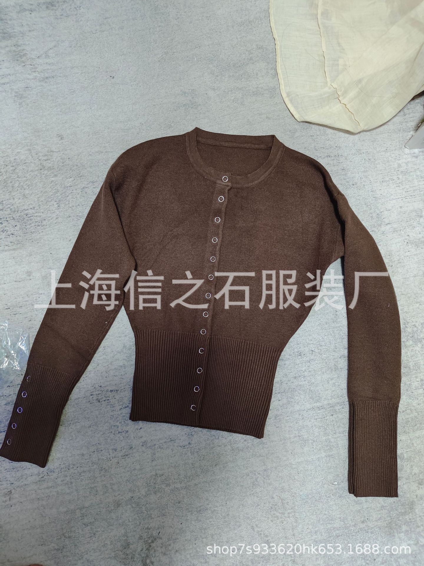 유럽과 미국의 하이 웨이스트 여성용 라운드 넥 싱글 브레스트 스웨터 여성용 틈새 디자인 짧은 탑과 얇은 스웨터 트렌디스토어 가기