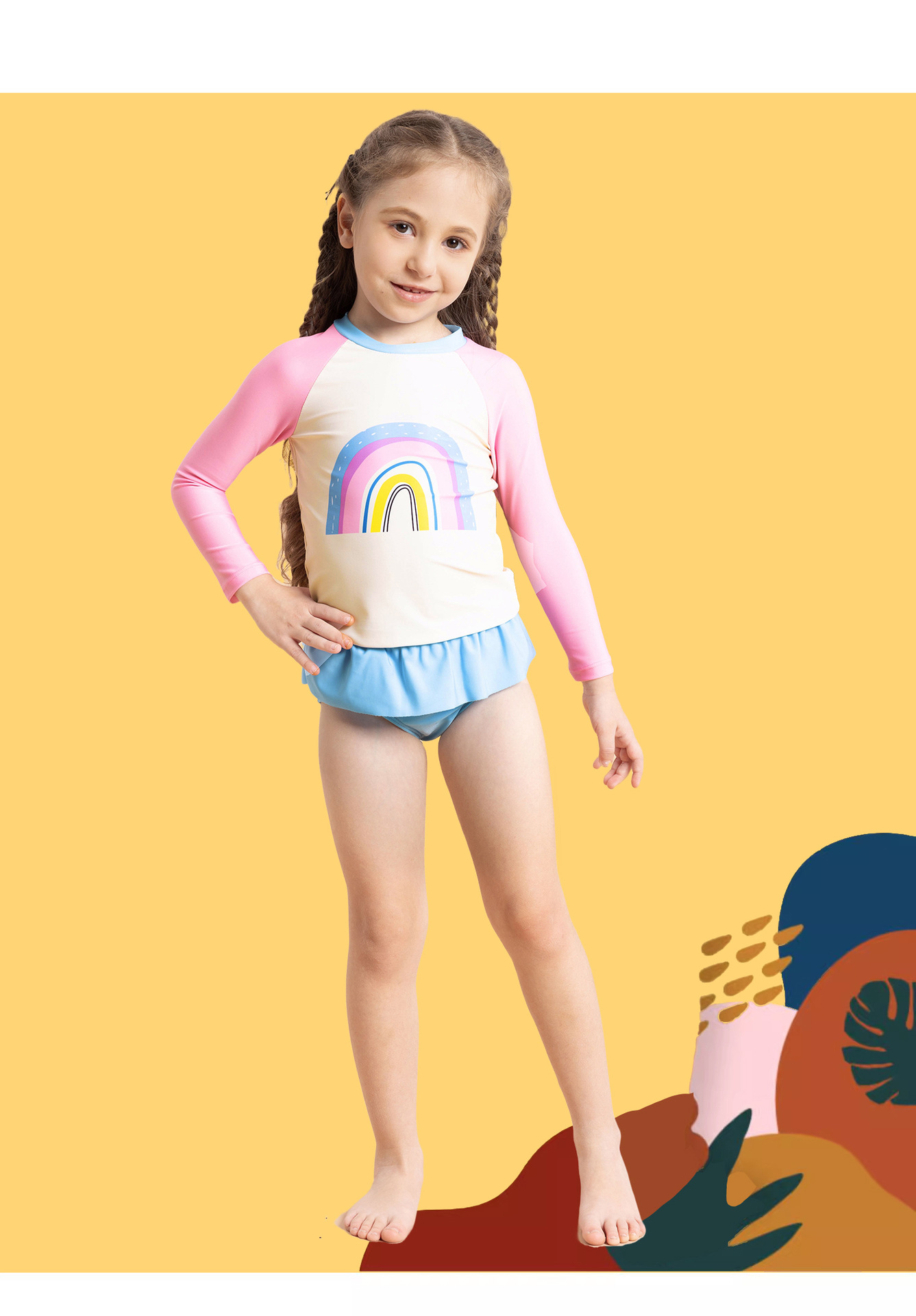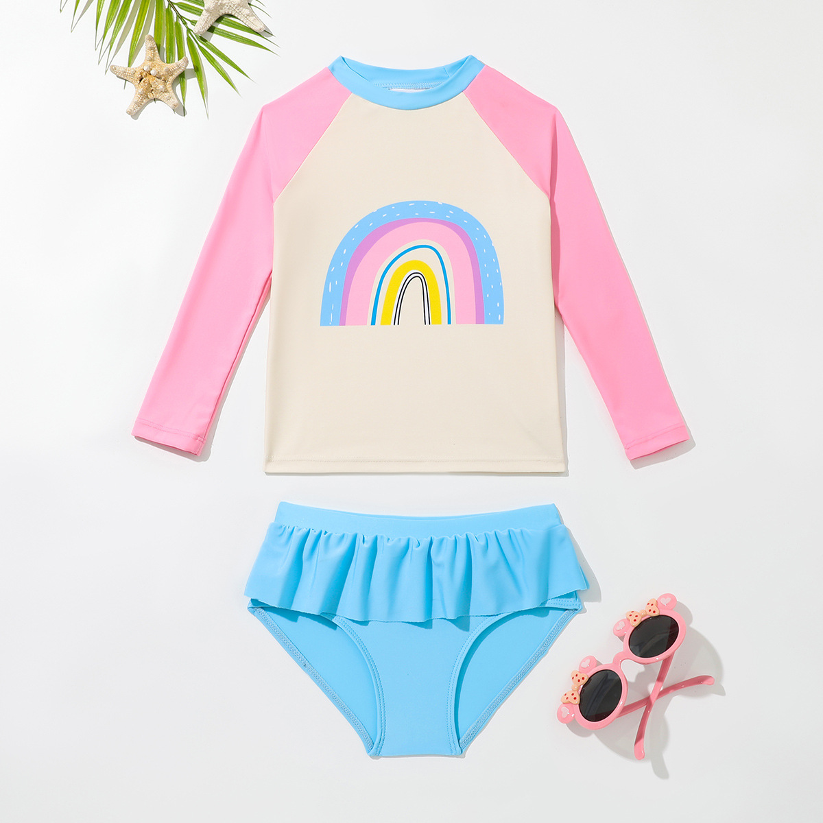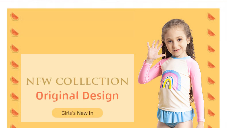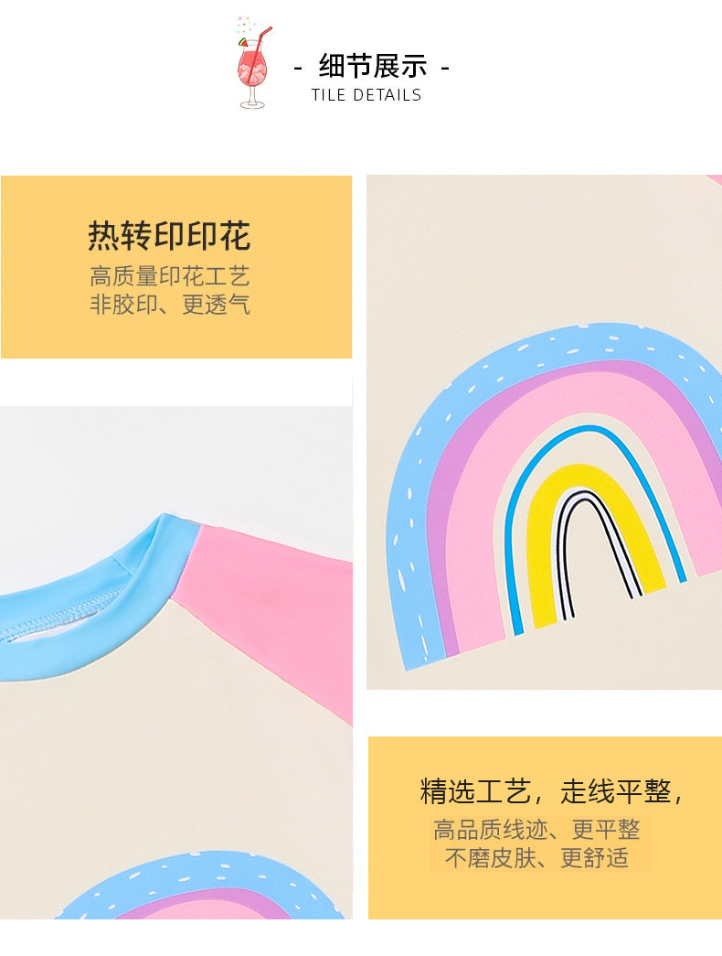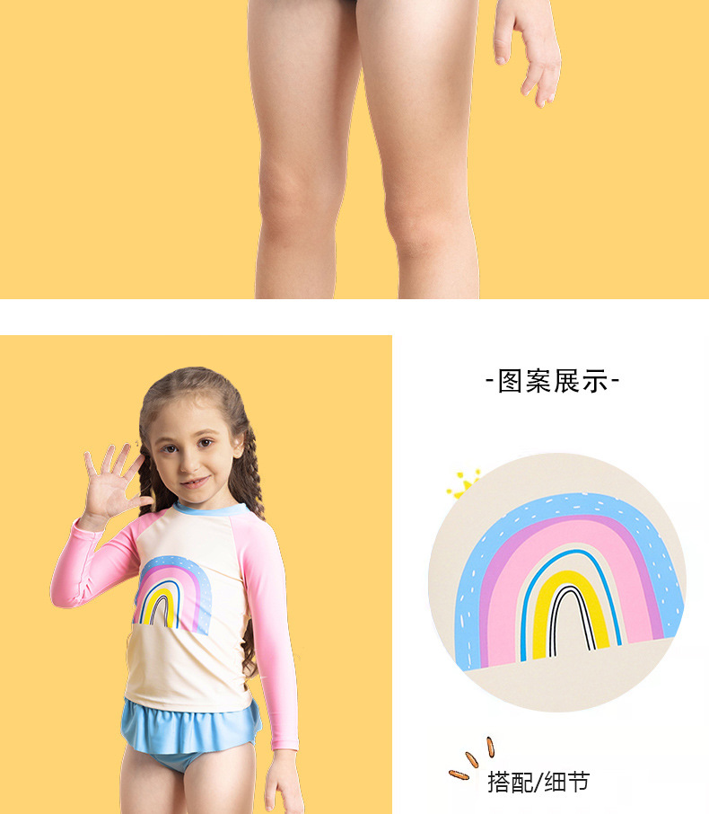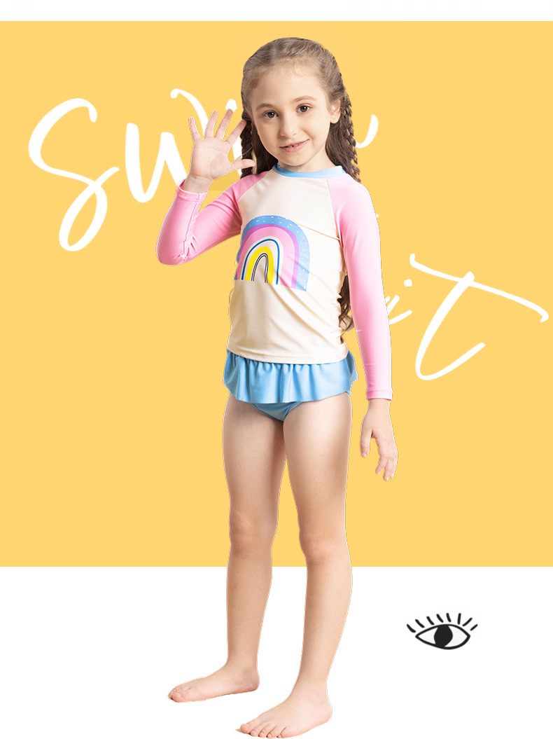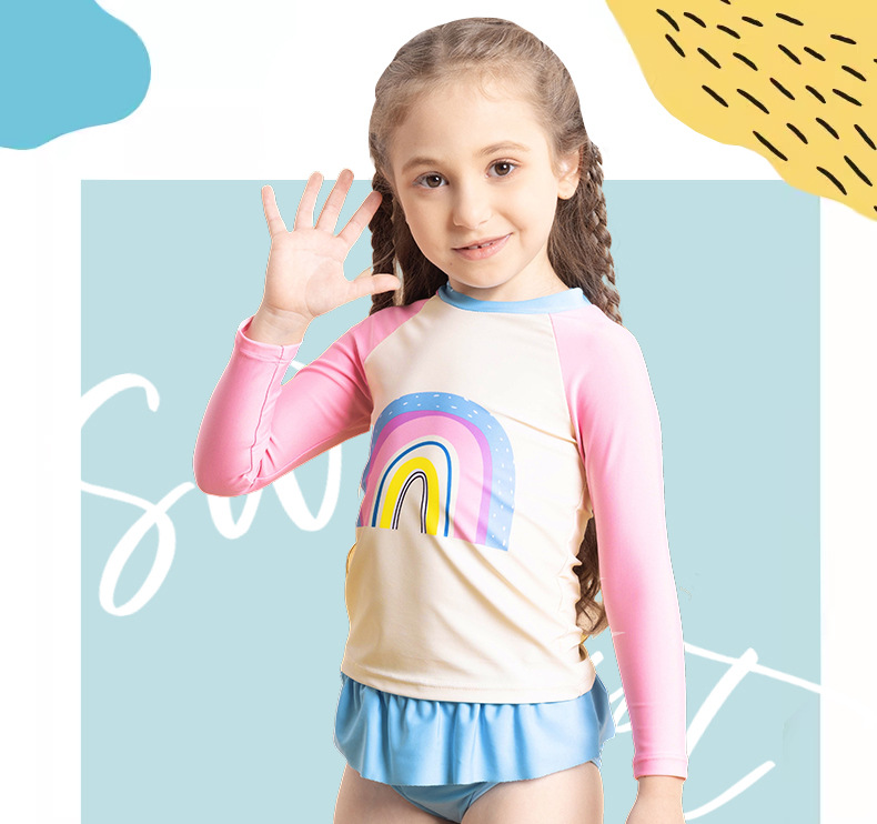 어린이 수영복 여아 긴팔 수영복 2025 신상 무지개 패턴 분리형 짧은 치마 자외선 차단 여아 수영복 여름스토어 가기