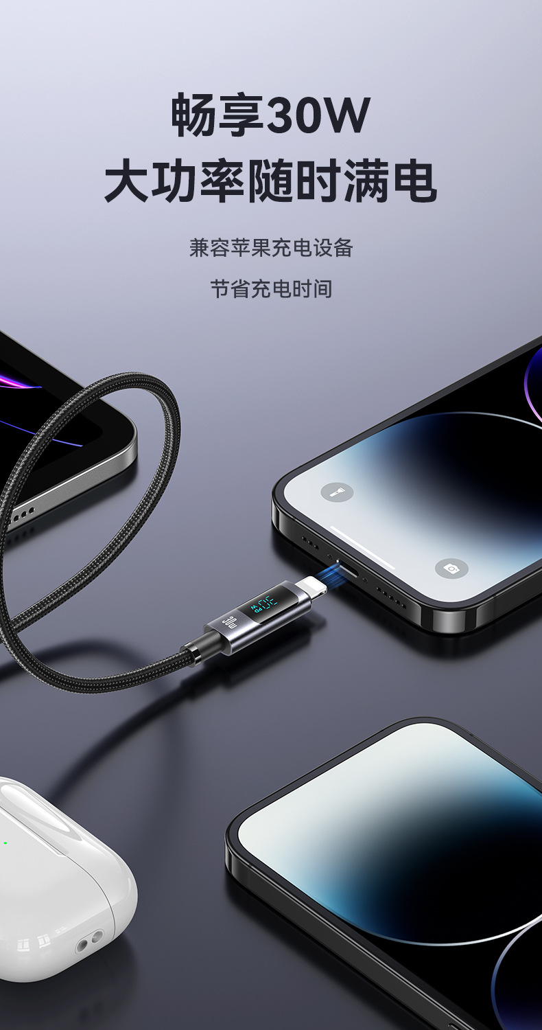 USAMS 화웨이 디지털 디스플레이 휴대 전화 충전 케이블 100Wpd 데이터 케이블 30W 애플 데이터 케이블 TYPEC66W스토어 가기