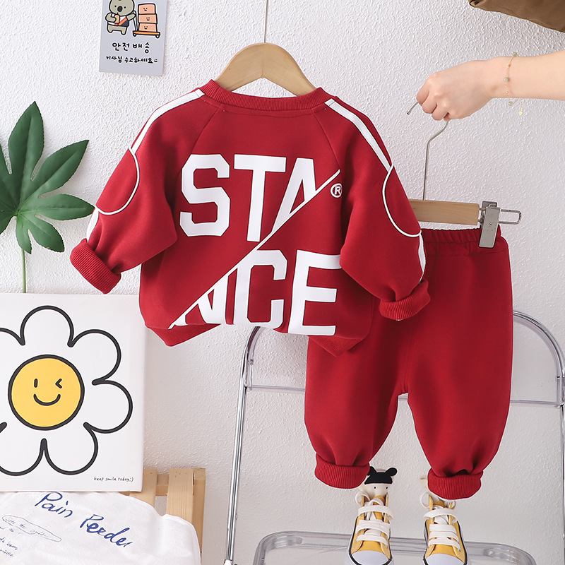 소년 봄과 가을 둥근 목 편지 스웨터 세트 2024 새로운 한국식 아기 소년 봄 긴 소매 스포츠 의류 패션스토어 가기