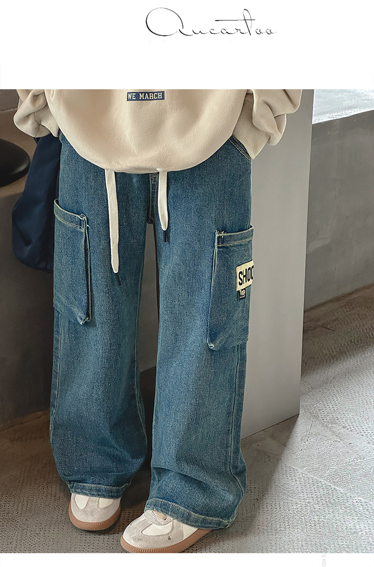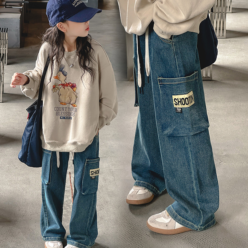 소녀 데님 바지 봄 새로운 귀여운 소녀의 느슨한 캐주얼 청바지 겉옷 입체 어린이 바지 대외 무역스토어 가기