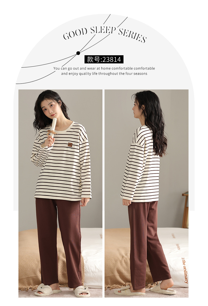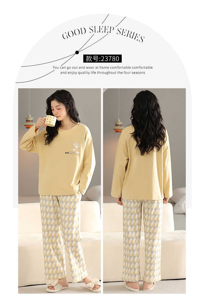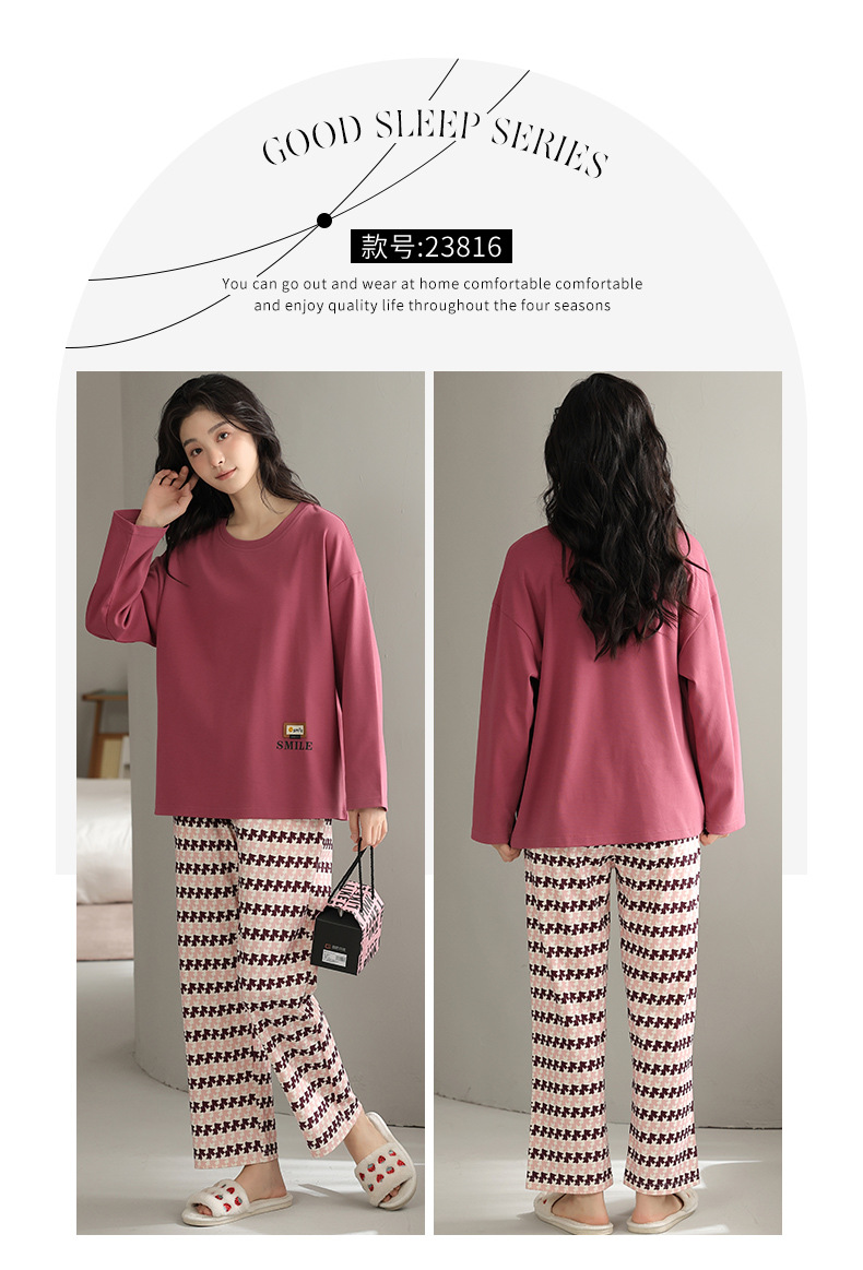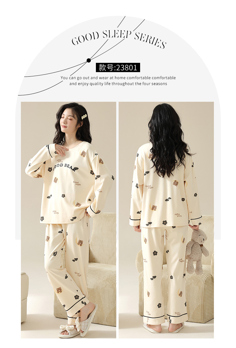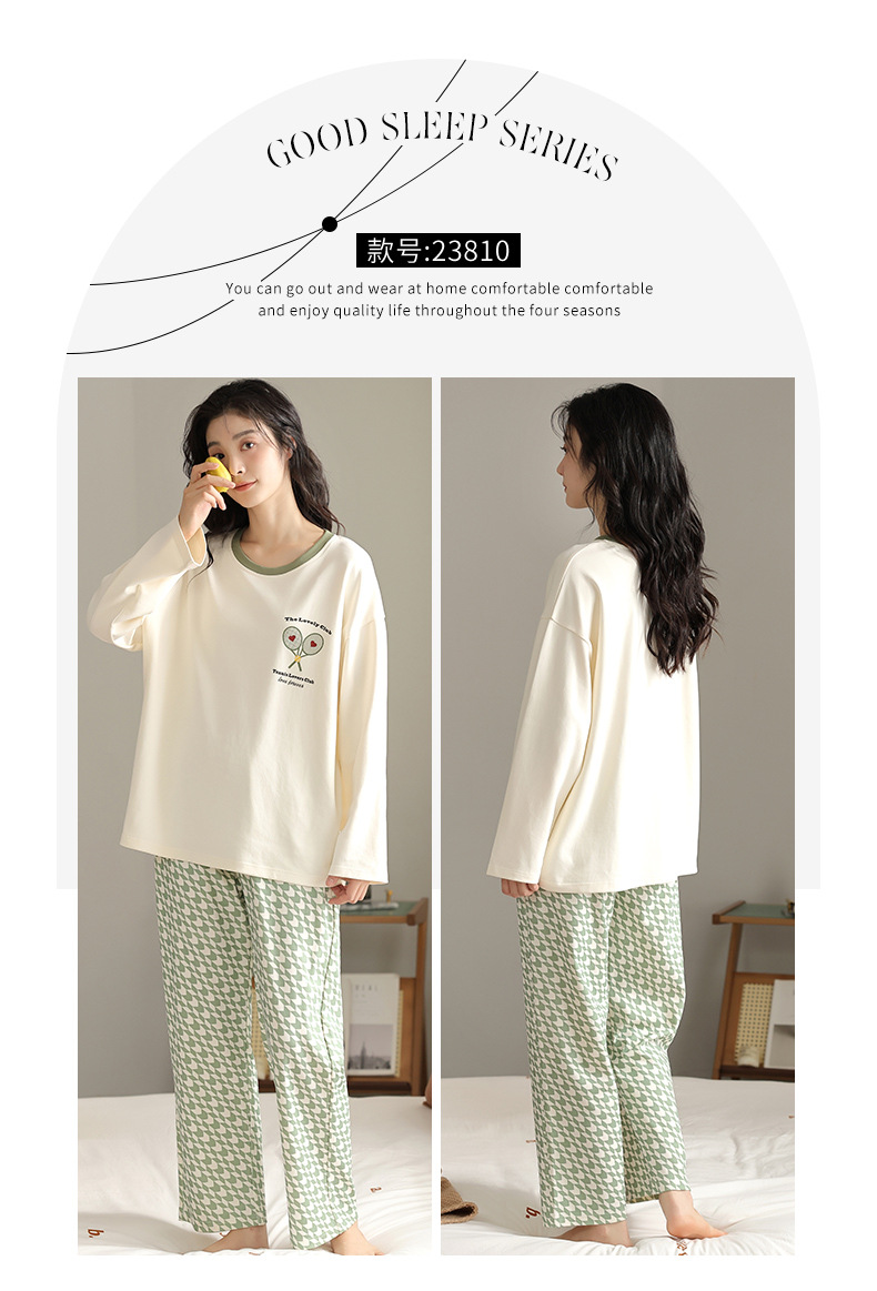 봄 새 잠옷 여성용 빗질 코튼 긴팔 바지 간단한 패션 캐주얼 달콤한 겉옷 홈웨어 세트스토어 가기