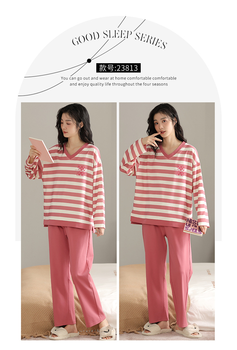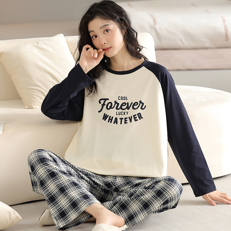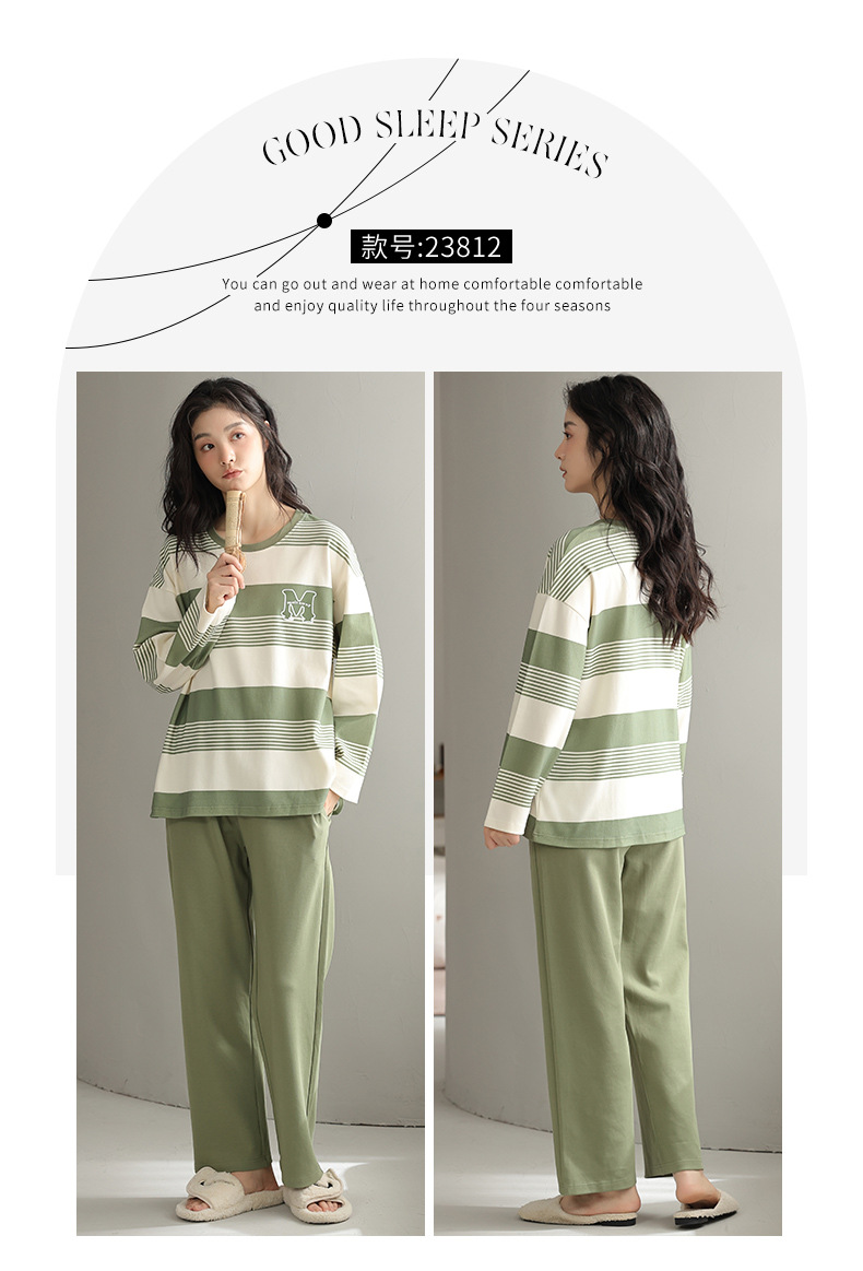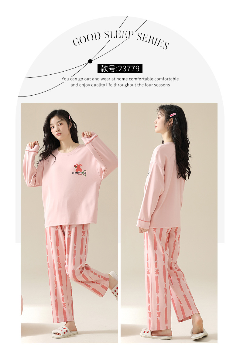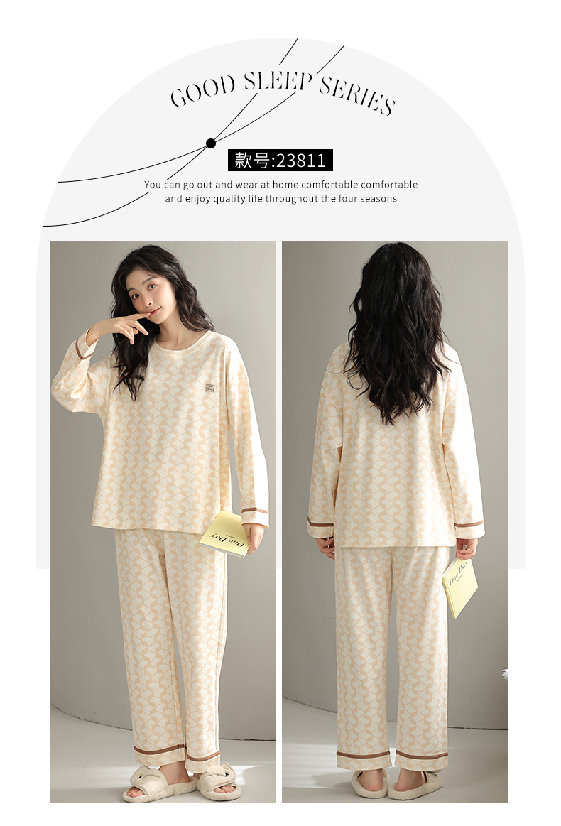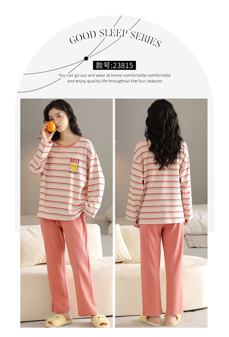 봄 새 잠옷 여성용 빗질 코튼 긴팔 바지 간단한 패션 캐주얼 달콤한 겉옷 홈웨어 세트스토어 가기