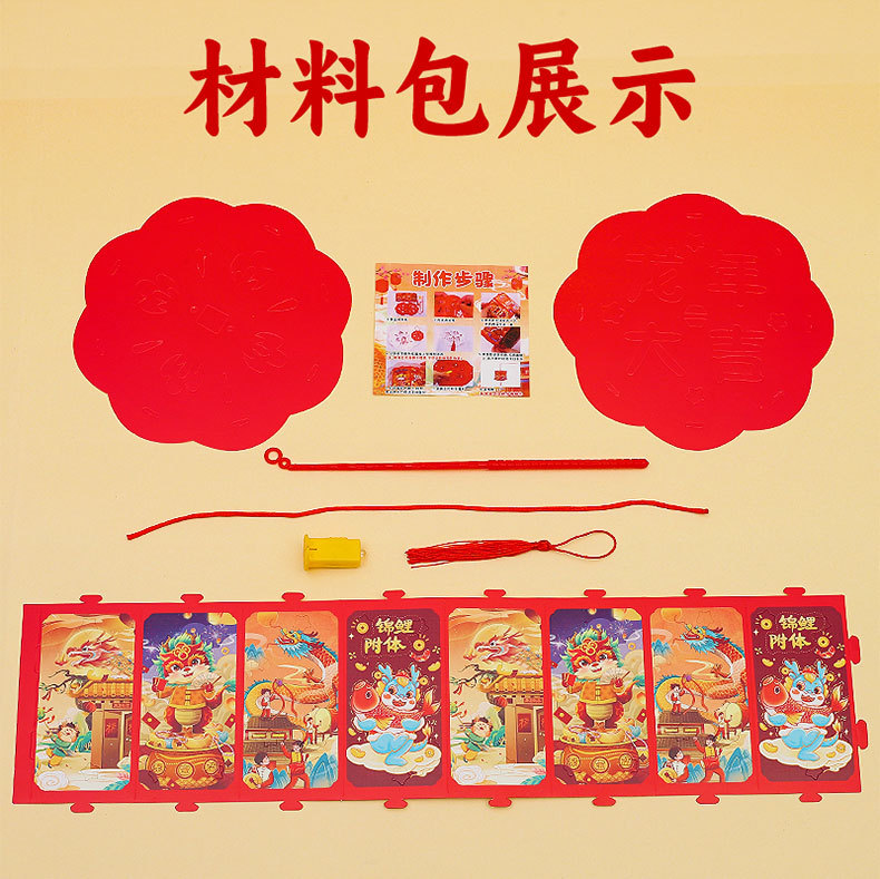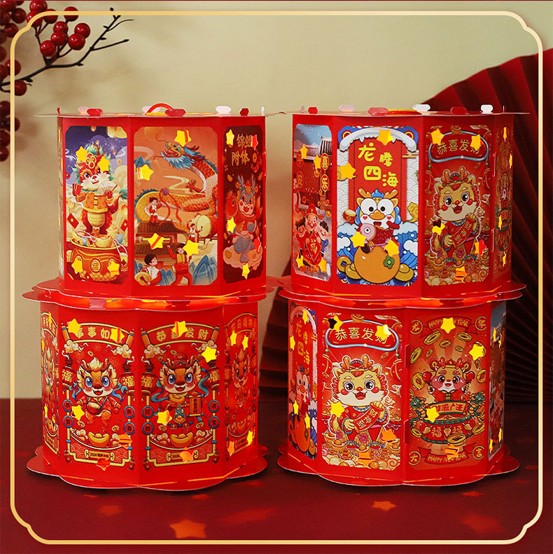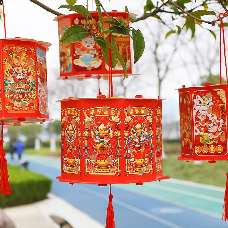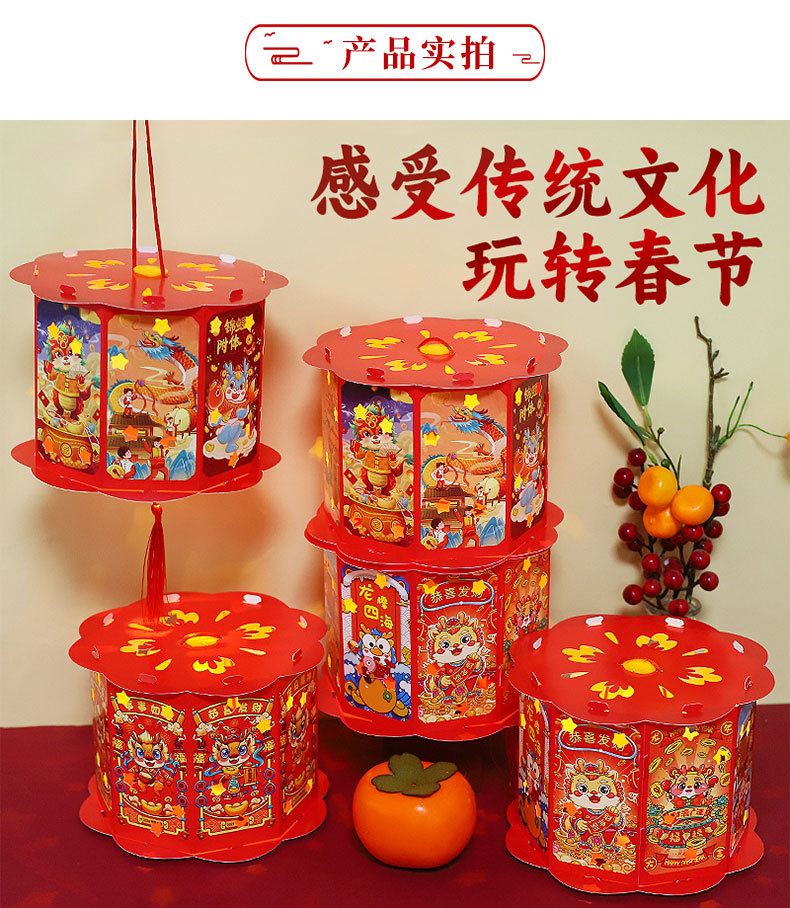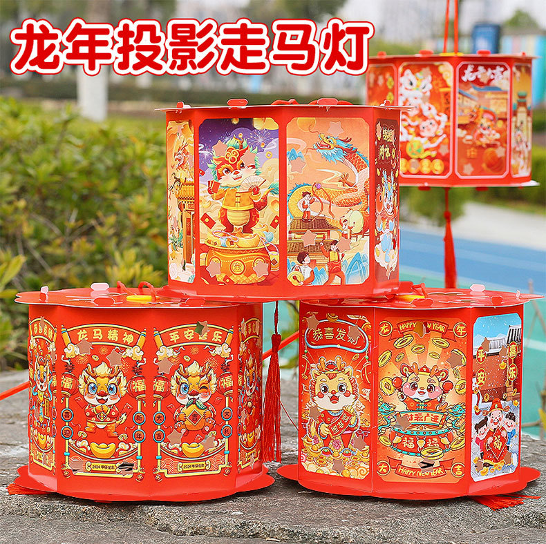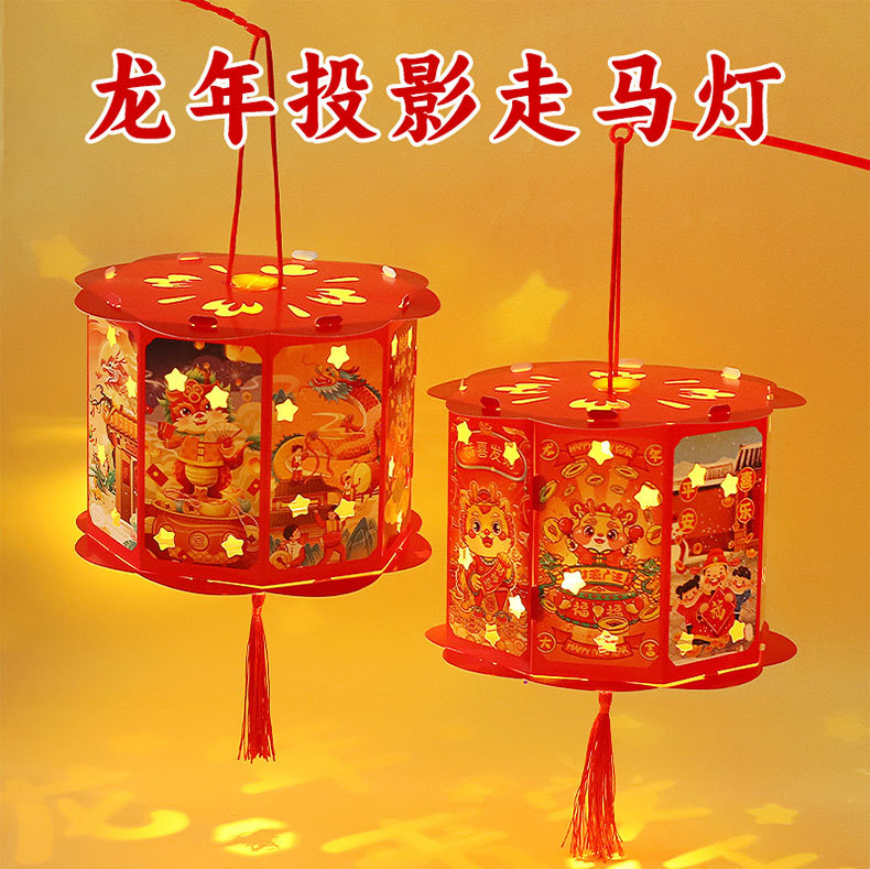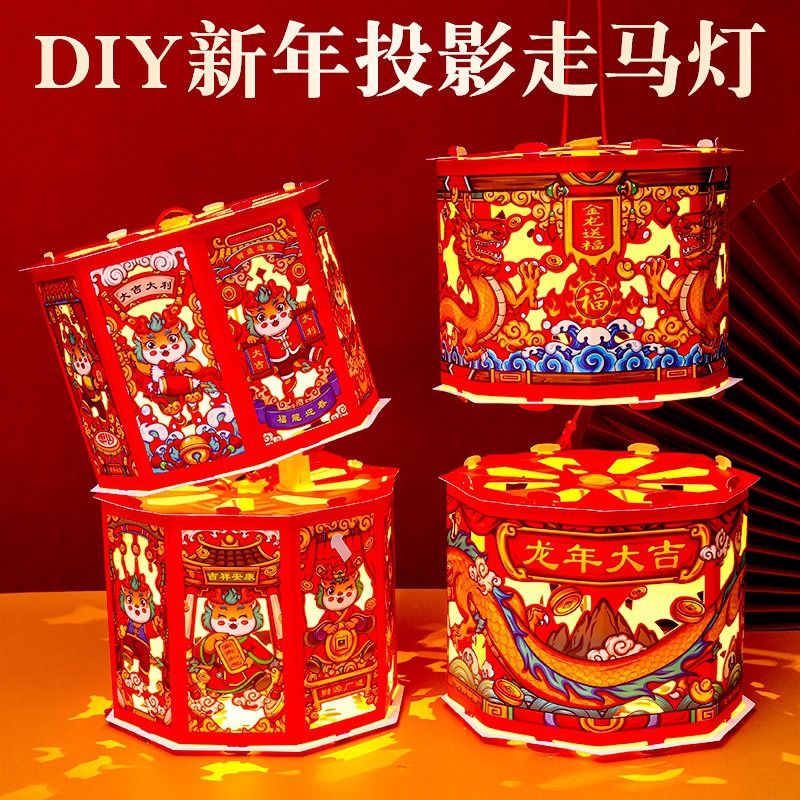 새해 걷기 등불 어린이 DIY 수제 소재 패키지 봄 축제 등불 드래곤 년 프로젝션 발광 회전 랜턴