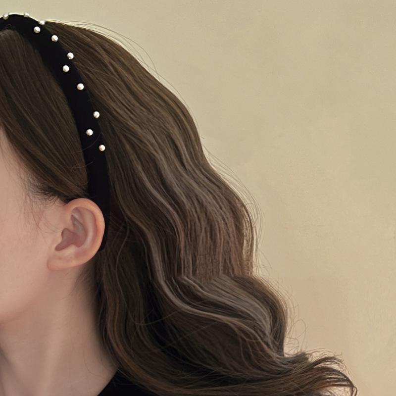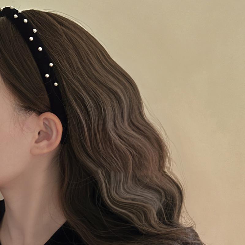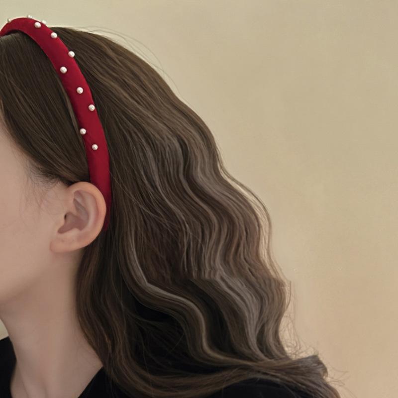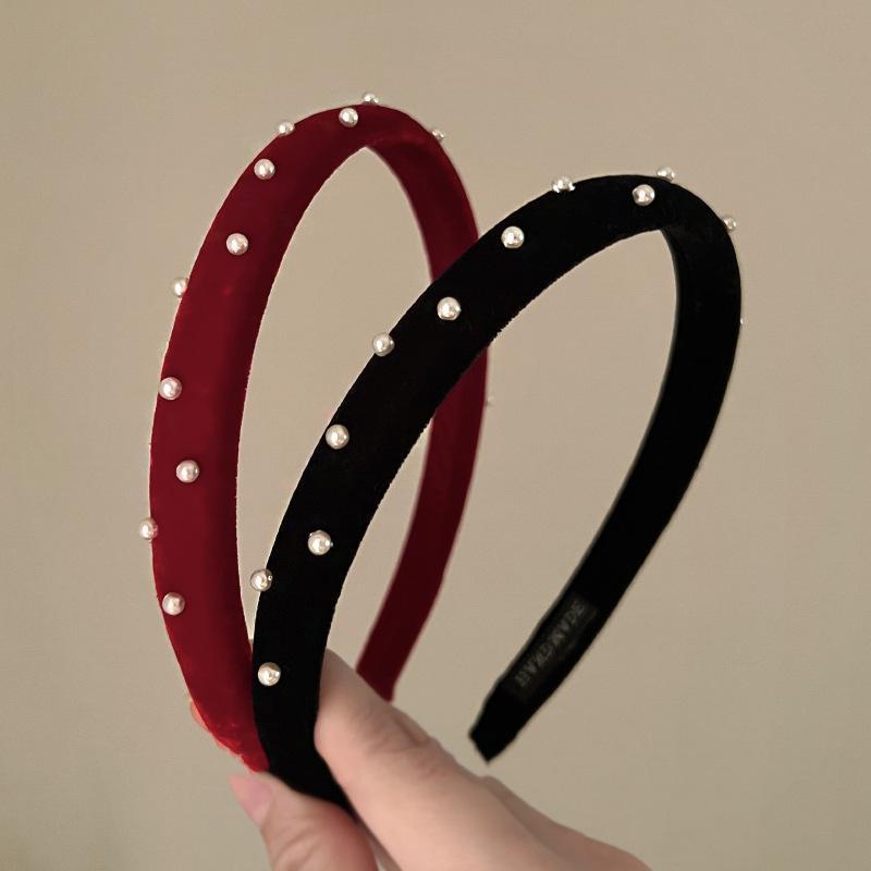 프랑스 복고풍 달콤한 버건디 진주 벨벳 머리띠 소녀 다용도 간단한 얇은 가장자리 머리띠 머리 장식