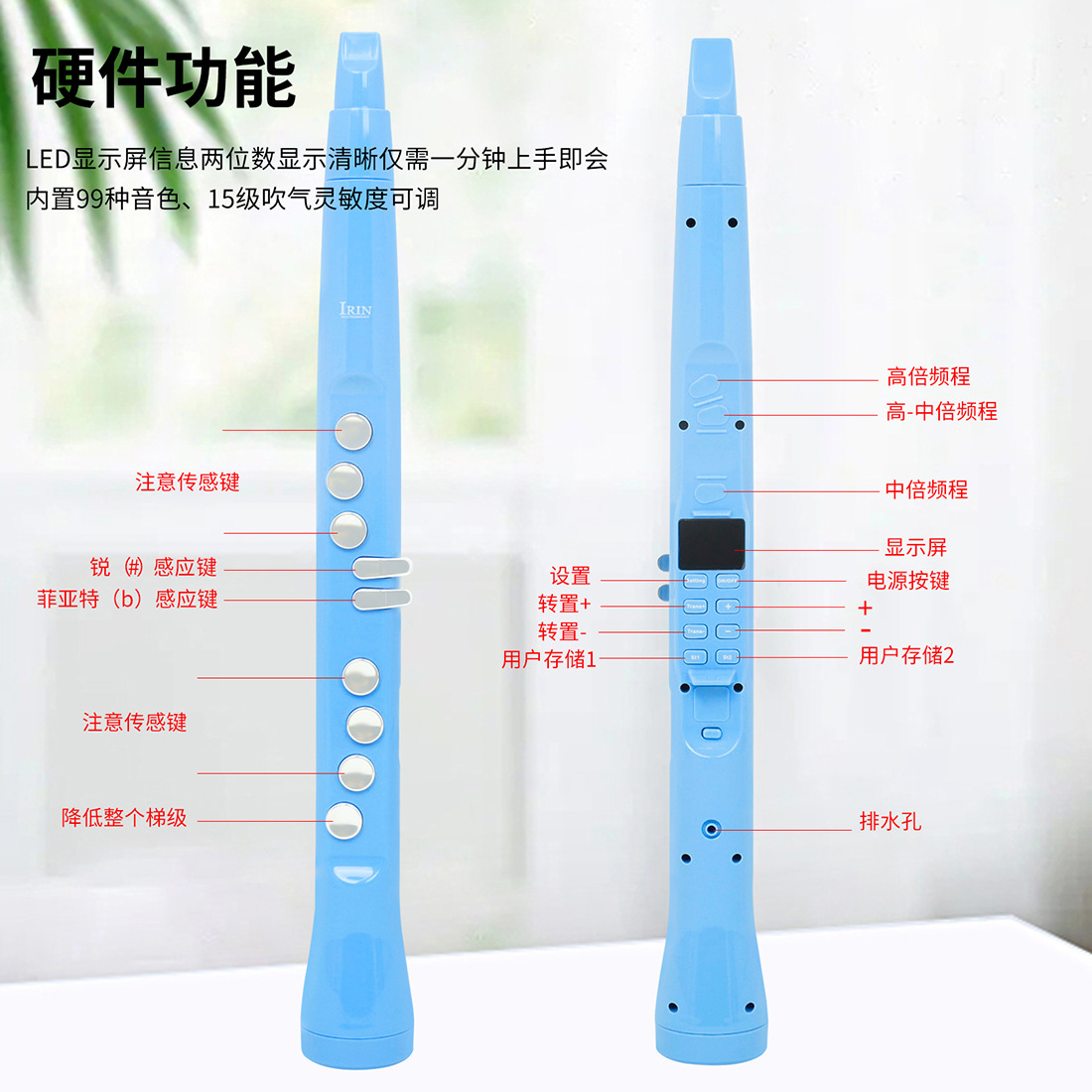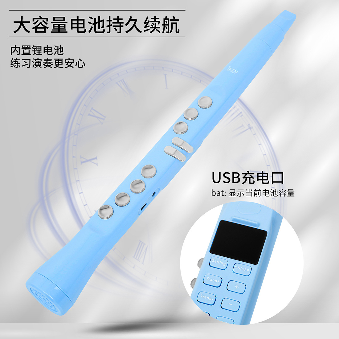 产品名称:IRIN爱润S58电吹管4八度蓝牙连接移调LCD高清显示双指法吹管