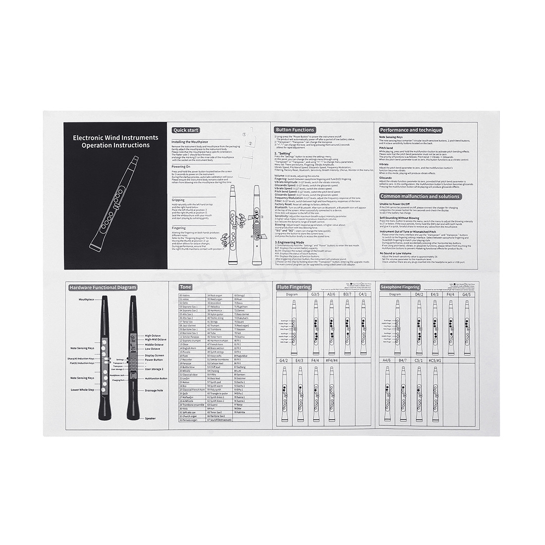 用途卖点:小巧时尚的外观设计可拆卸硅胶吹嘴内置99种音色/双音色功能两种指法(电萨/笛子)15级吹气灵敏度可调移调功能:支持外接音响或耳机离子可充电锂电池供电, 通用蓝牙可以无线连接