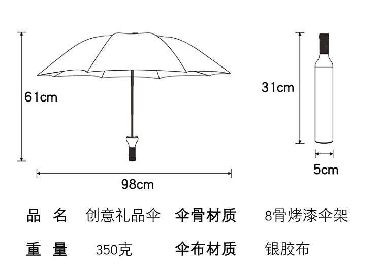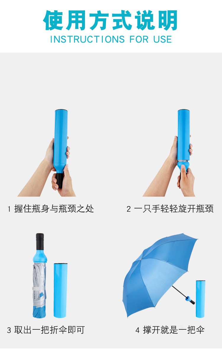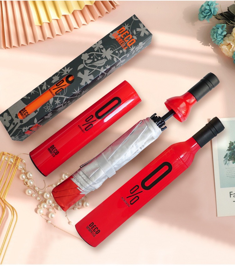 공장 공급 새로운 창조적 인 선물 우산 휴대용 창조적 인 와인 병 우산 세 접는 우산 맑은 우산 재고 도매
