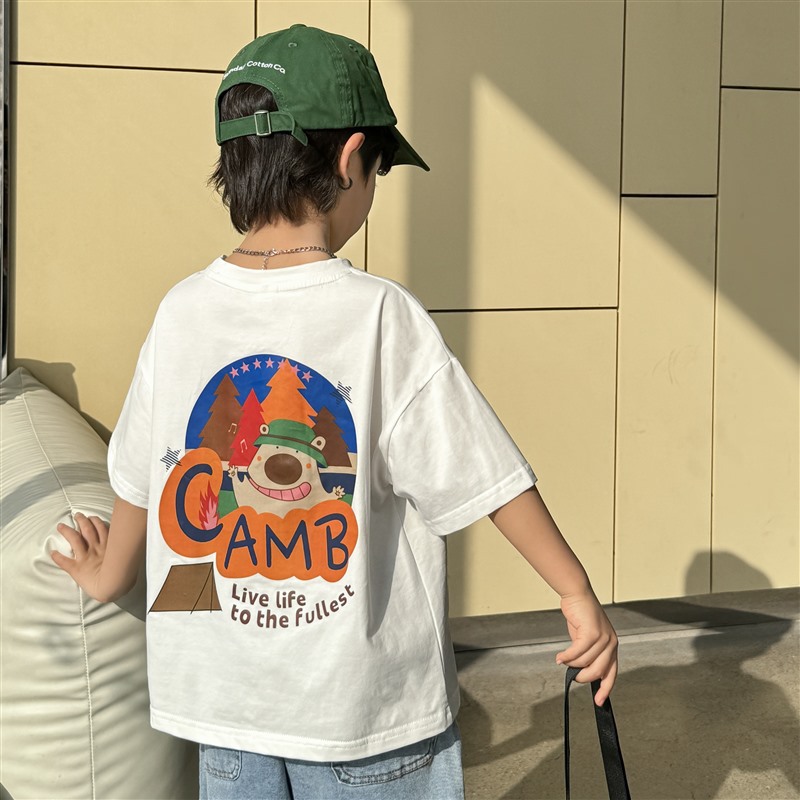 하이마의 2025 년 여름 새 소년과 소녀 만화 인쇄면 반팔 티셔츠 한국식 여름 옷 트렌디스토어 가기
