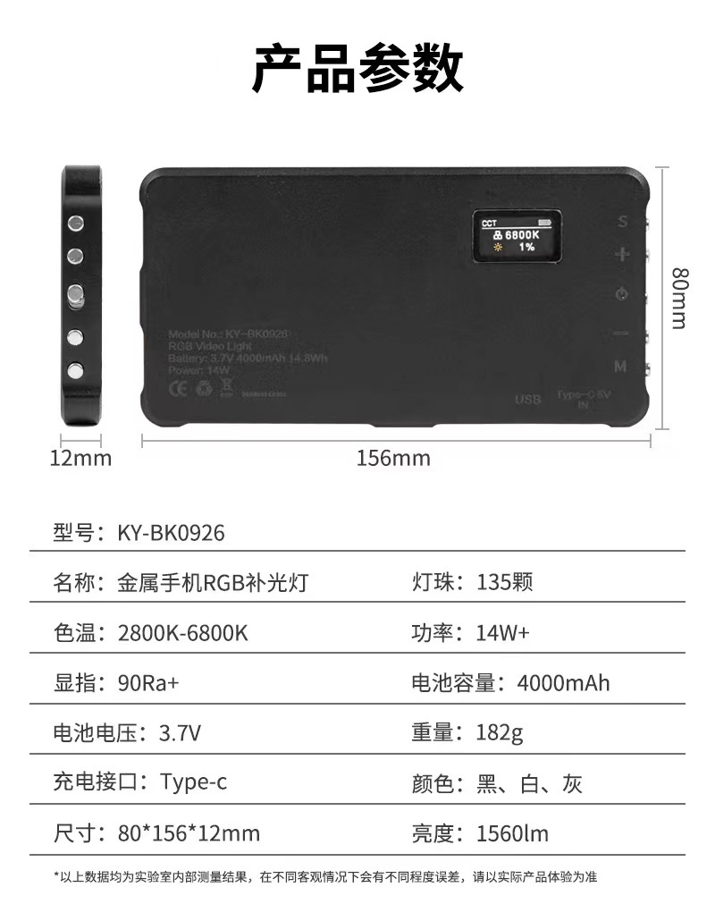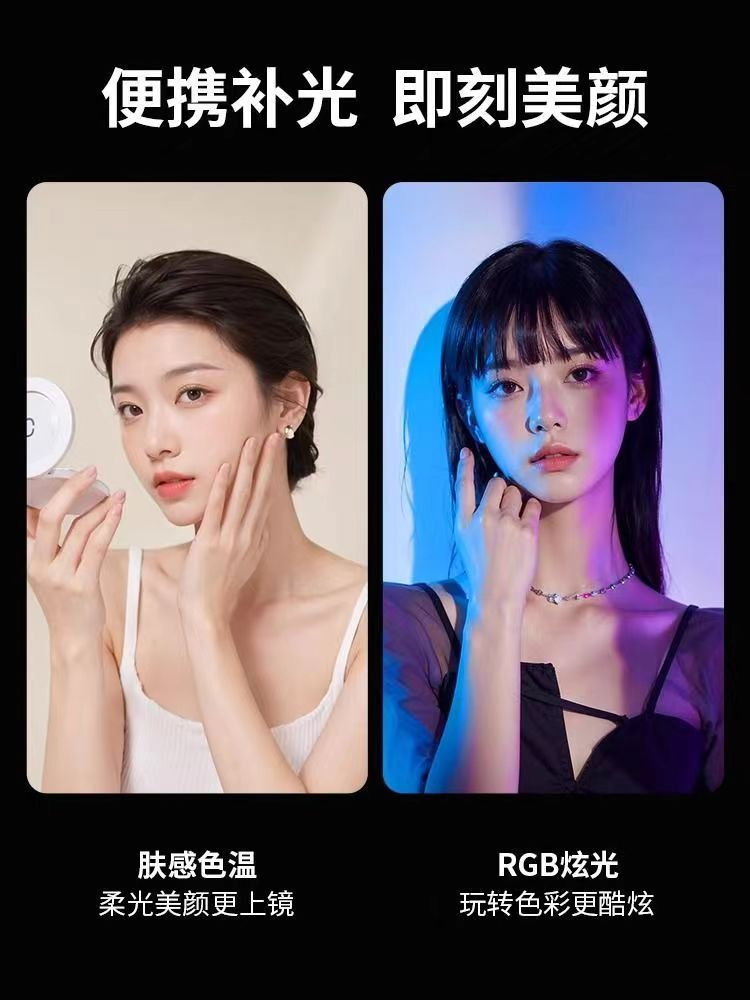 RGB 보조광 휴대폰 카메라 라이브 비디오 셀카 야외 촬영 LED 조명 포켓 라이트 조광 가능 휴대용스토어 가기