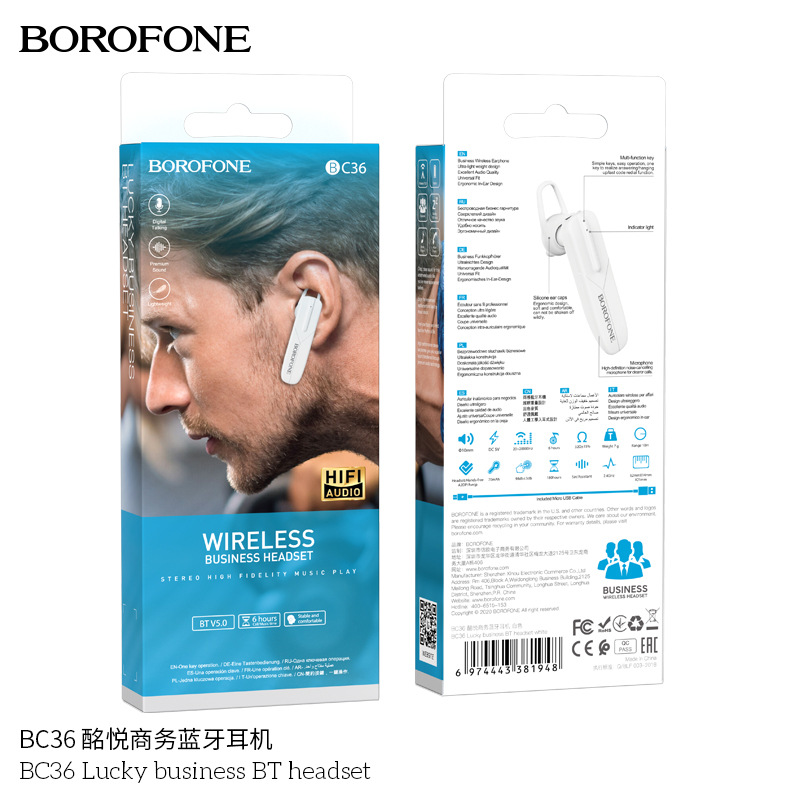 BOROFONE 신제품 BC36 블루투스 이어폰 비즈니스용 단일 이어폰 무선 이어폰 인이어형 단일 통화용