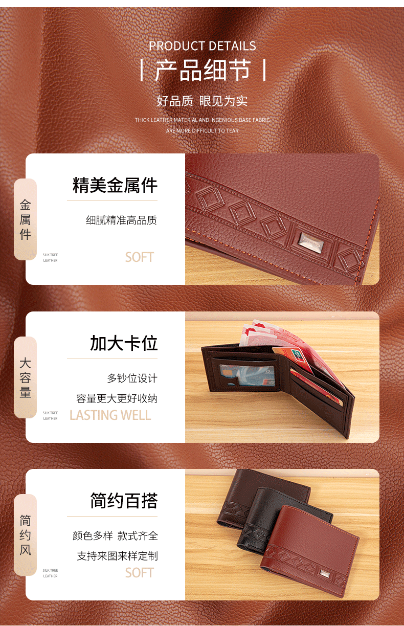 새로운 남성 지갑 남성용 짧은 지갑 패션 캐주얼 열매 패턴 소프트 지갑 멀티 카드 대용량 소형 지갑