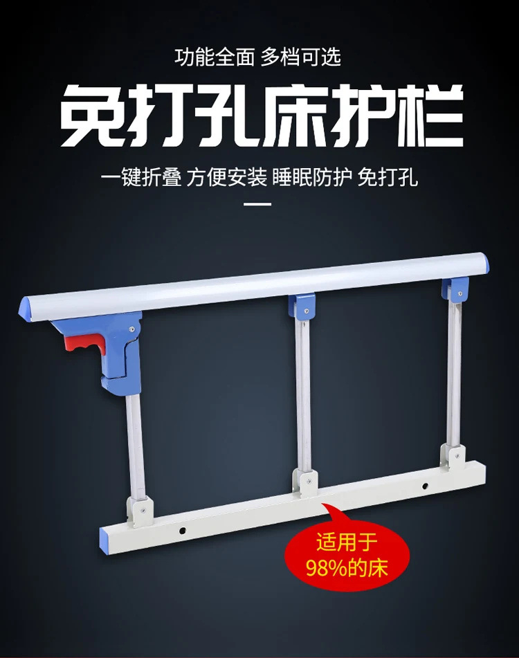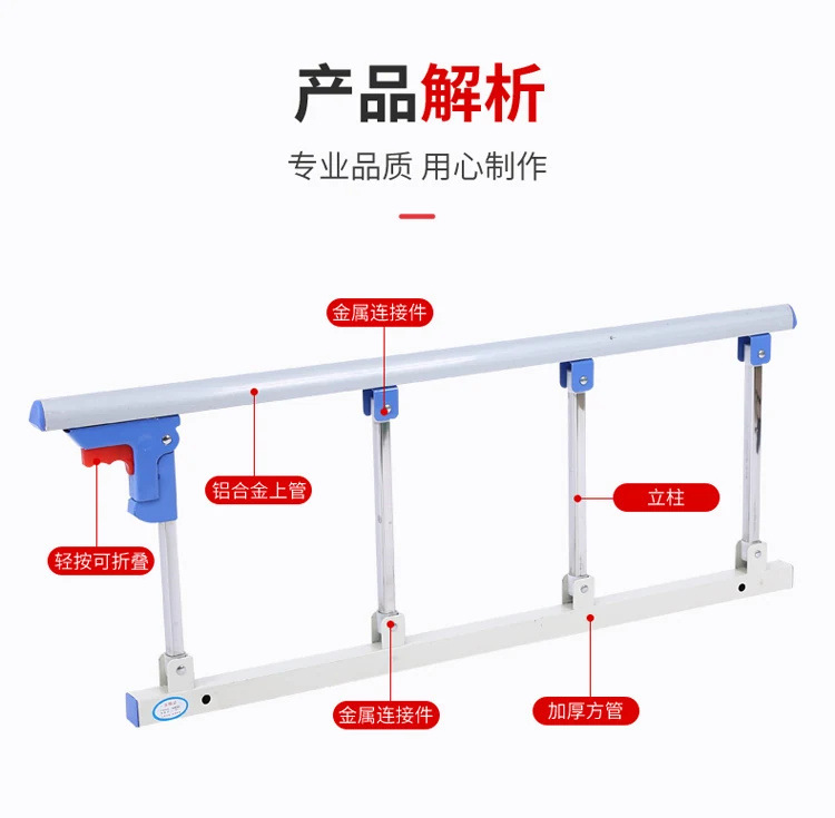 소스 공장 제품 알루미늄 합금 접이식 난간 노인을 위한 침대 옆 난간 안전 낙하 방지 난간 펀치 없음 두꺼운 울타리