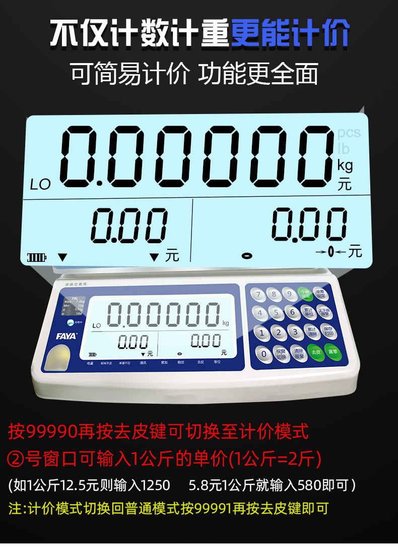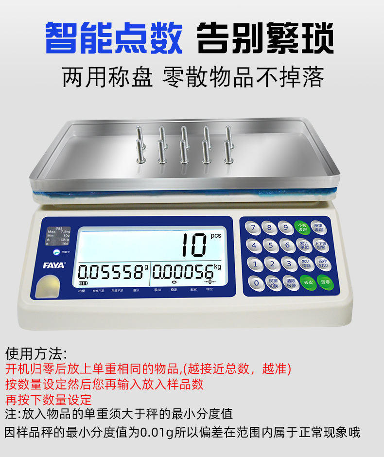 飞亚TSL大屏232高精度30kg电子工业称0.01g计重计数桌秤带打新品
