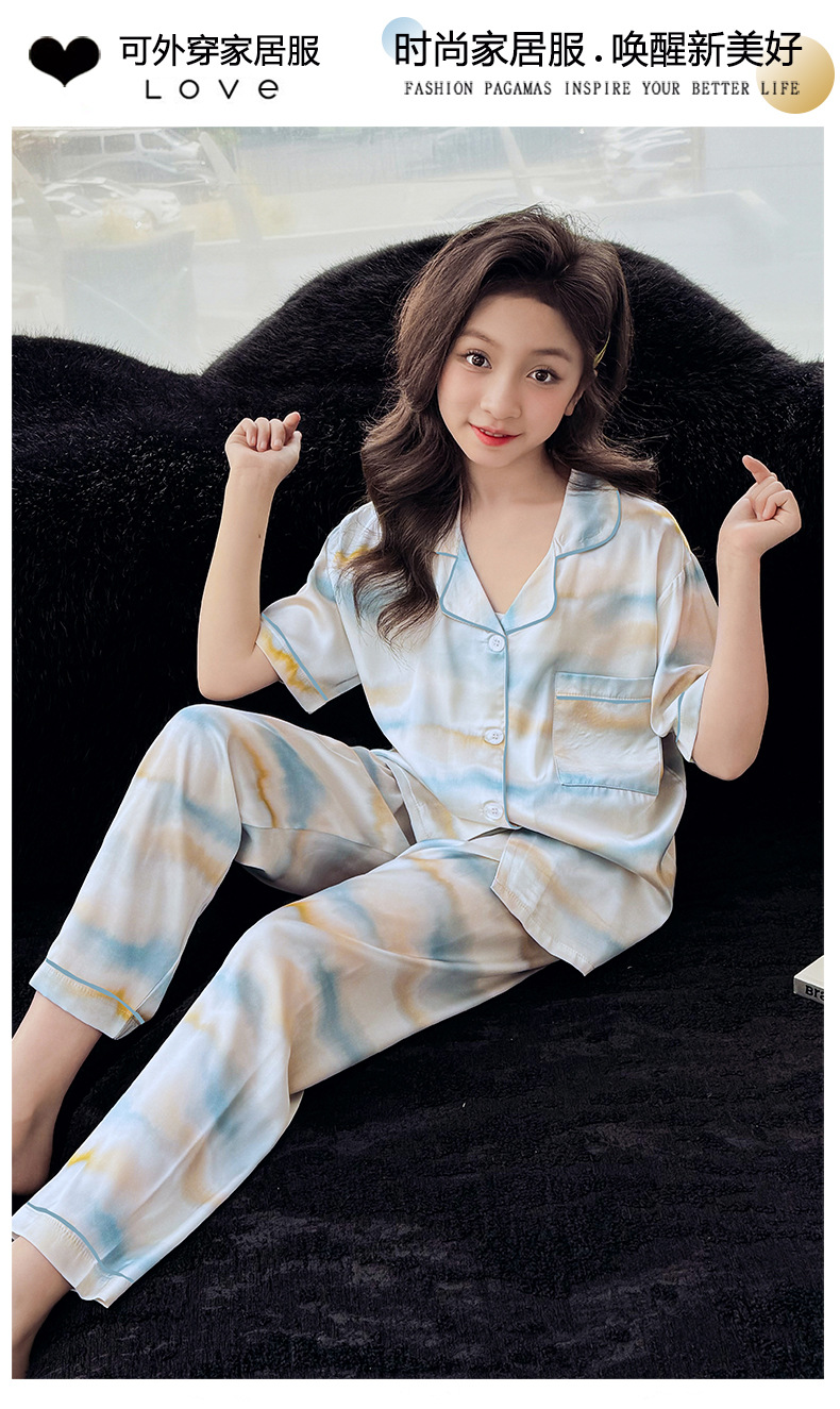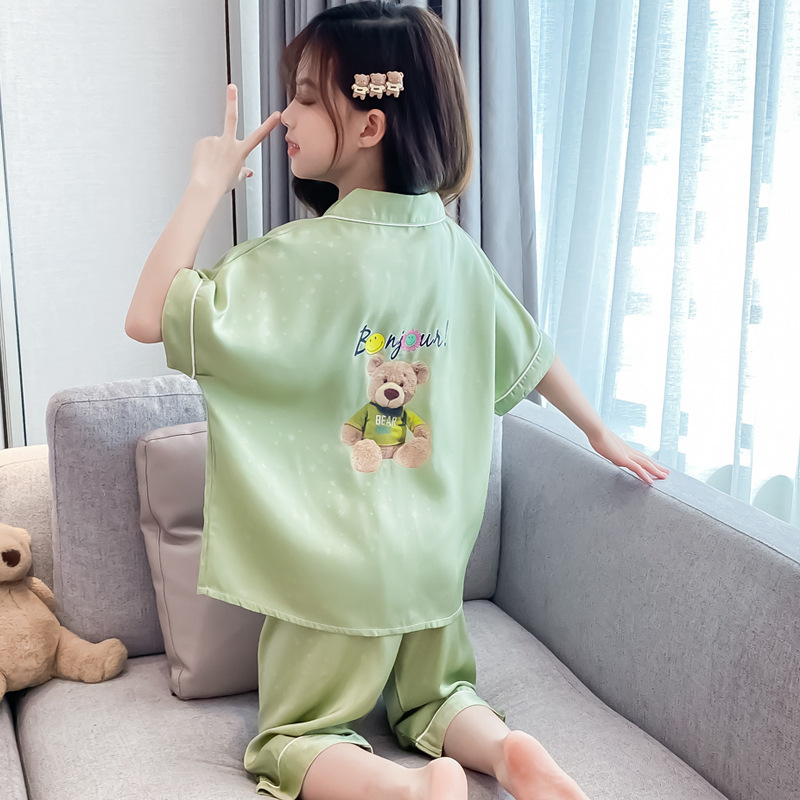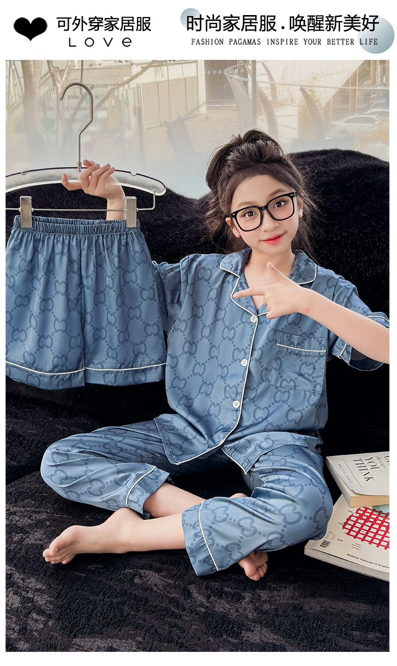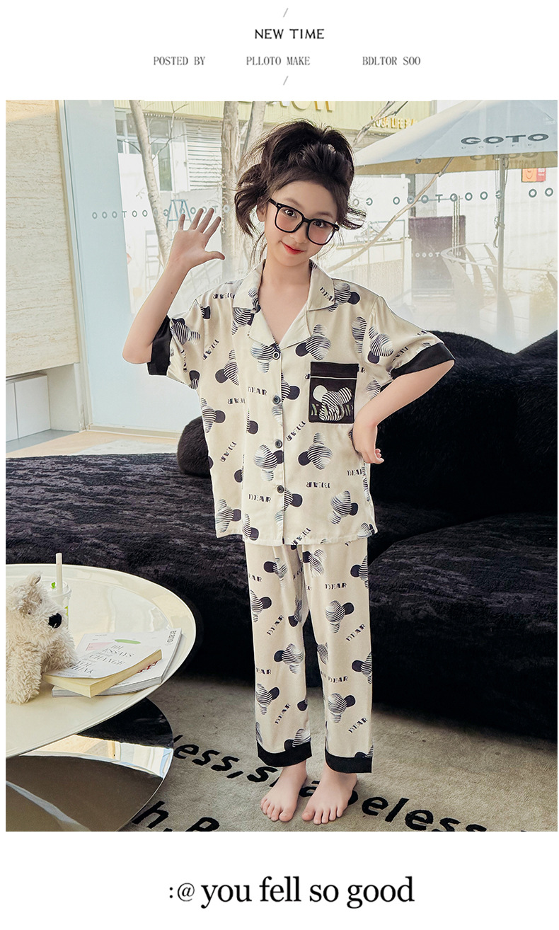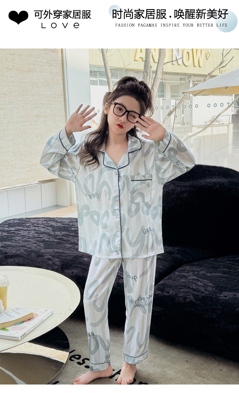 2025년 여름 신상품 중대형 여아 홈웨어 레터 세트 A급 아동용 가디건 아이스 실크 잠옷스토어 가기