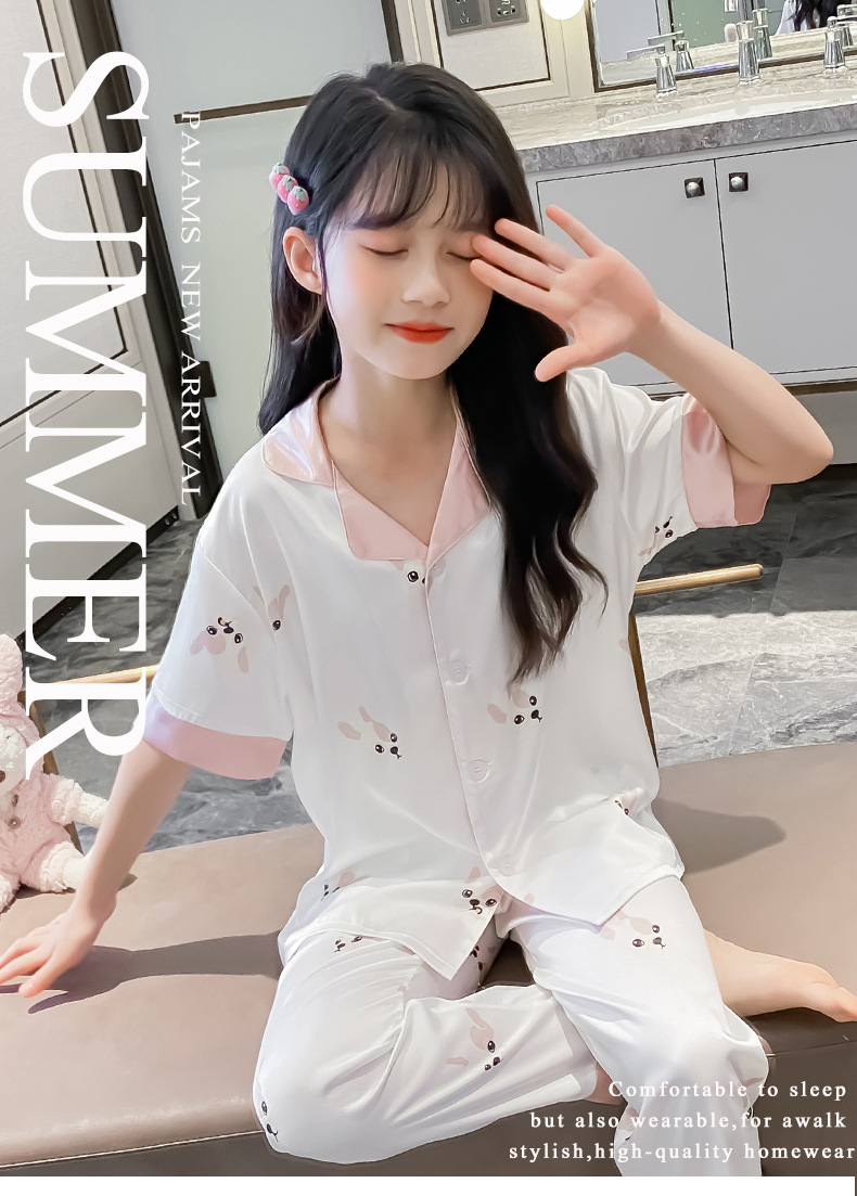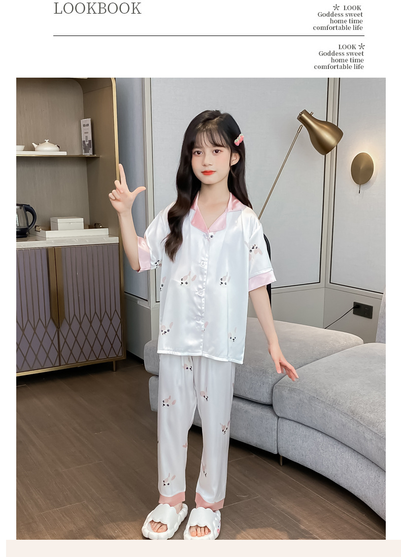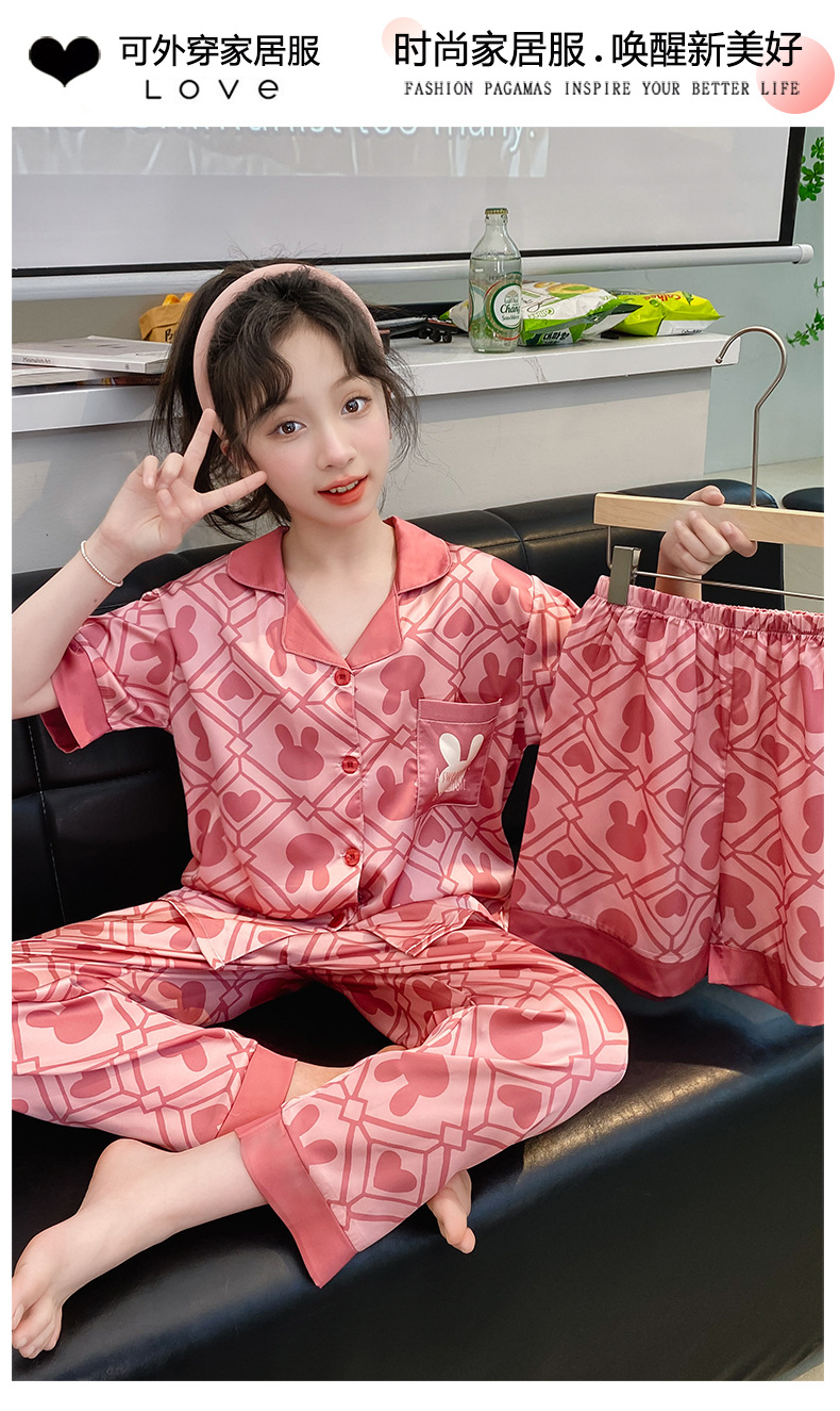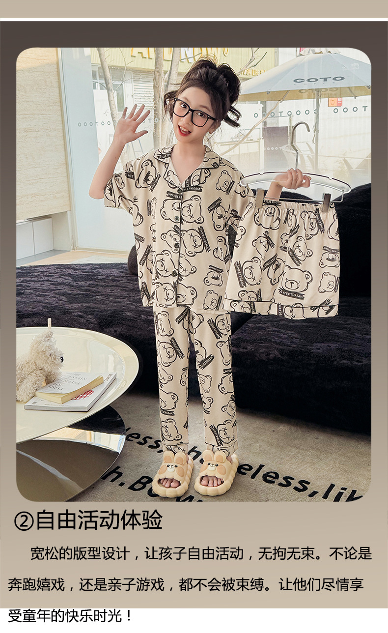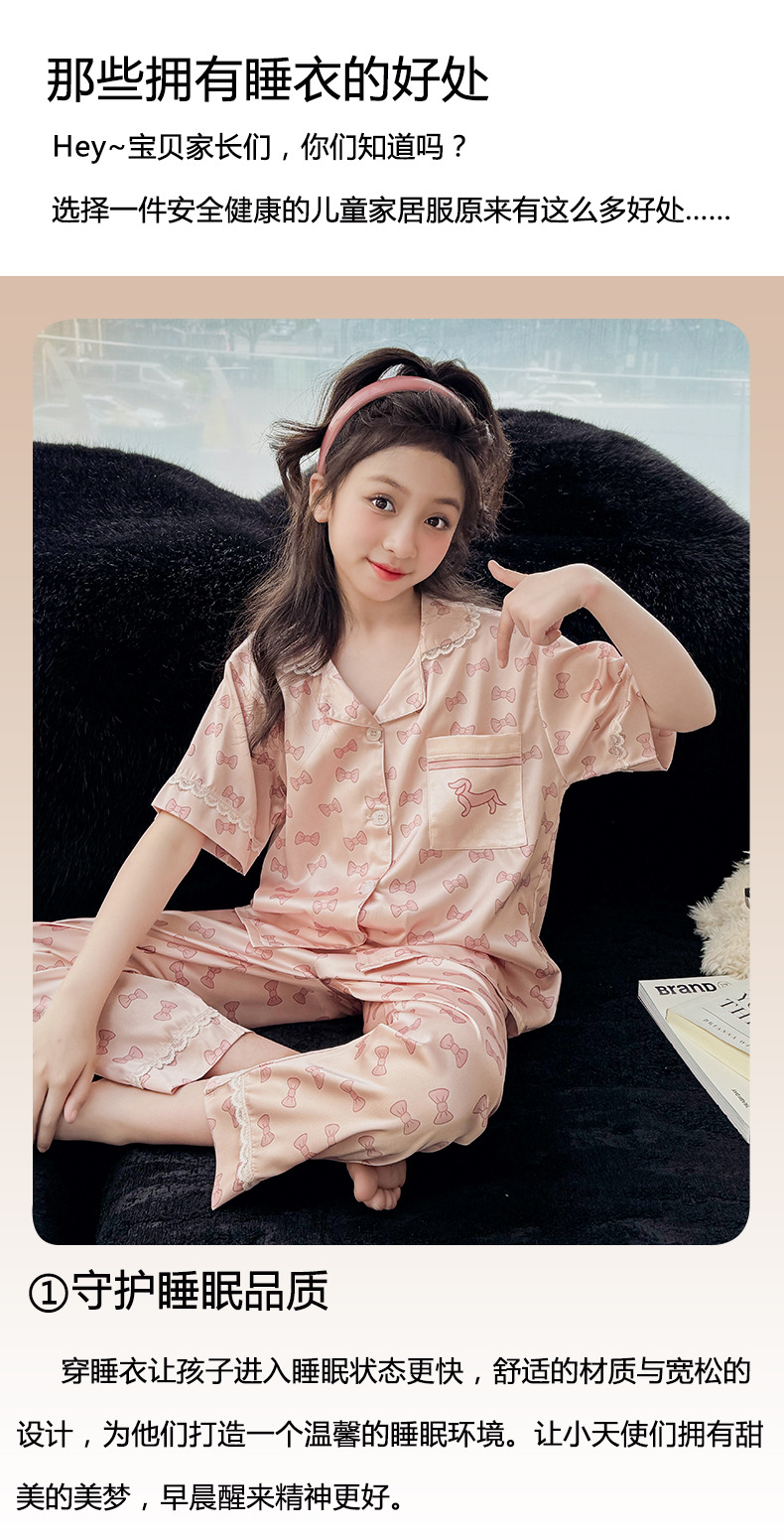 2025년 여름 신상품 중대형 여아 홈웨어 레터 세트 A급 아동용 가디건 아이스 실크 잠옷스토어 가기
