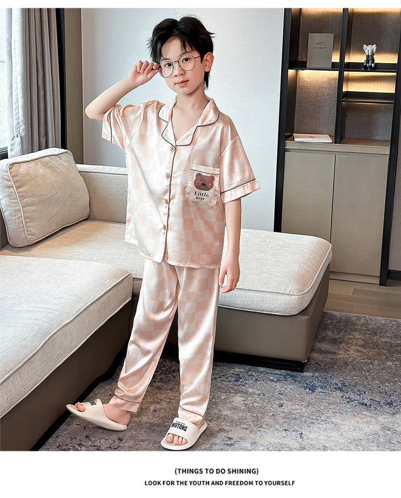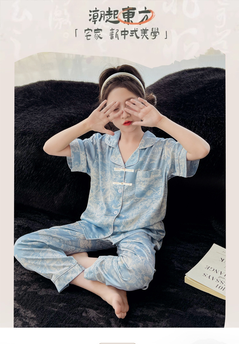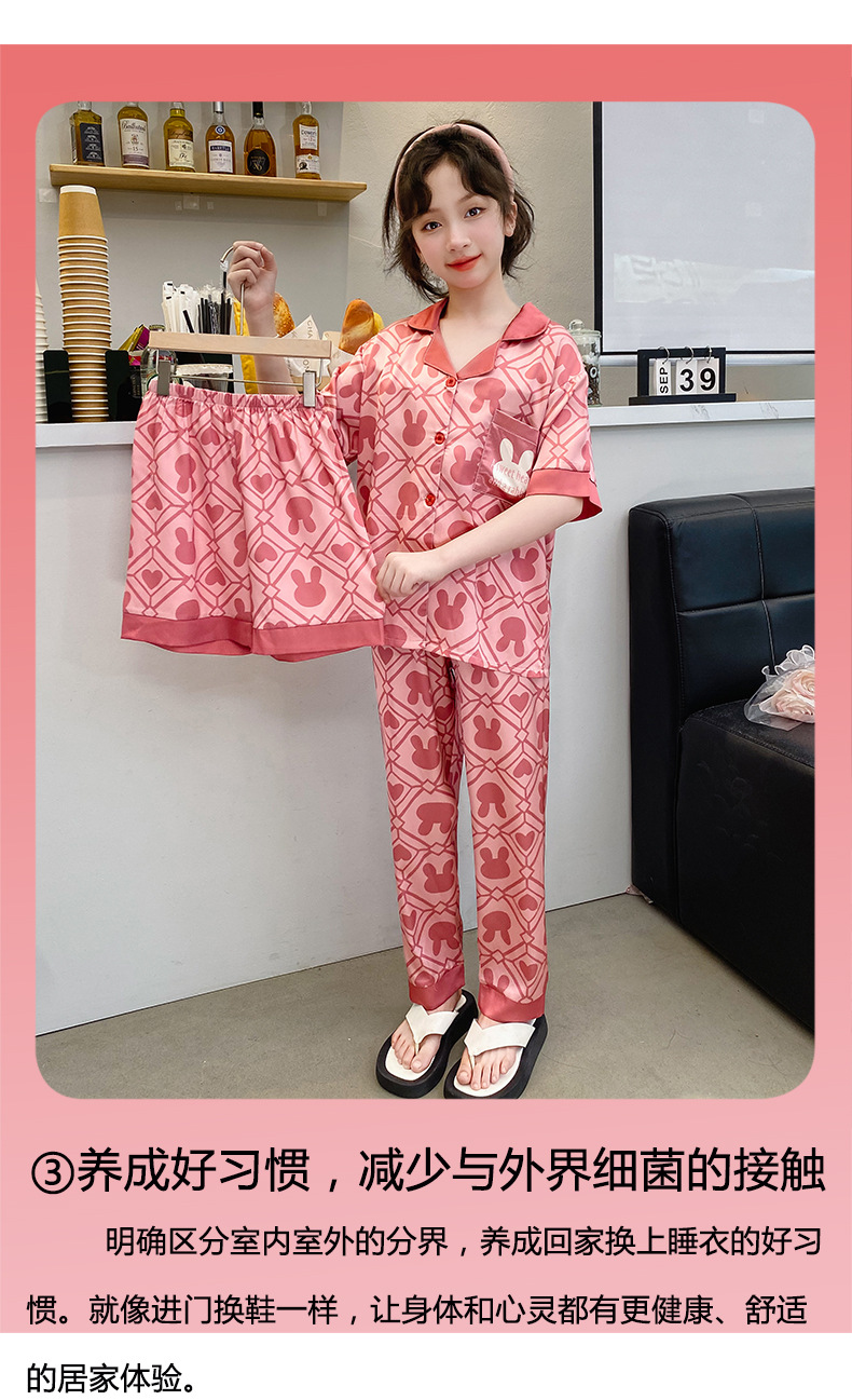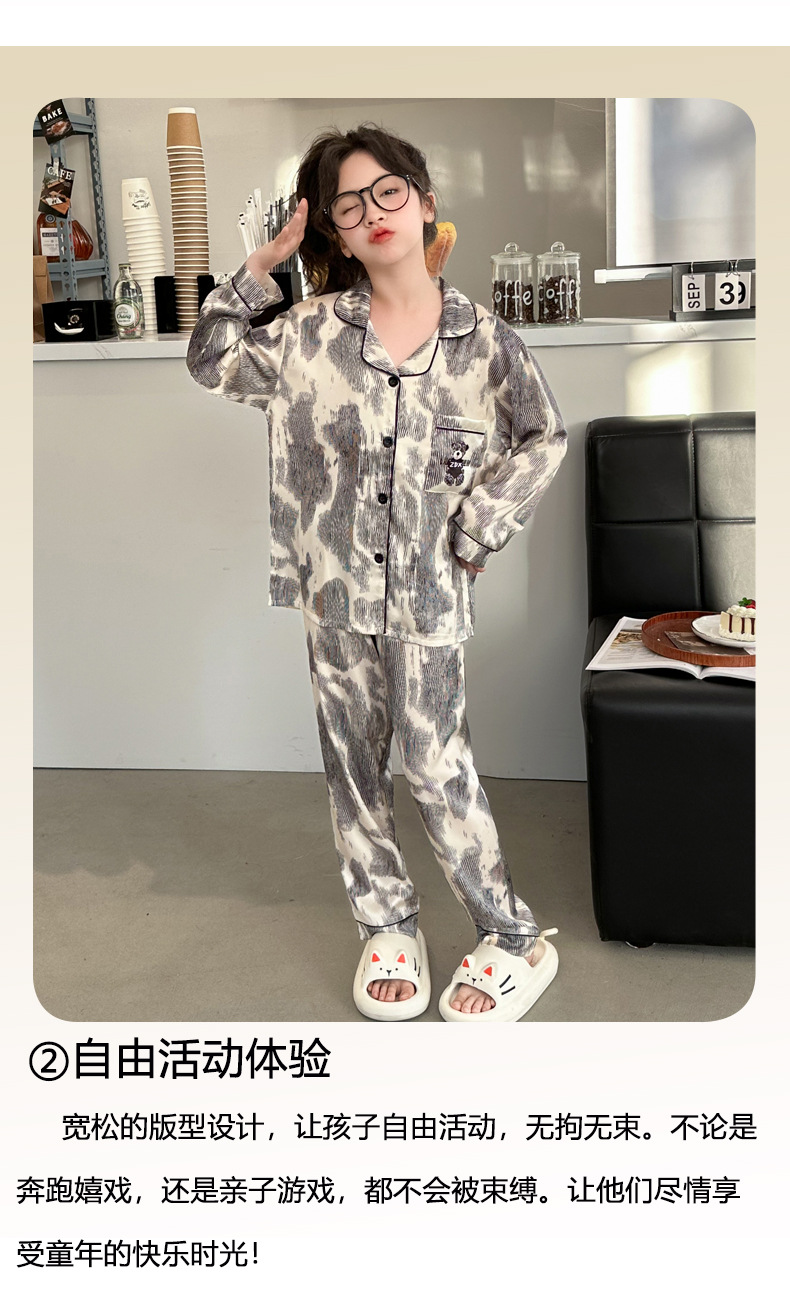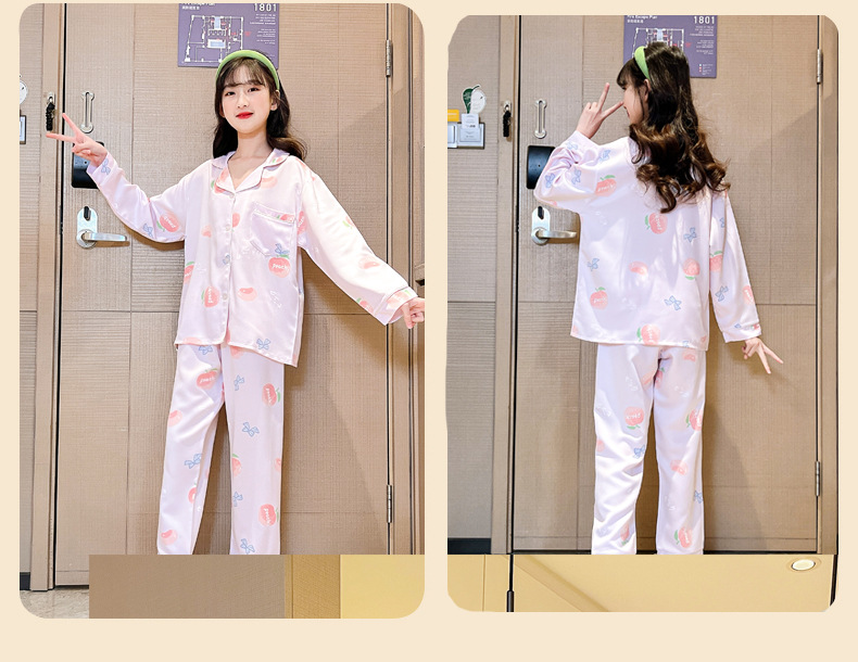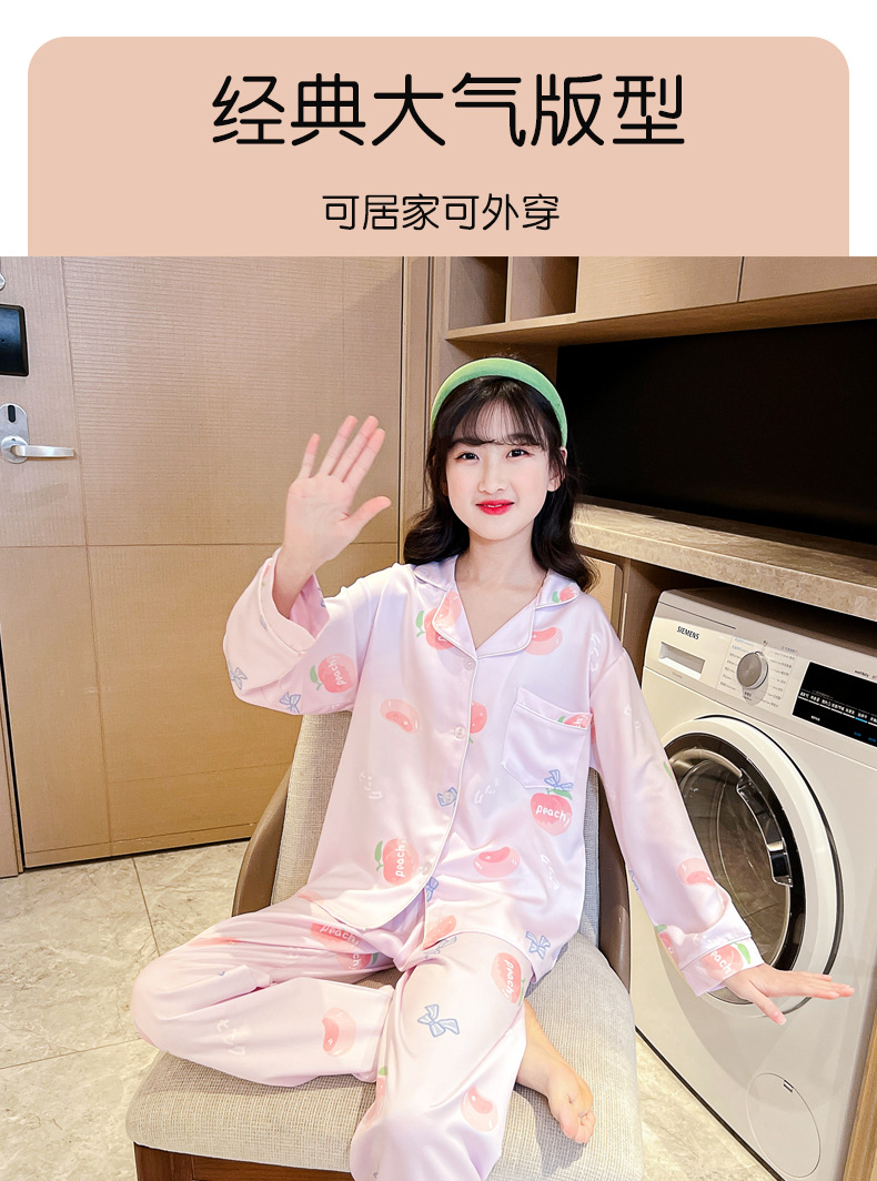 2025년 여름 신상품 중대형 여아 홈웨어 레터 세트 A급 아동용 가디건 아이스 실크 잠옷스토어 가기