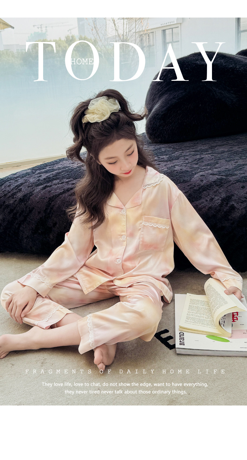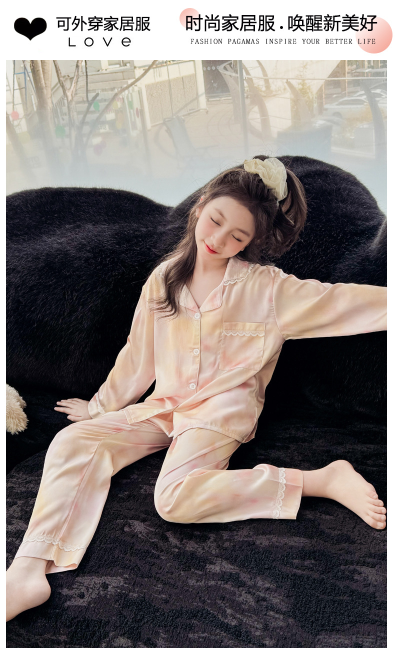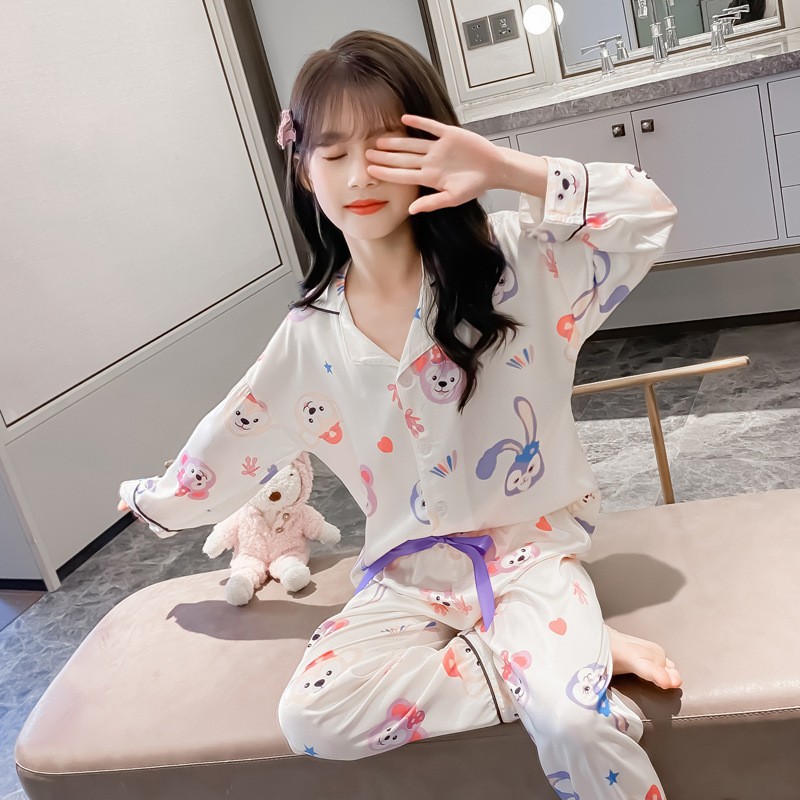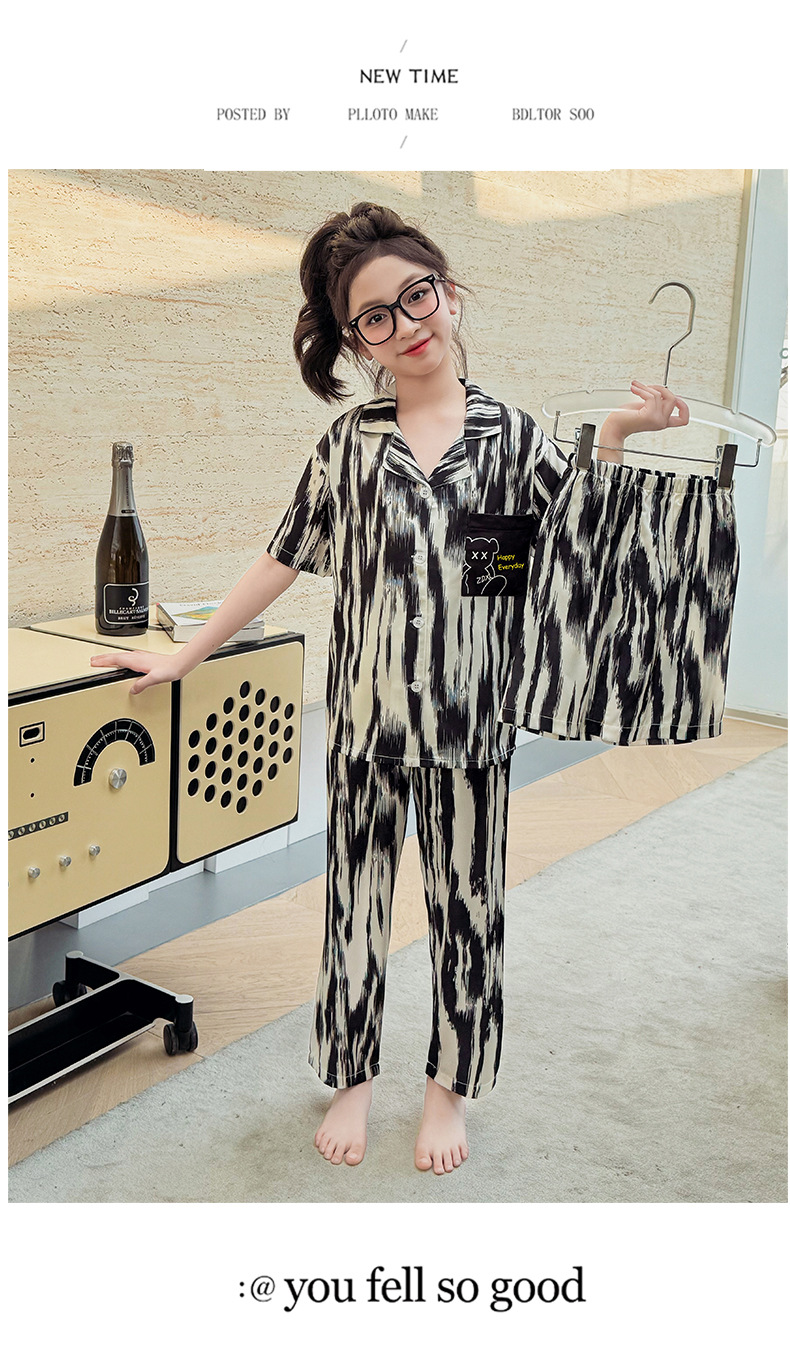 2025년 여름 신상품 중대형 여아 홈웨어 레터 세트 A급 아동용 가디건 아이스 실크 잠옷