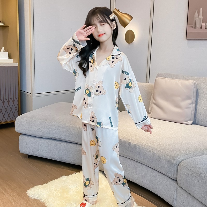 • [아이스실크 투피스 세트] 아이스실크 긴소매 웃는 곰
