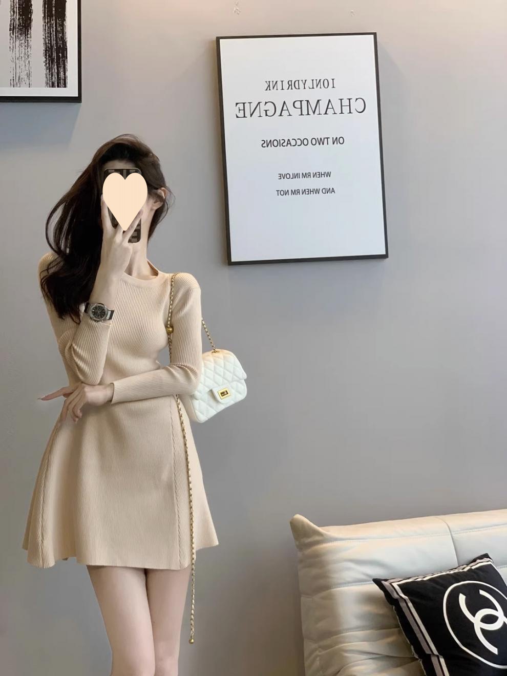니트 원피스 여성의 가을 2023 새로운 프랑스 레트로 샤넬 스타일 디자인 센스 틈새 우아한 웨이스트 스커트스토어 가기