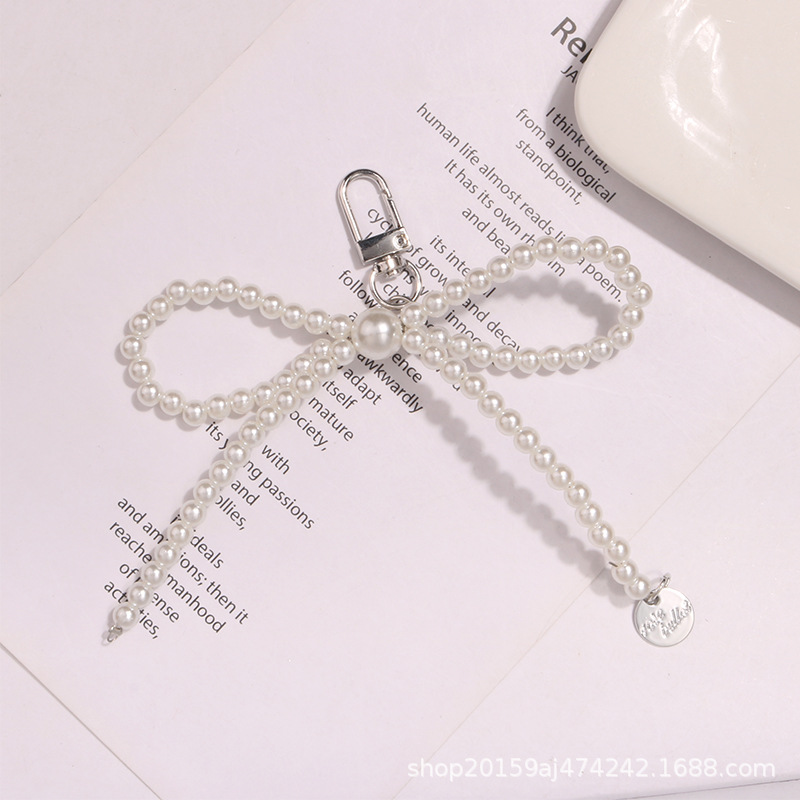 새로운 틈새 스타일 진주 활 키 체인 펜던트 패션 성격 가방 장식 성격 휴대 전화 걸이 체인