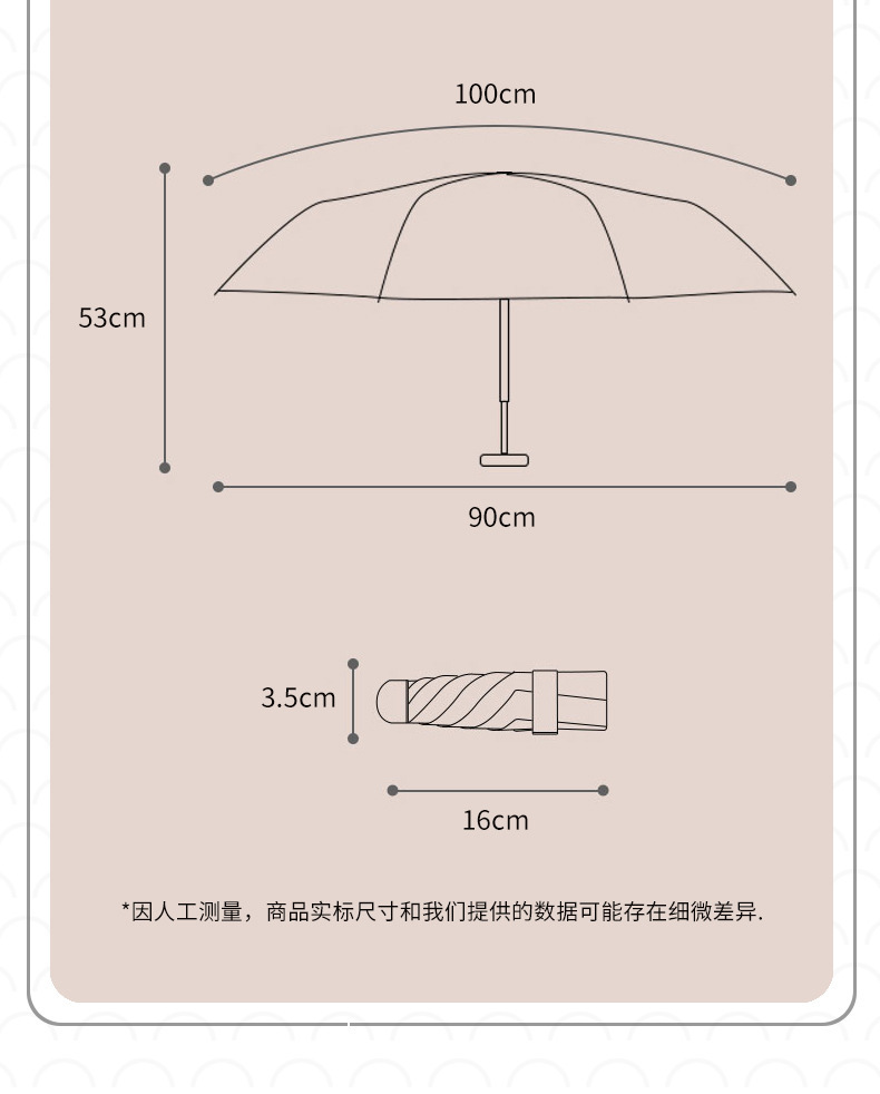 • 평평한 60% 접이식 카드 우산-산호 분말 (우산 상자)