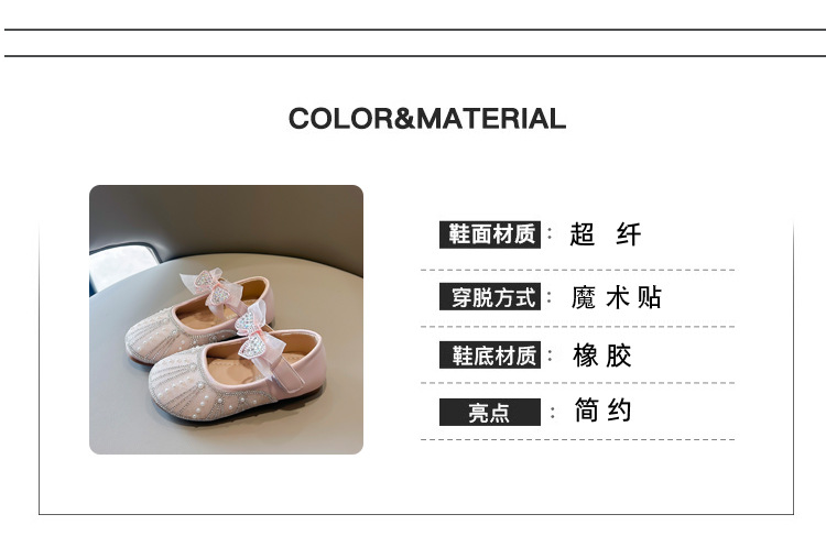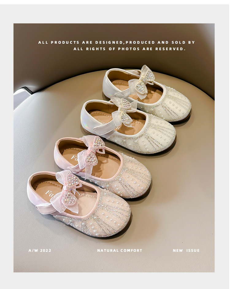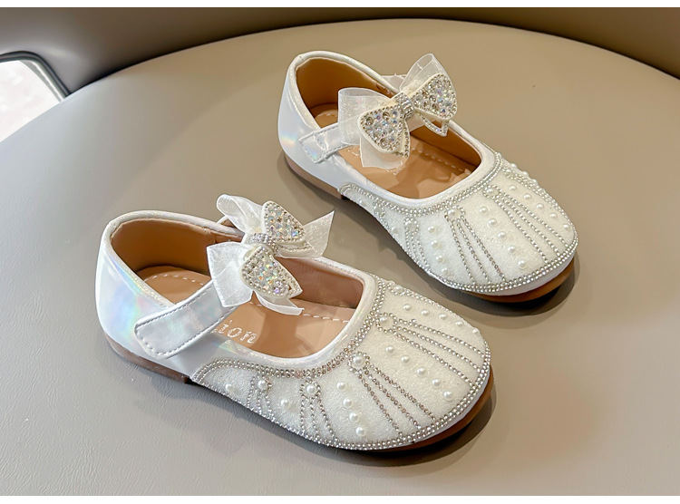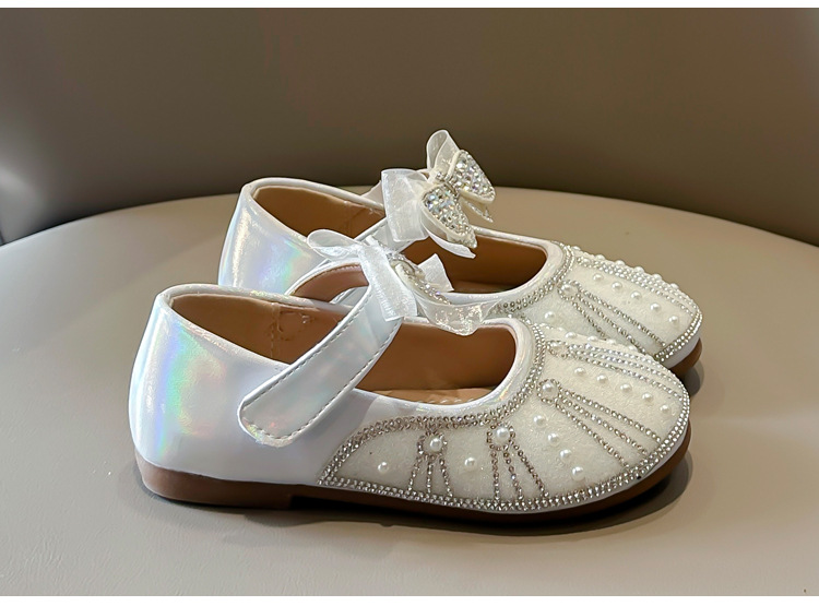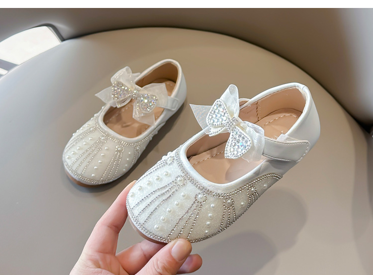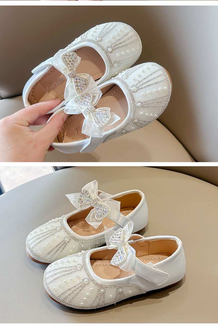 여아 크리스탈 공주 구두 2025 봄 여름 신상 아동용 진주 라인스톤 리본 공연용 얕은 굽 가죽 구두스토어 가기